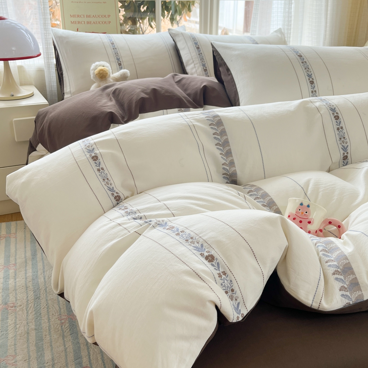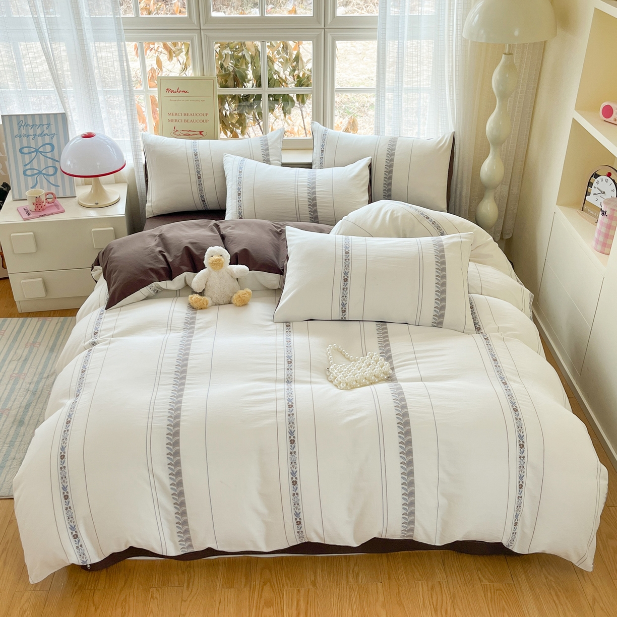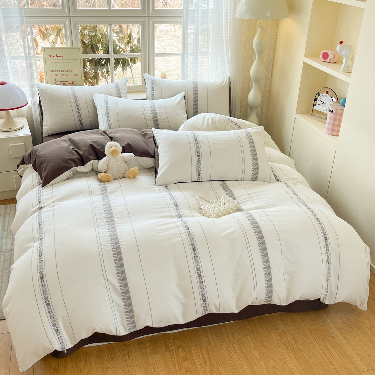 全棉A类色织水洗棉贝壳绣学生宿舍床系列