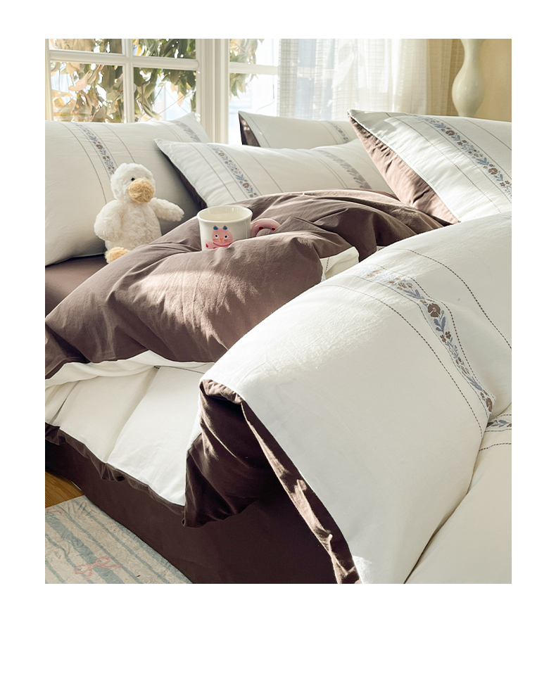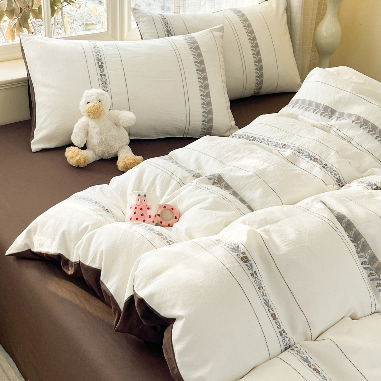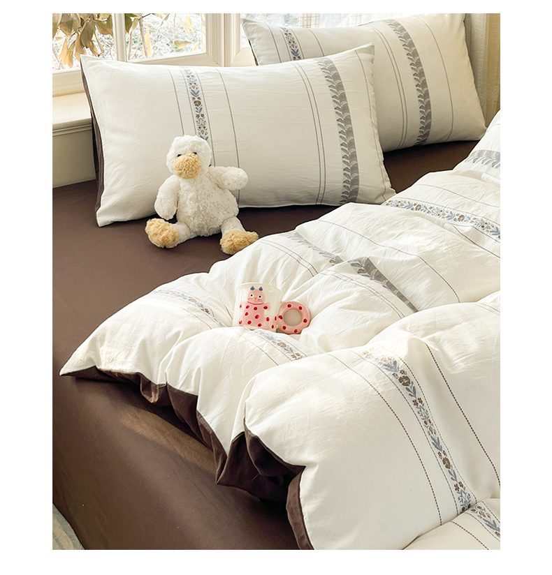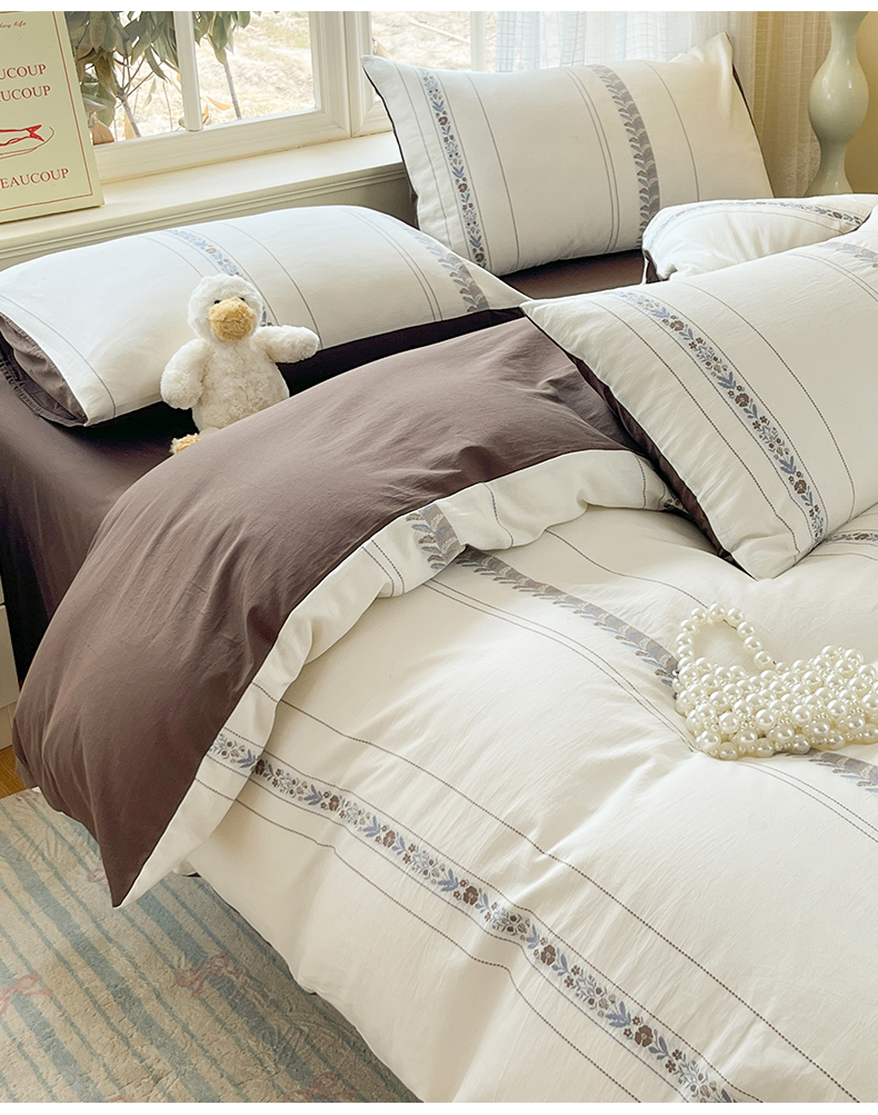 > 莱登卡奴 2026新款全棉纯棉A类水洗棉色织提花剪花系列四件套 樱草深咖