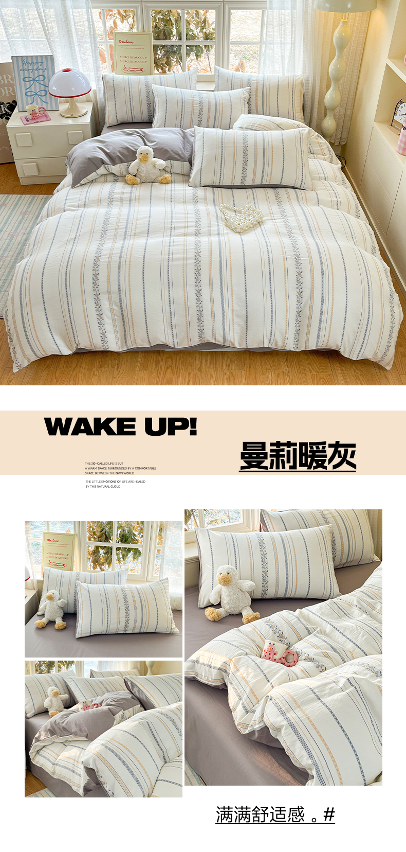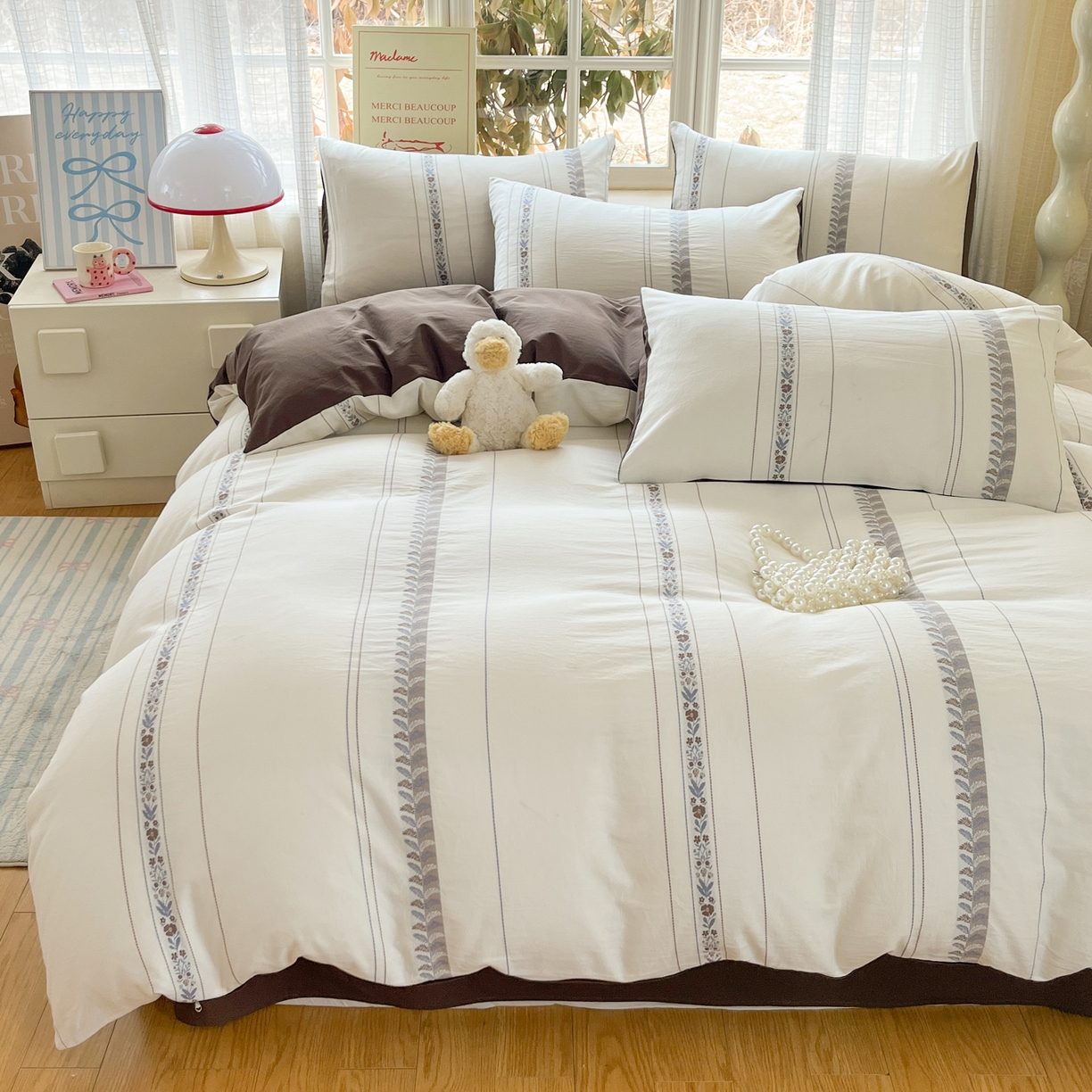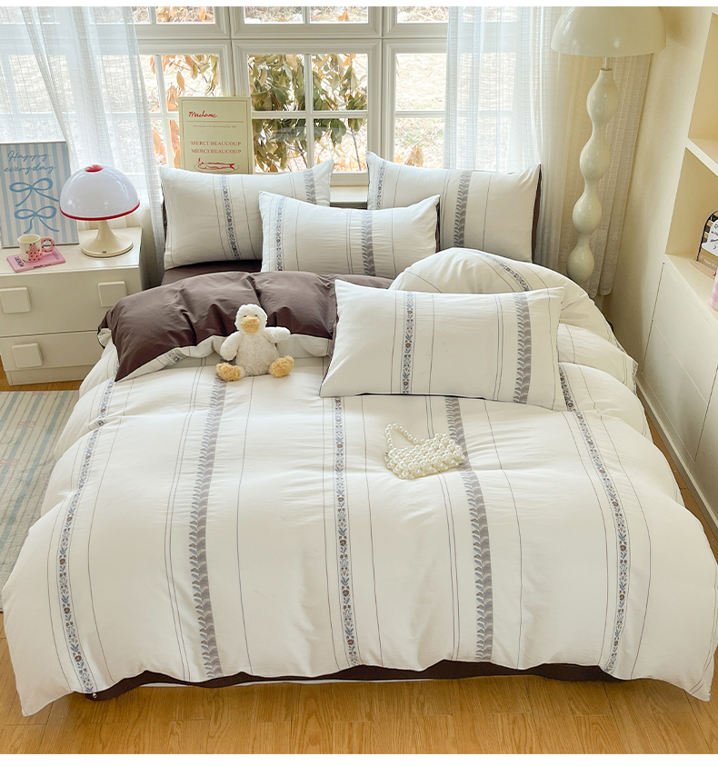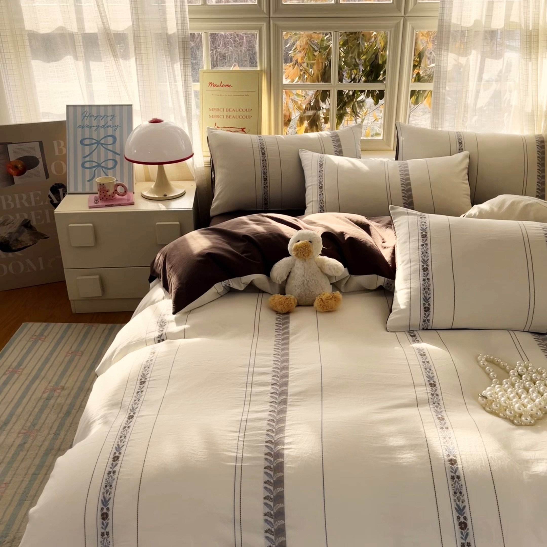 2025新款A类全棉色织水洗棉贝壳绣条纹系列四件套