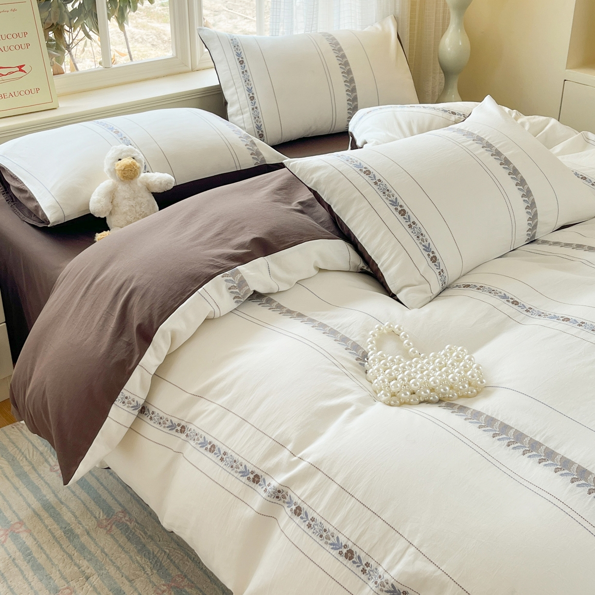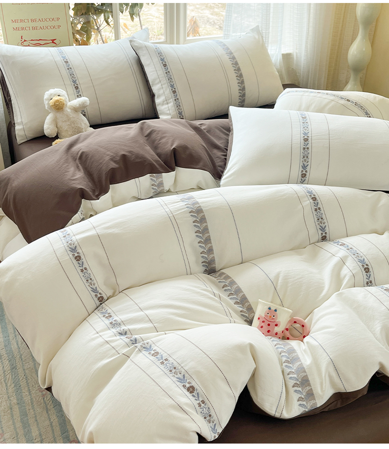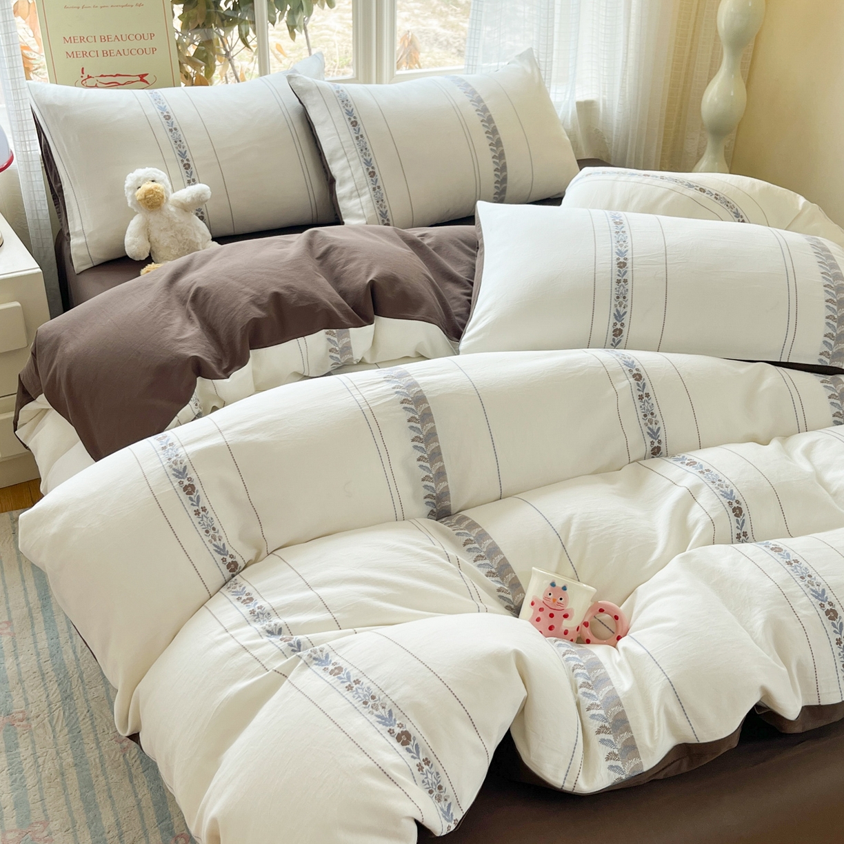 2025新款A类全棉色织水洗棉贝壳绣条纹系列四件套