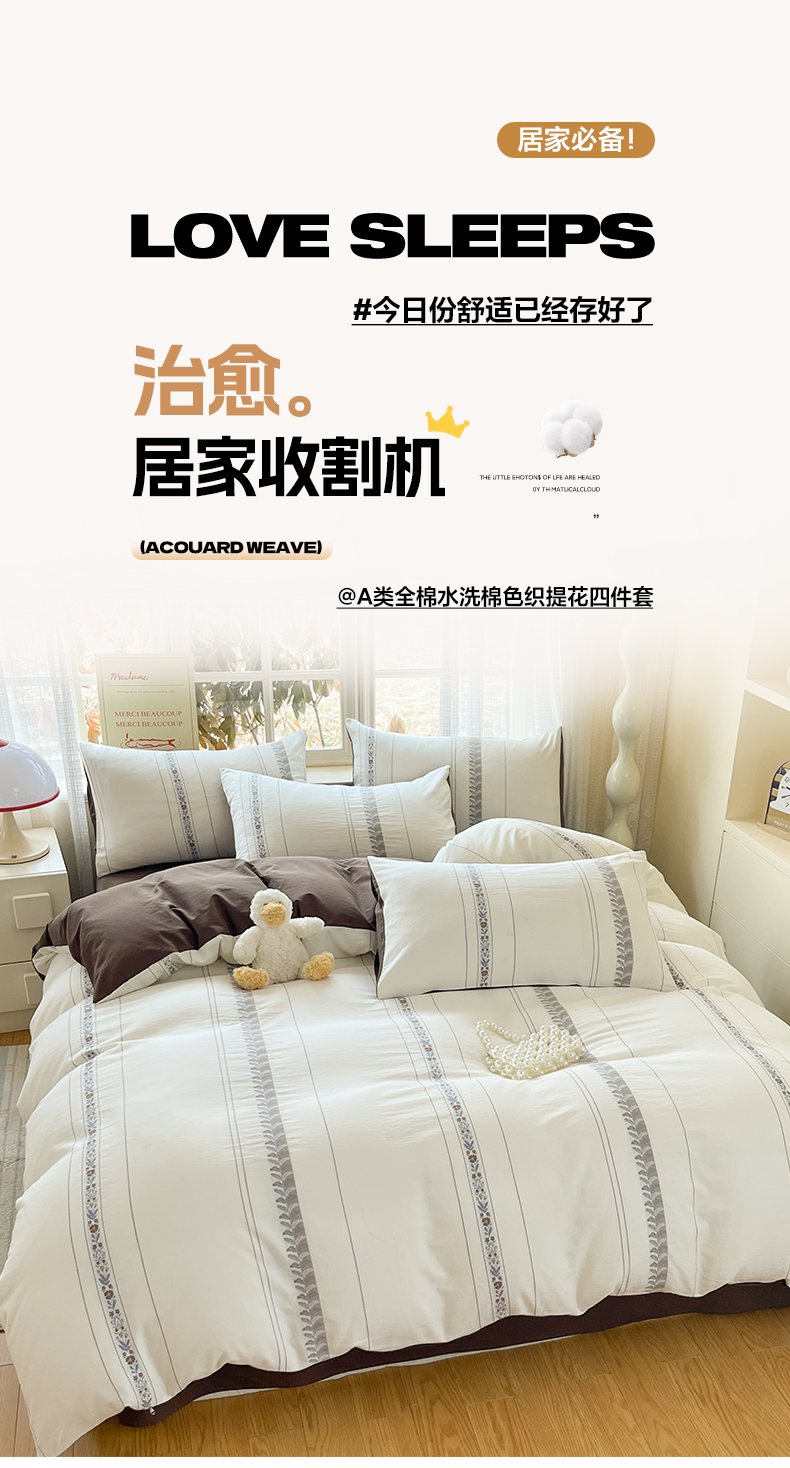 2026新款全棉A类三层纱水洗棉色织提花四件套系列