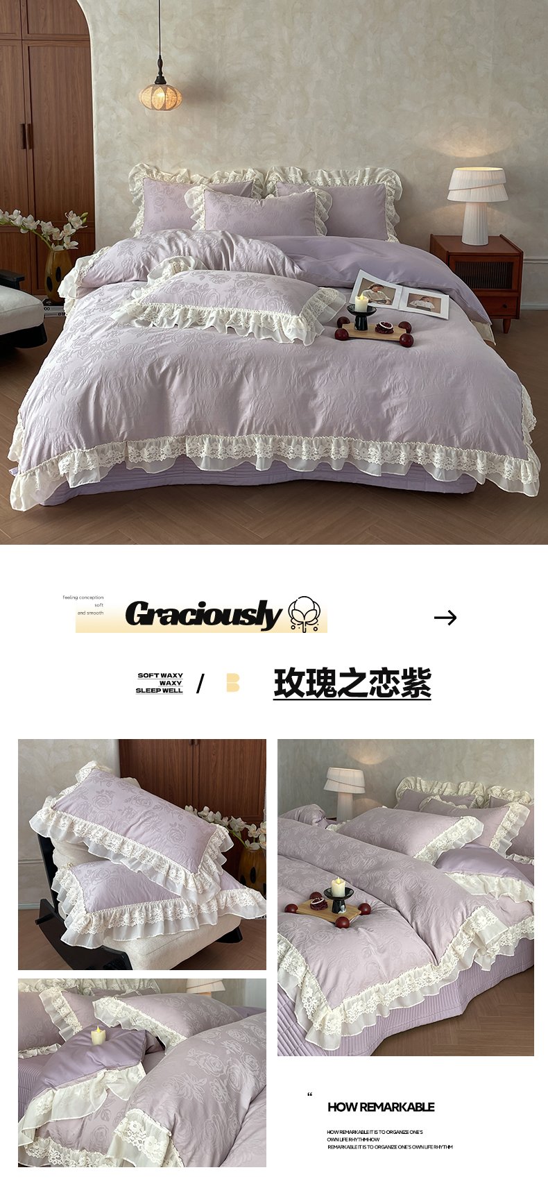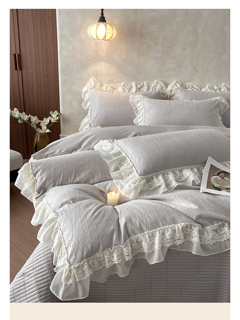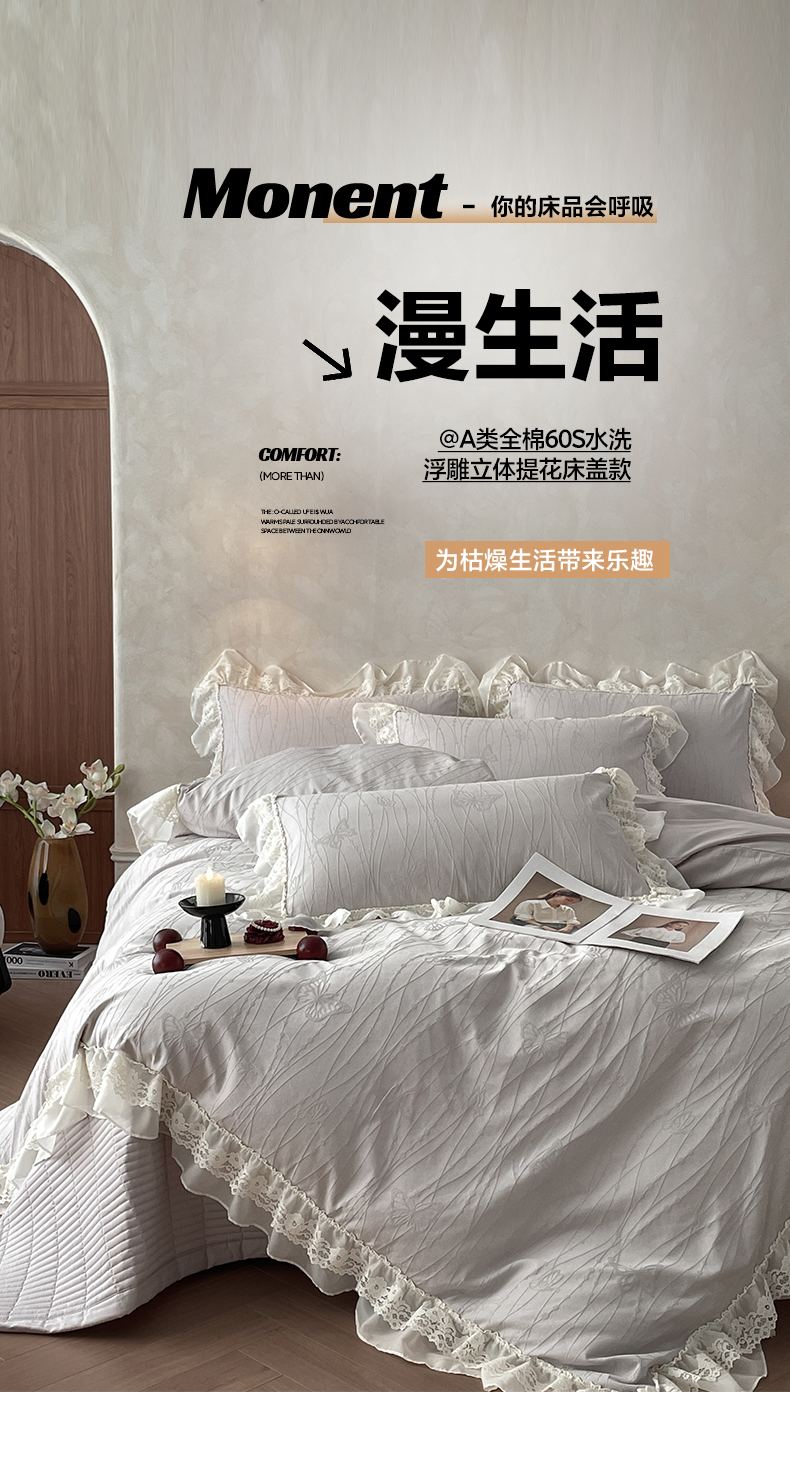 2026新款全棉纯棉A类60S水洗浮雕立体提花花边床盖款四件套-温馨系列
