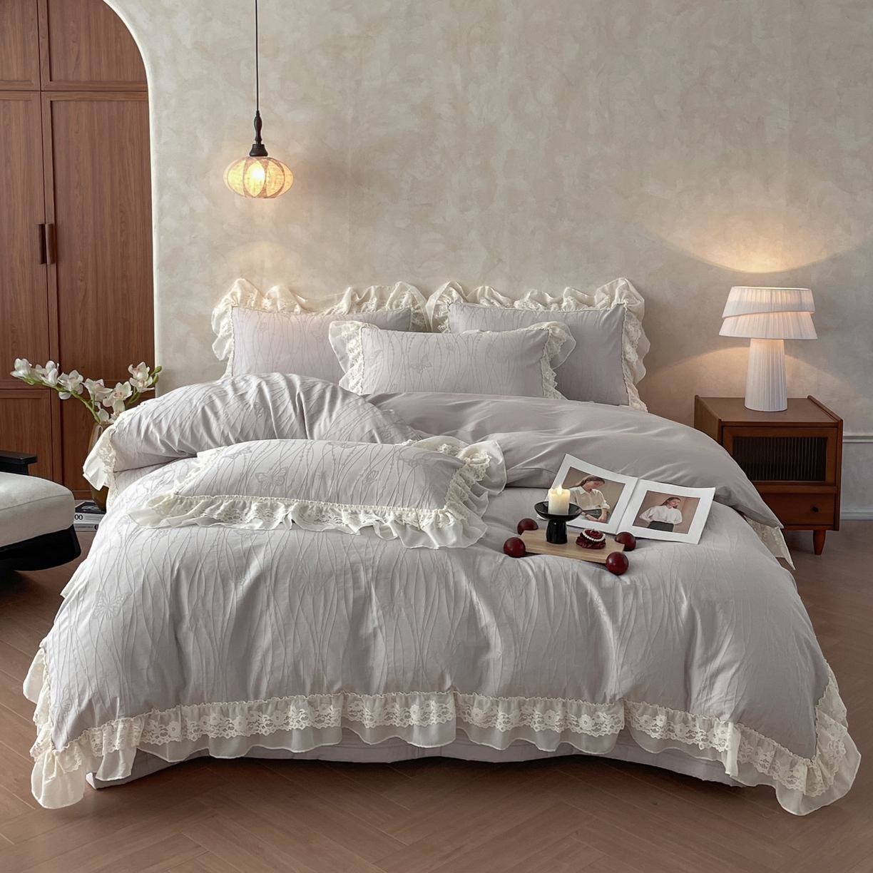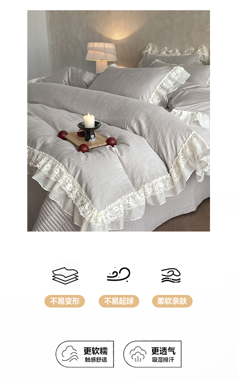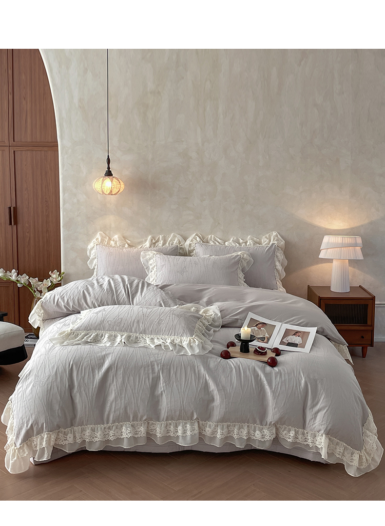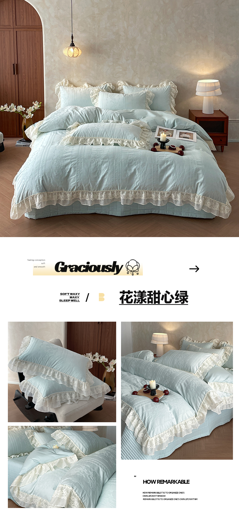 2026新款全棉纯棉A类60S水洗浮雕立体提花花边床盖款四件套-温馨系列