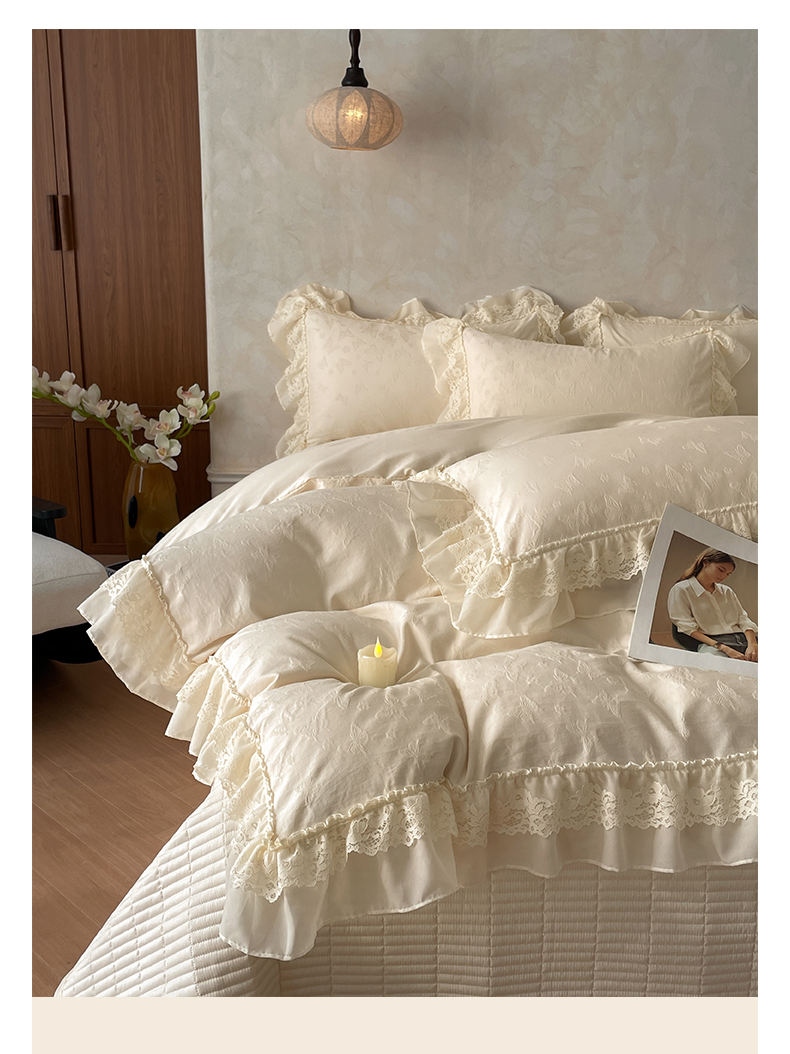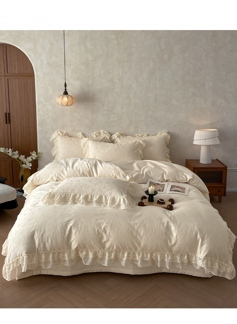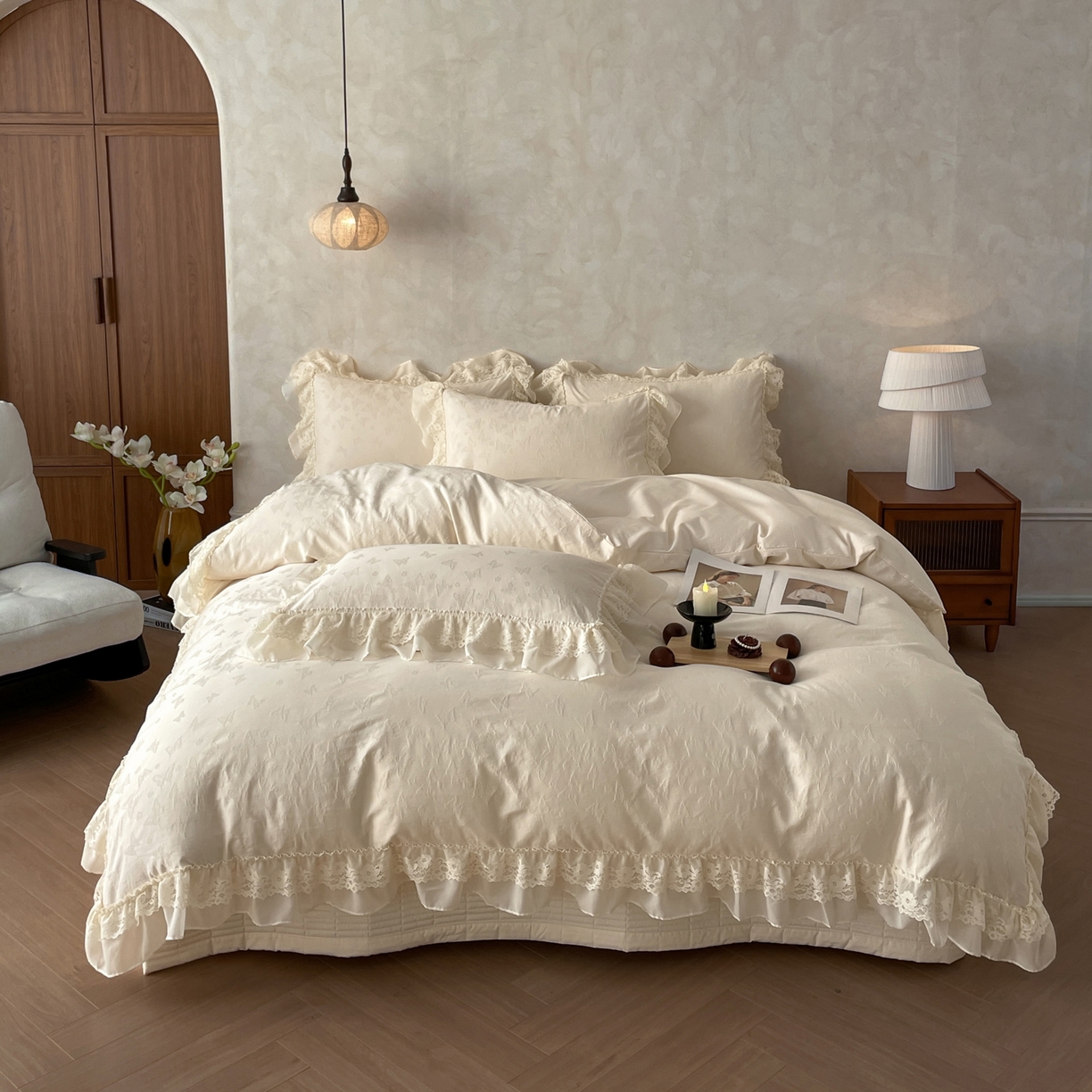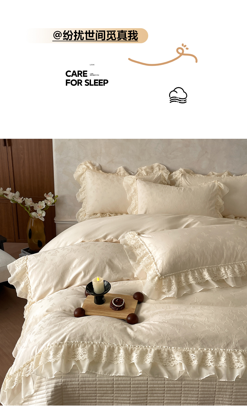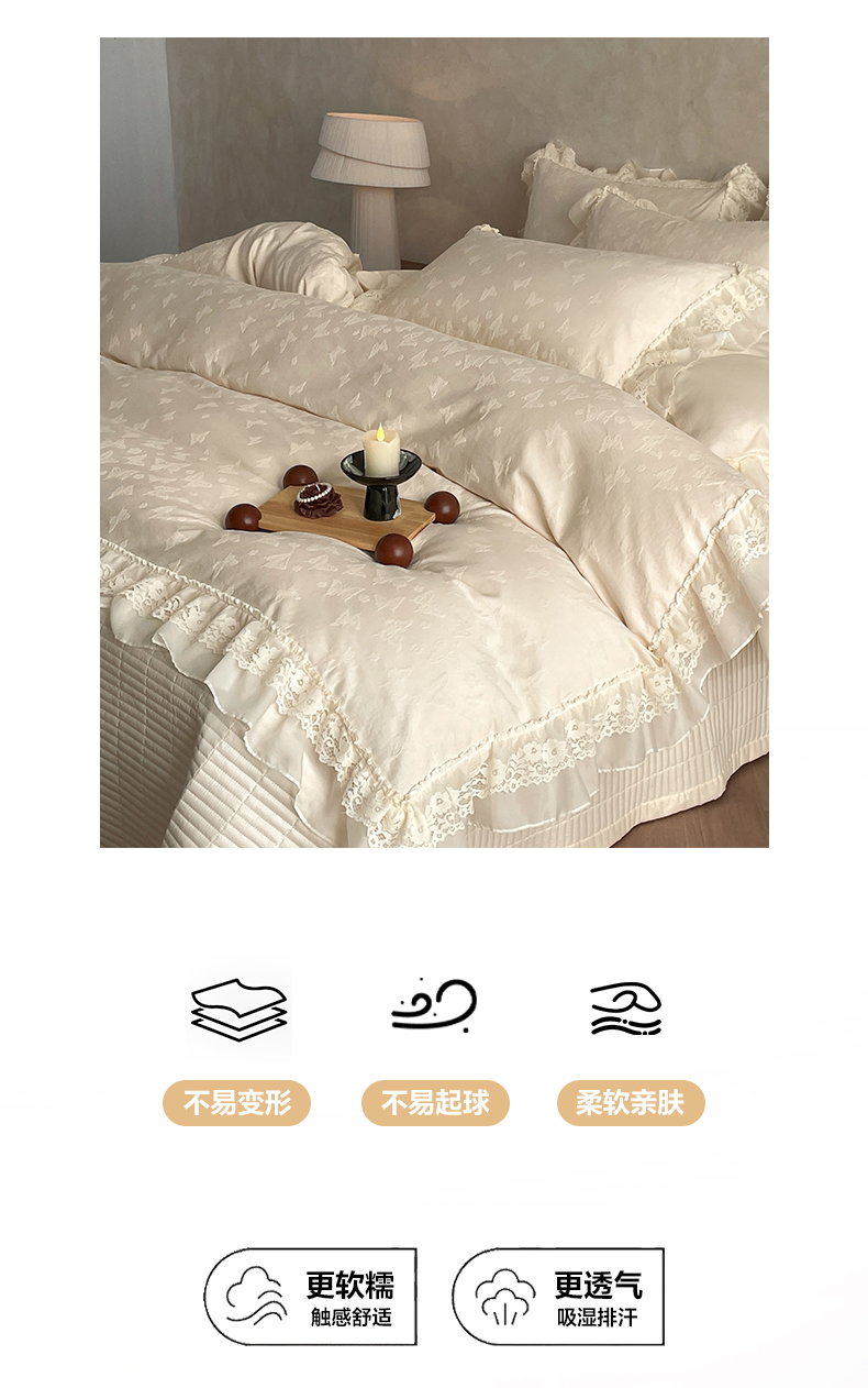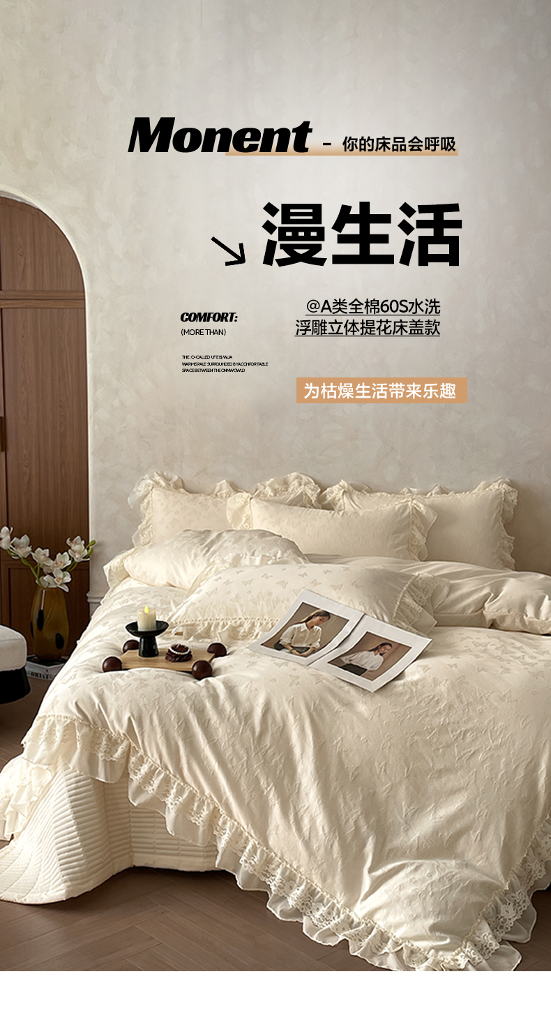 2026新款全棉纯棉A类60S水洗浮雕立体提花花边床盖款四件套-温馨系列