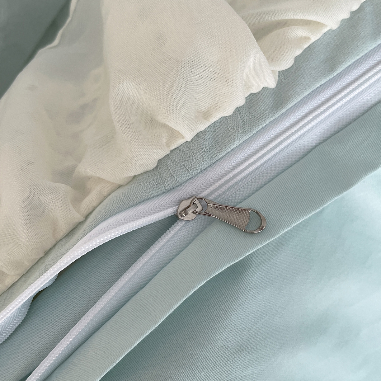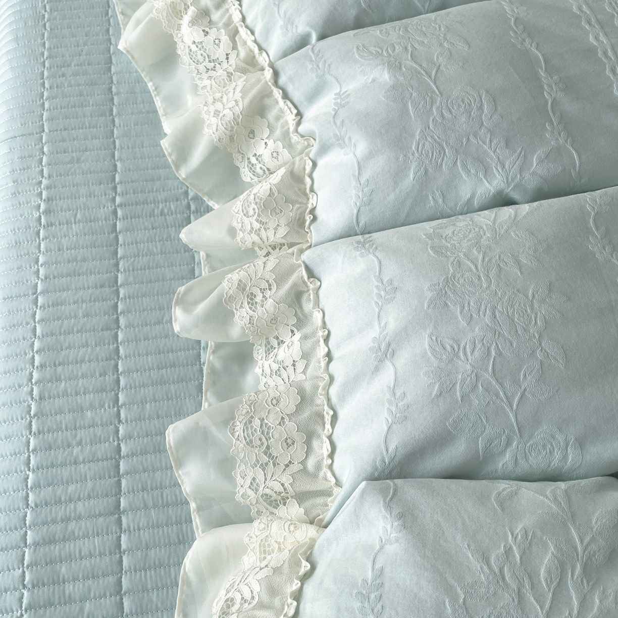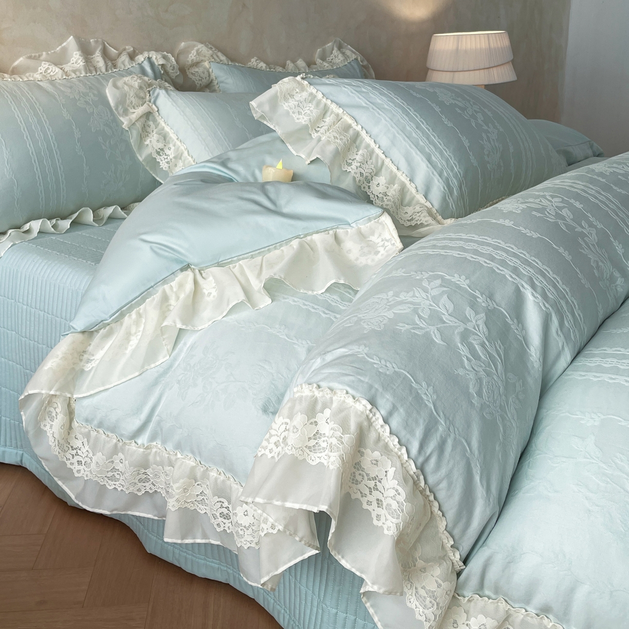 > 莱登卡奴 2026新款全棉纯棉A类60S水洗浮雕立体提花花边床盖款四件套-温馨系列 花漾甜心绿
