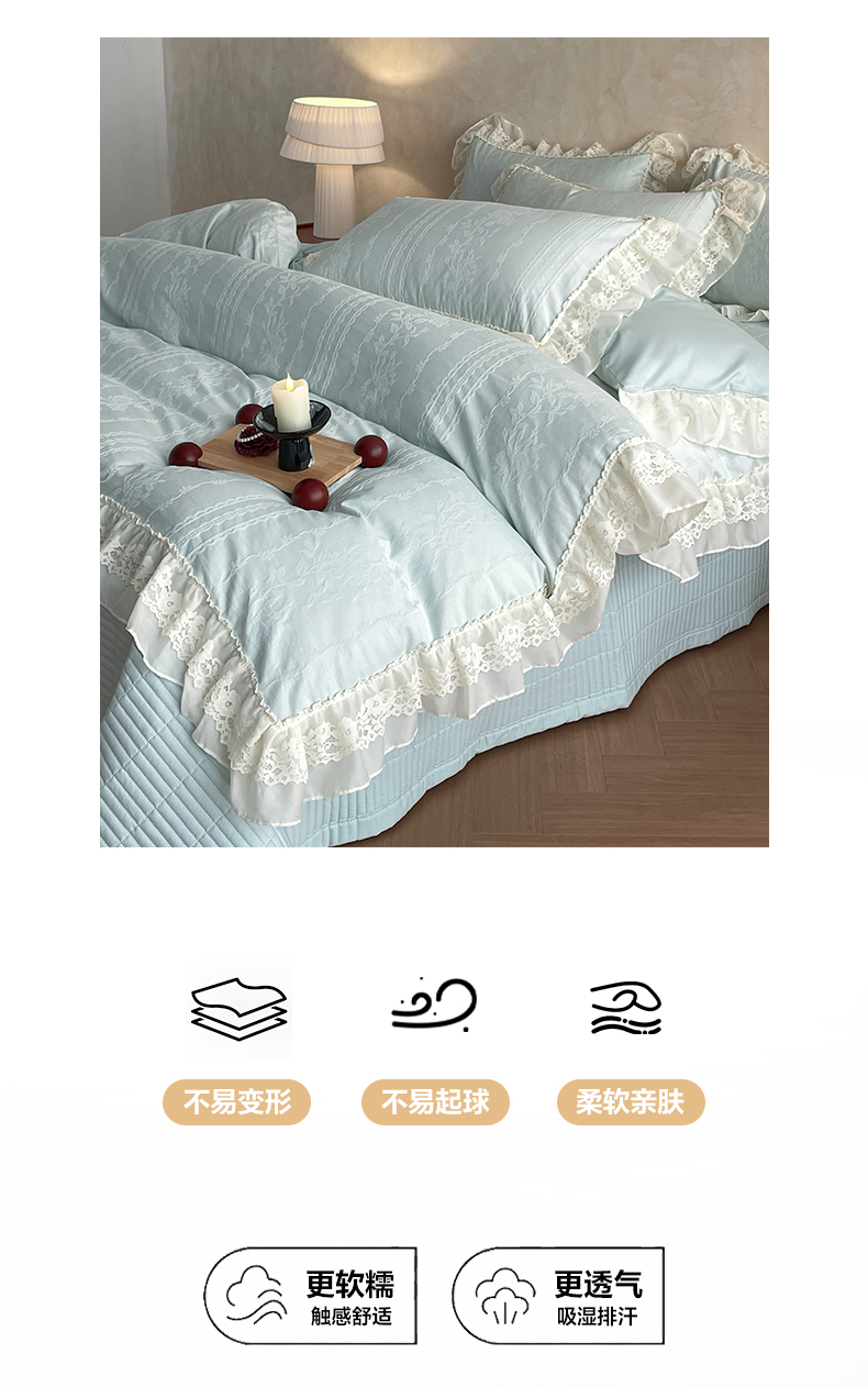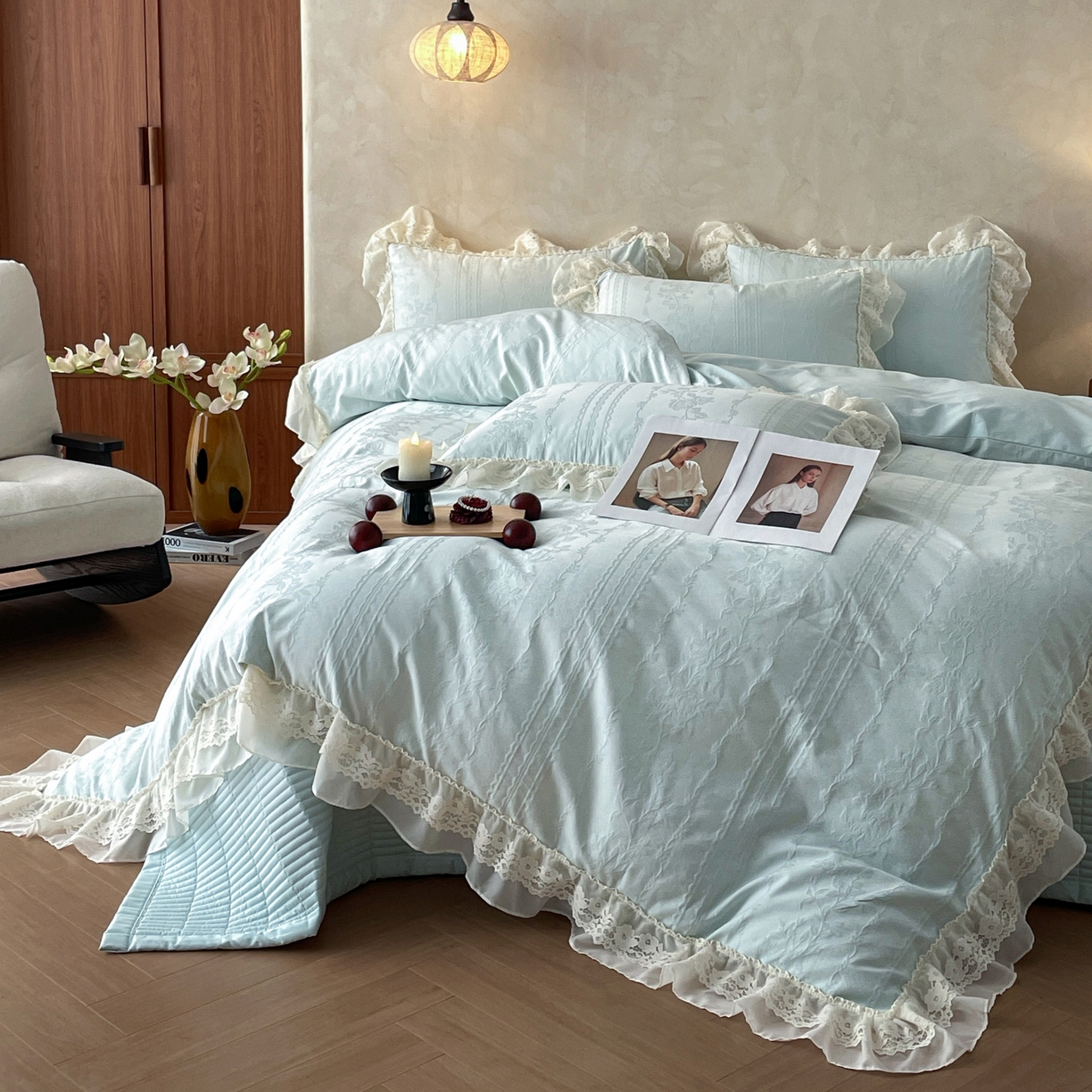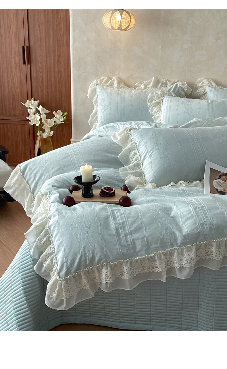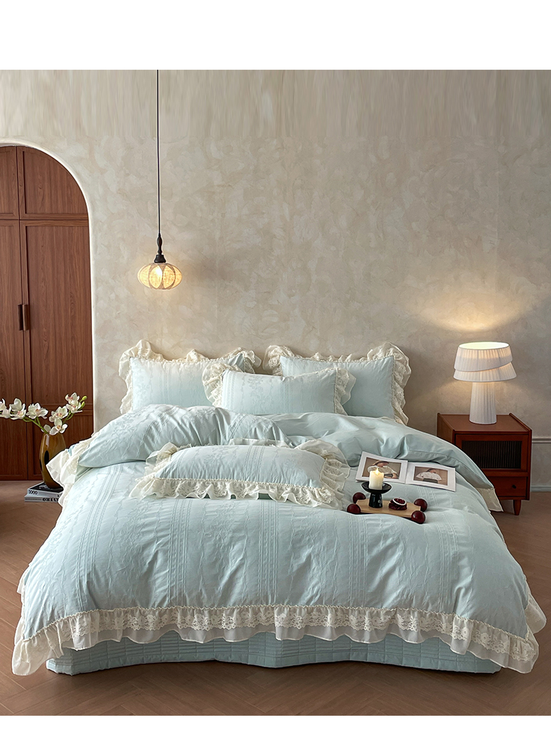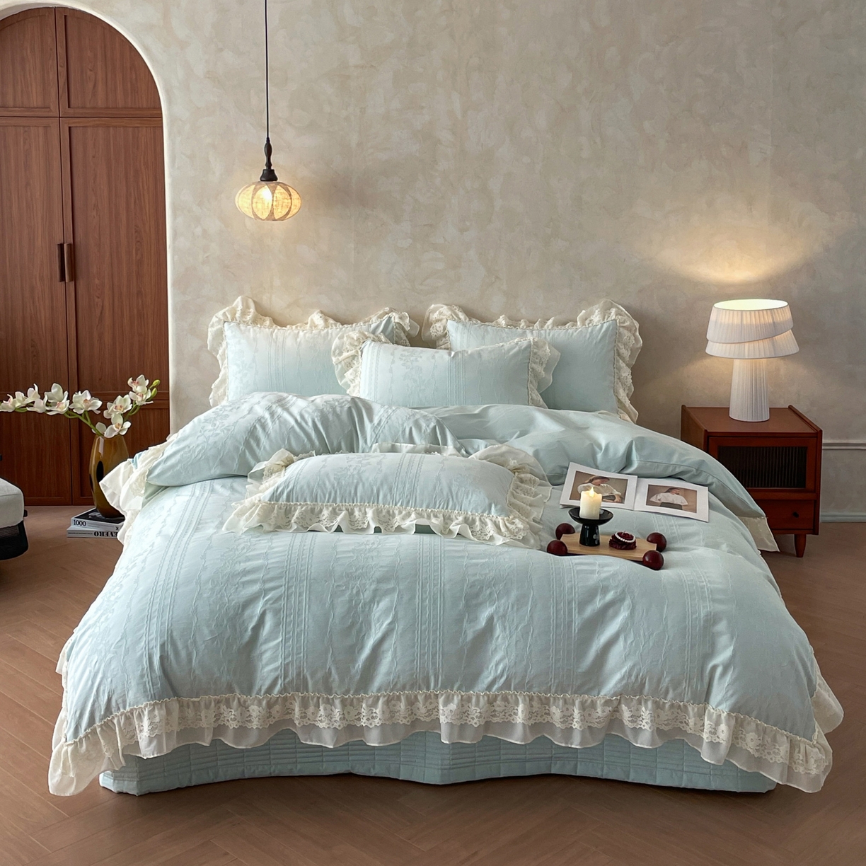 2026新款全棉纯棉A类60S水洗浮雕立体提花花边床盖款四件套-温馨系列