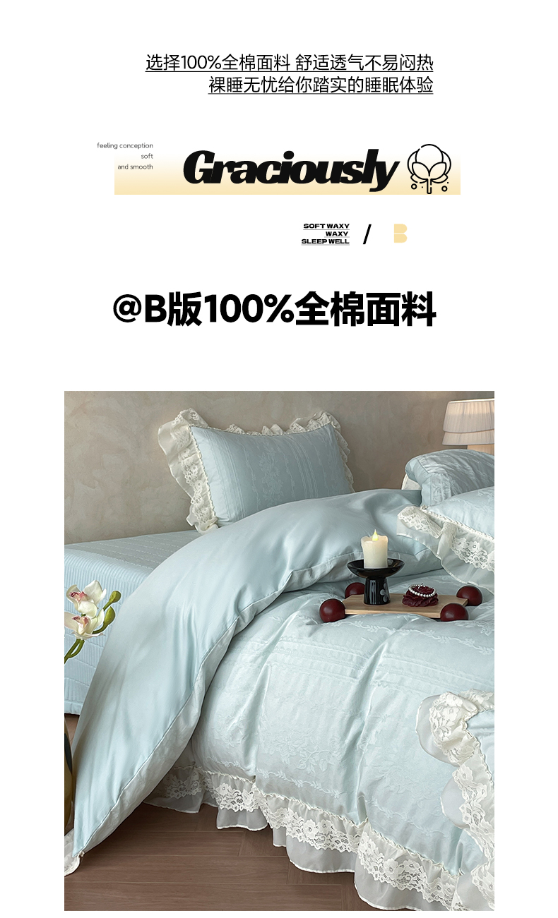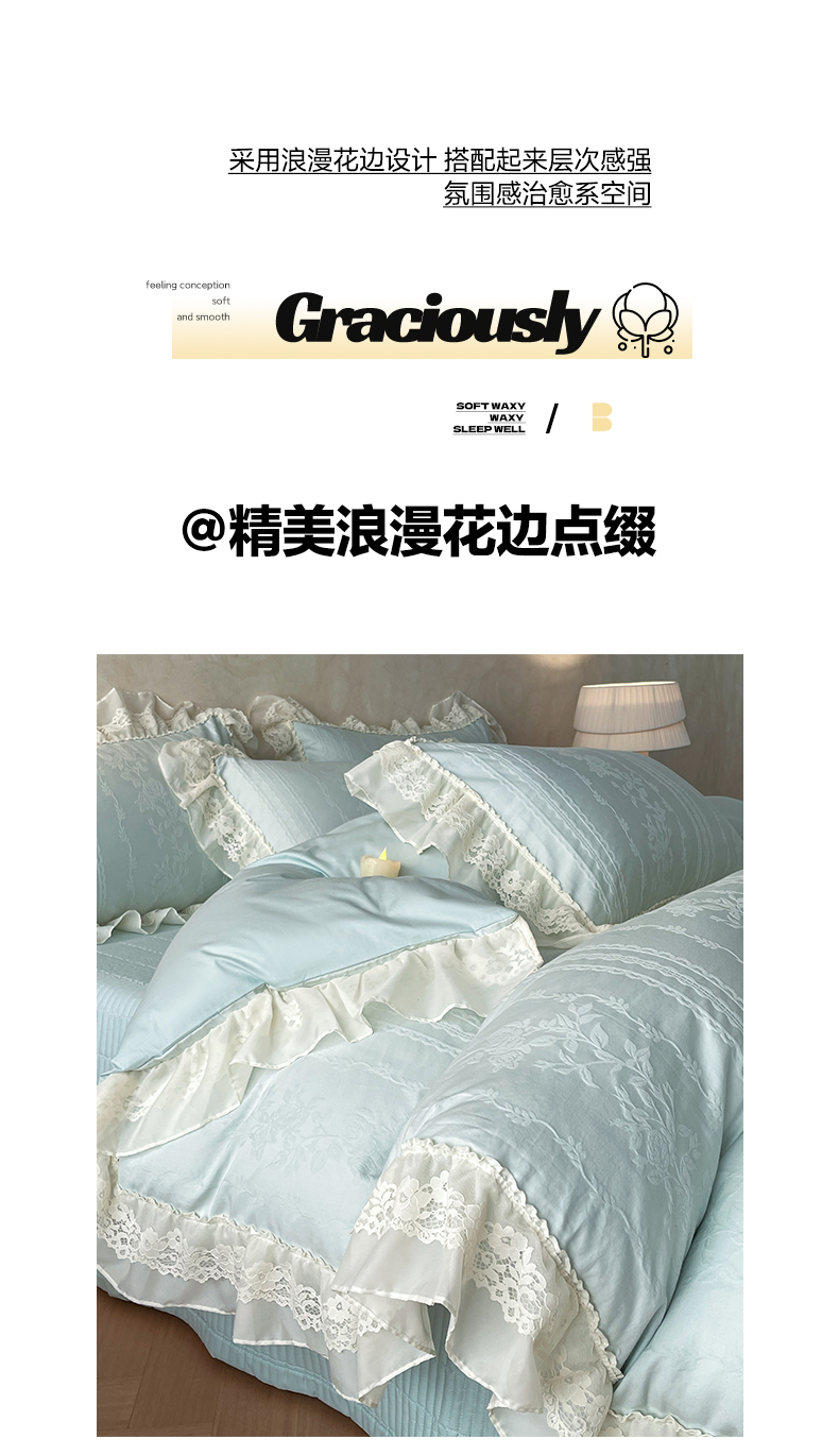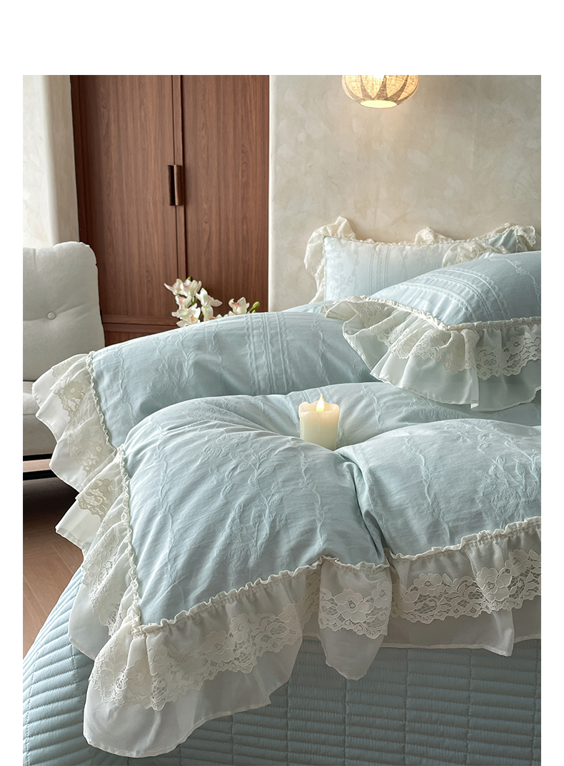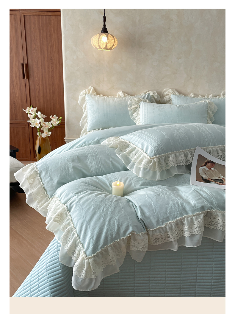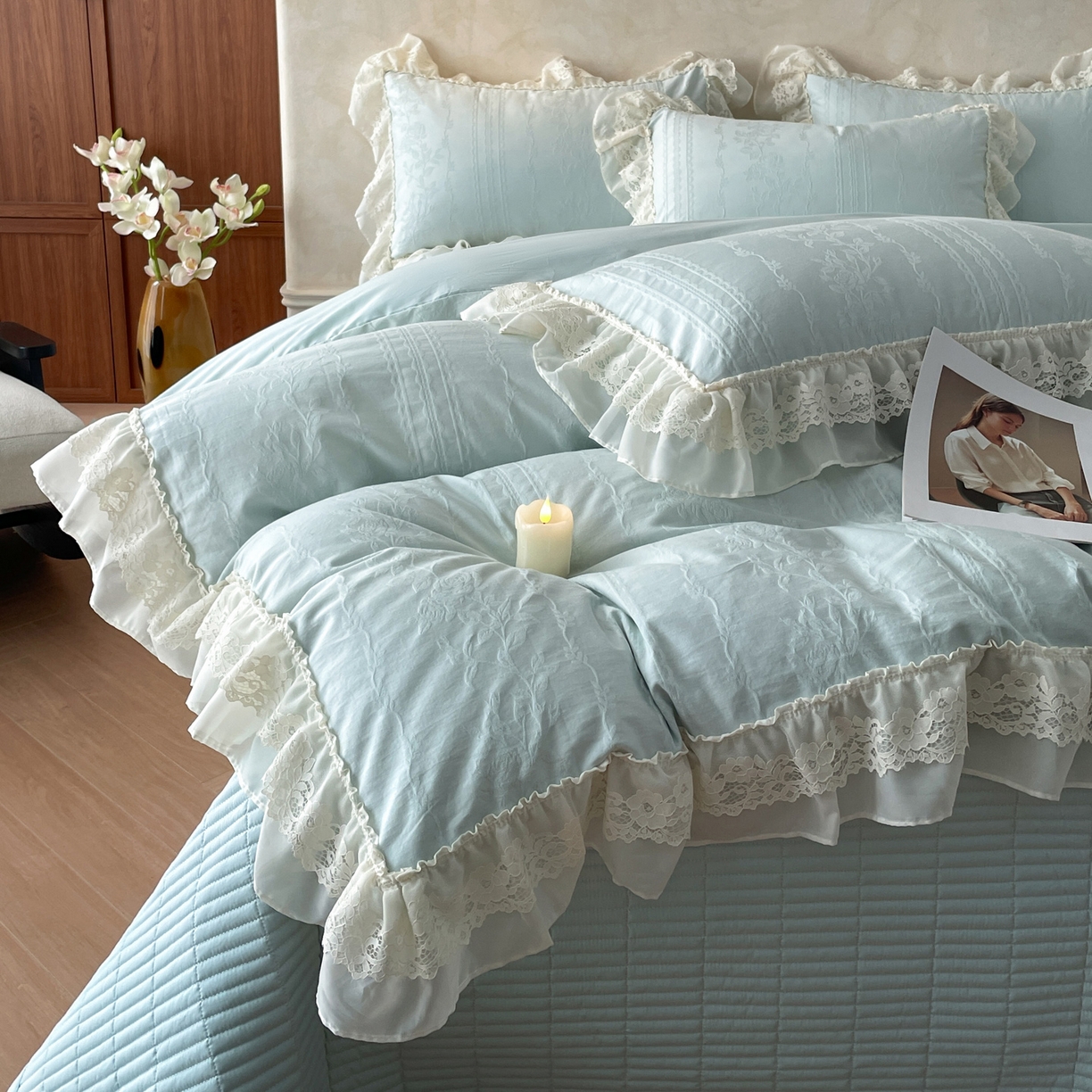 2026新款全棉纯棉A类60S水洗浮雕立体提花花边床盖款四件套-温馨系列