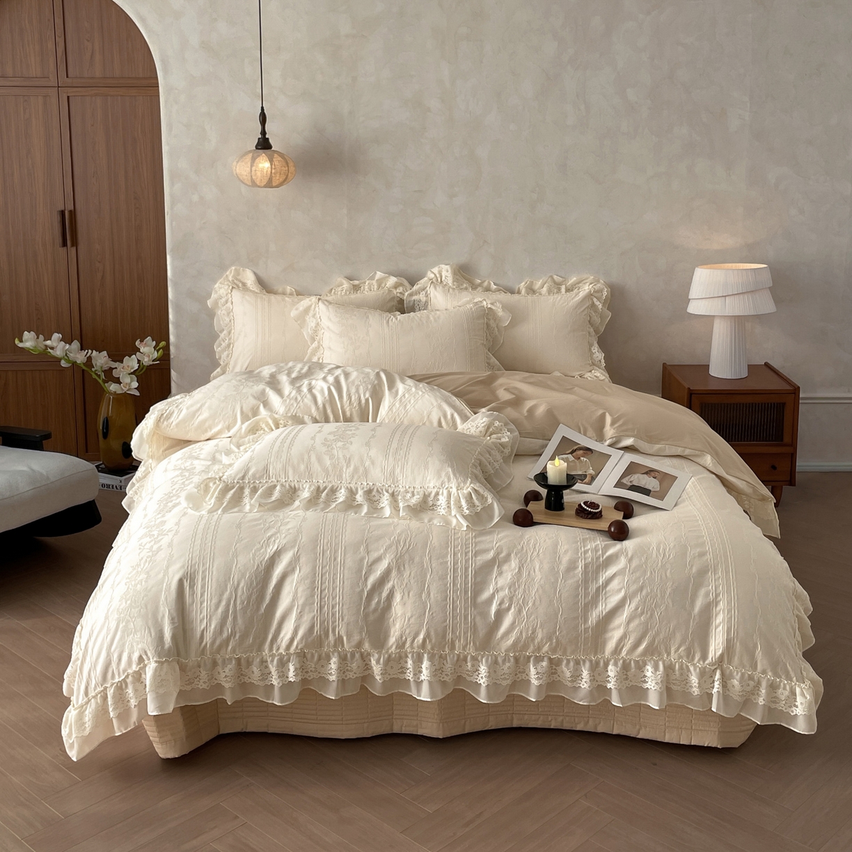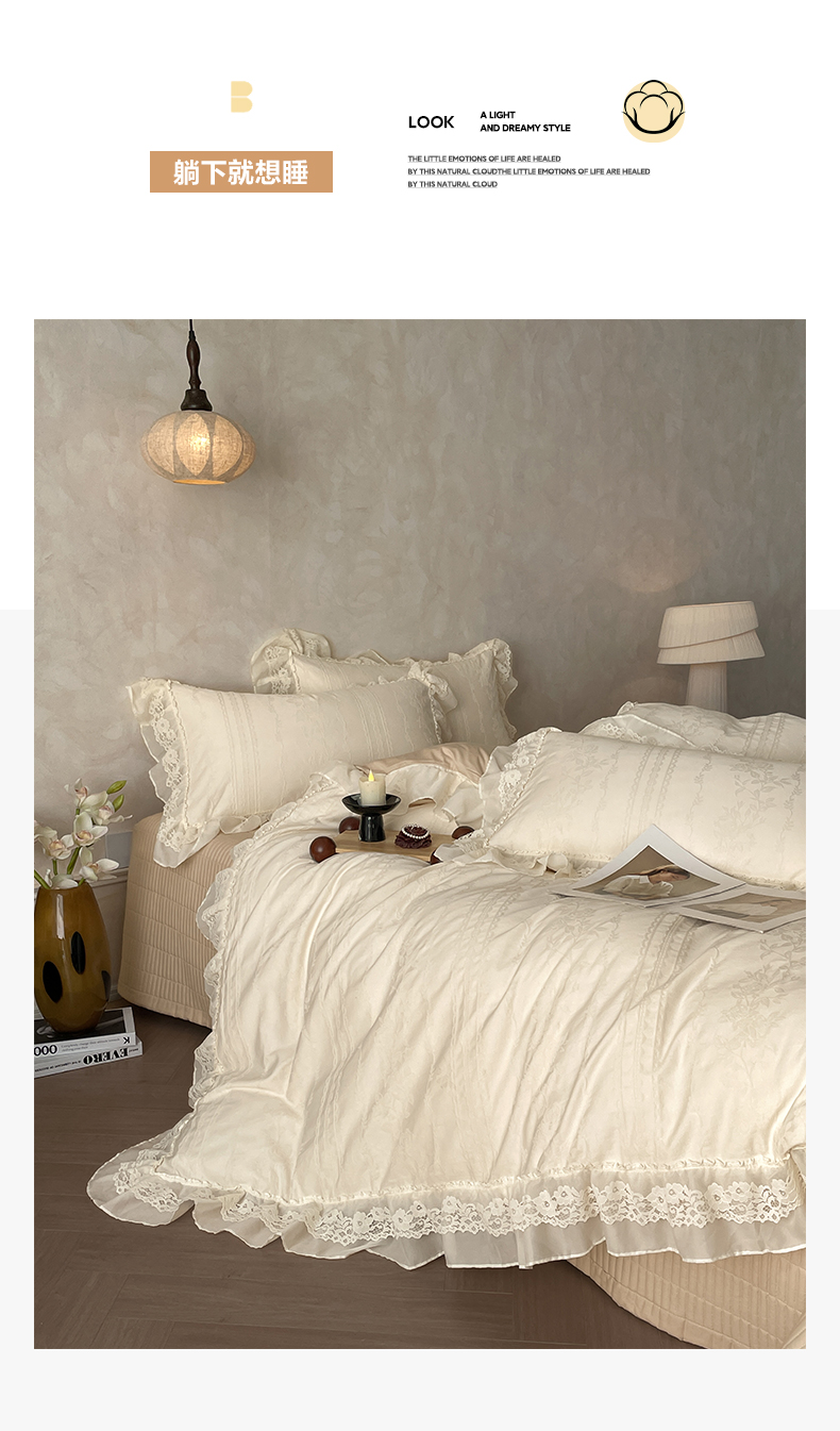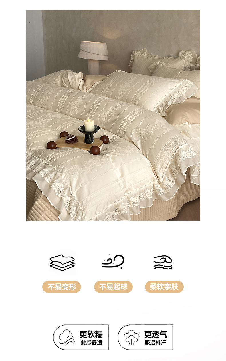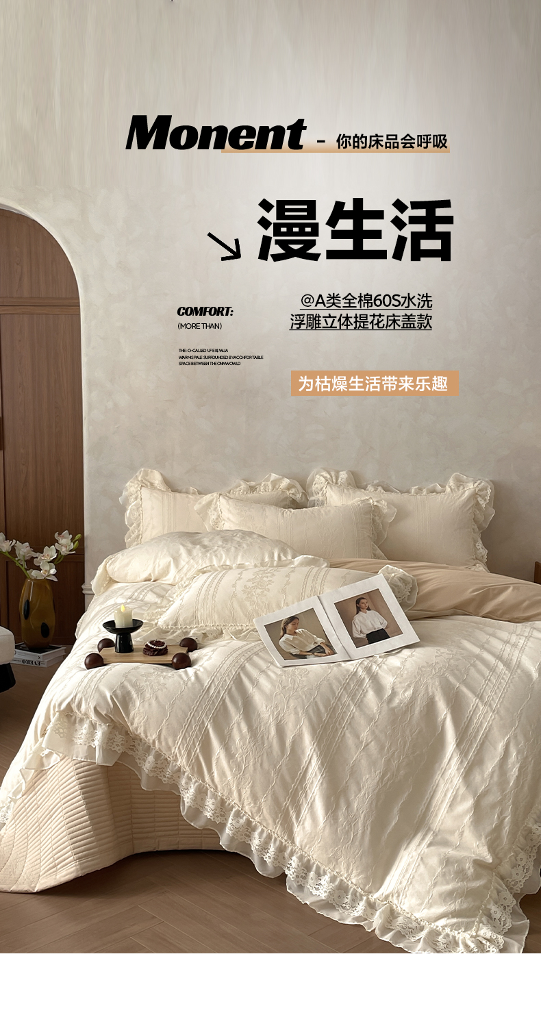 2026新款全棉纯棉A类60S水洗浮雕立体提花花边床盖款四件套-温馨系列