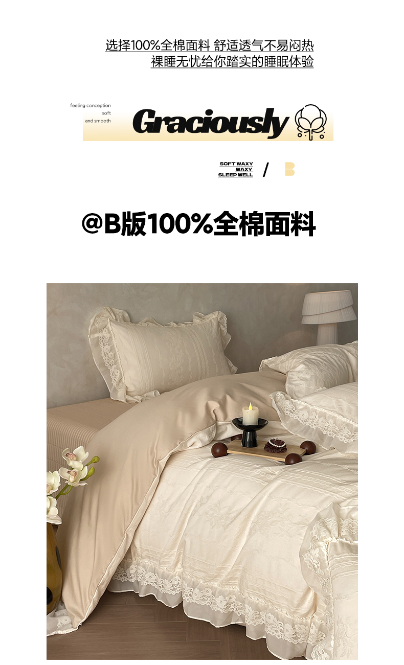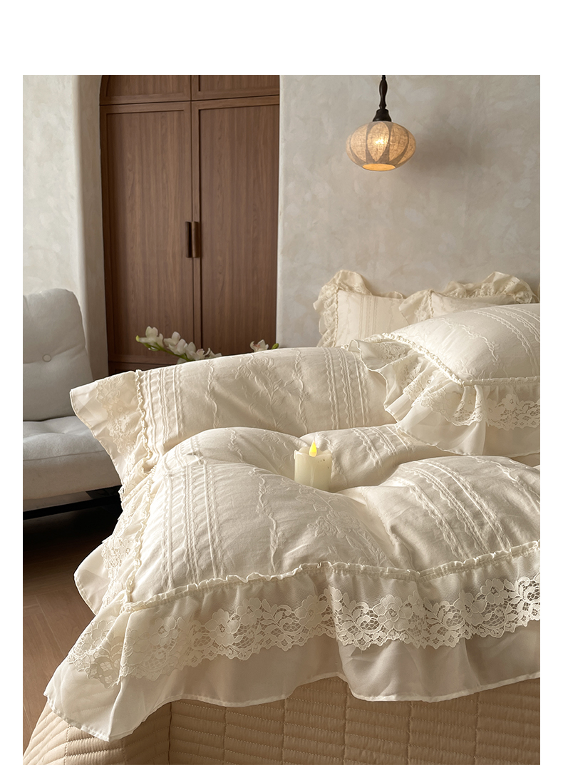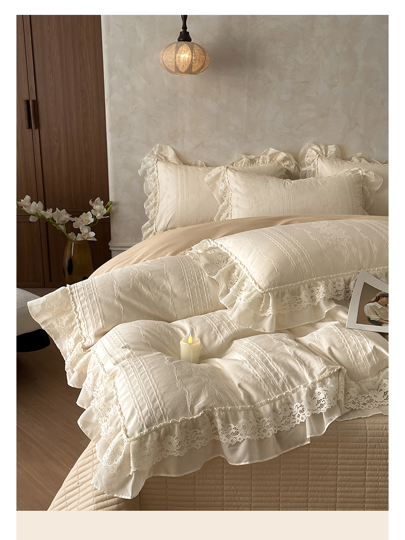 2026新款全棉A类小清新花边床盖款系列四件套
