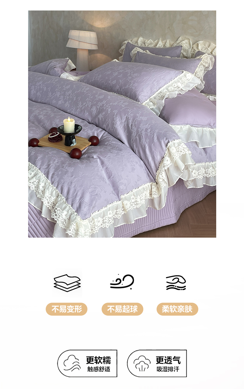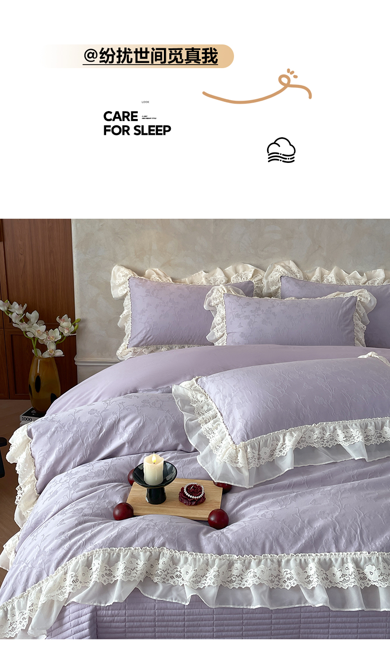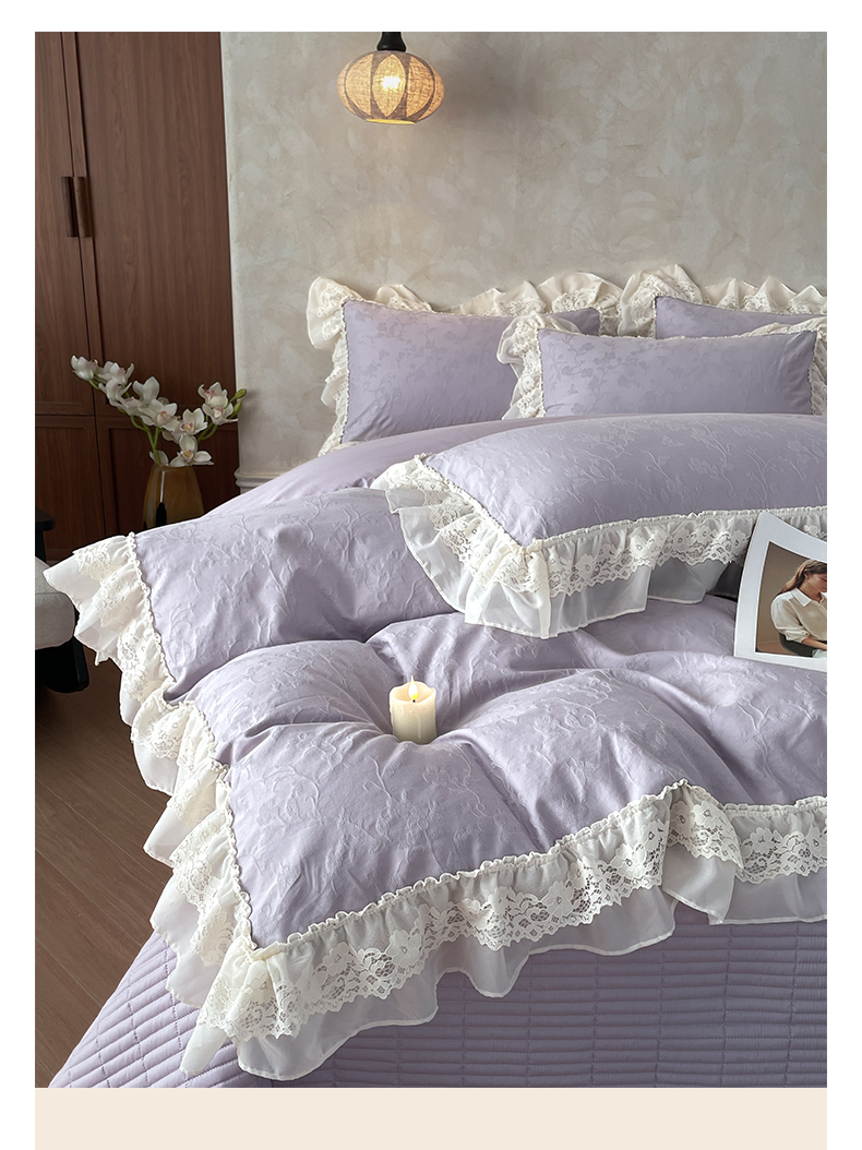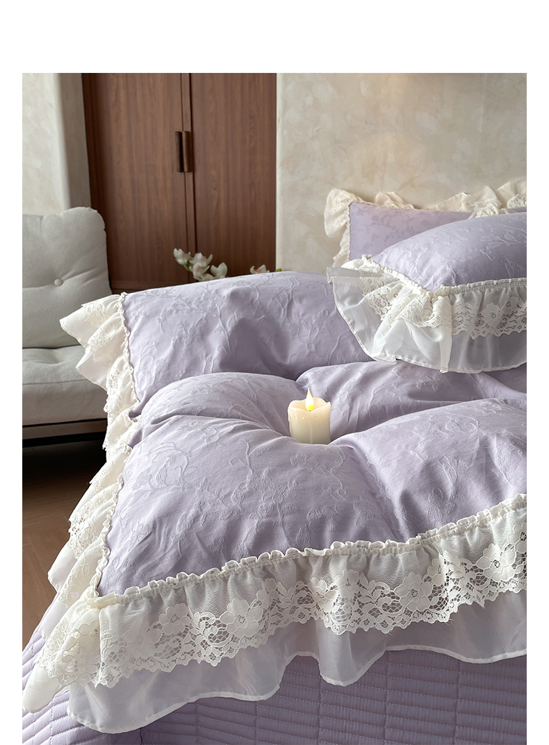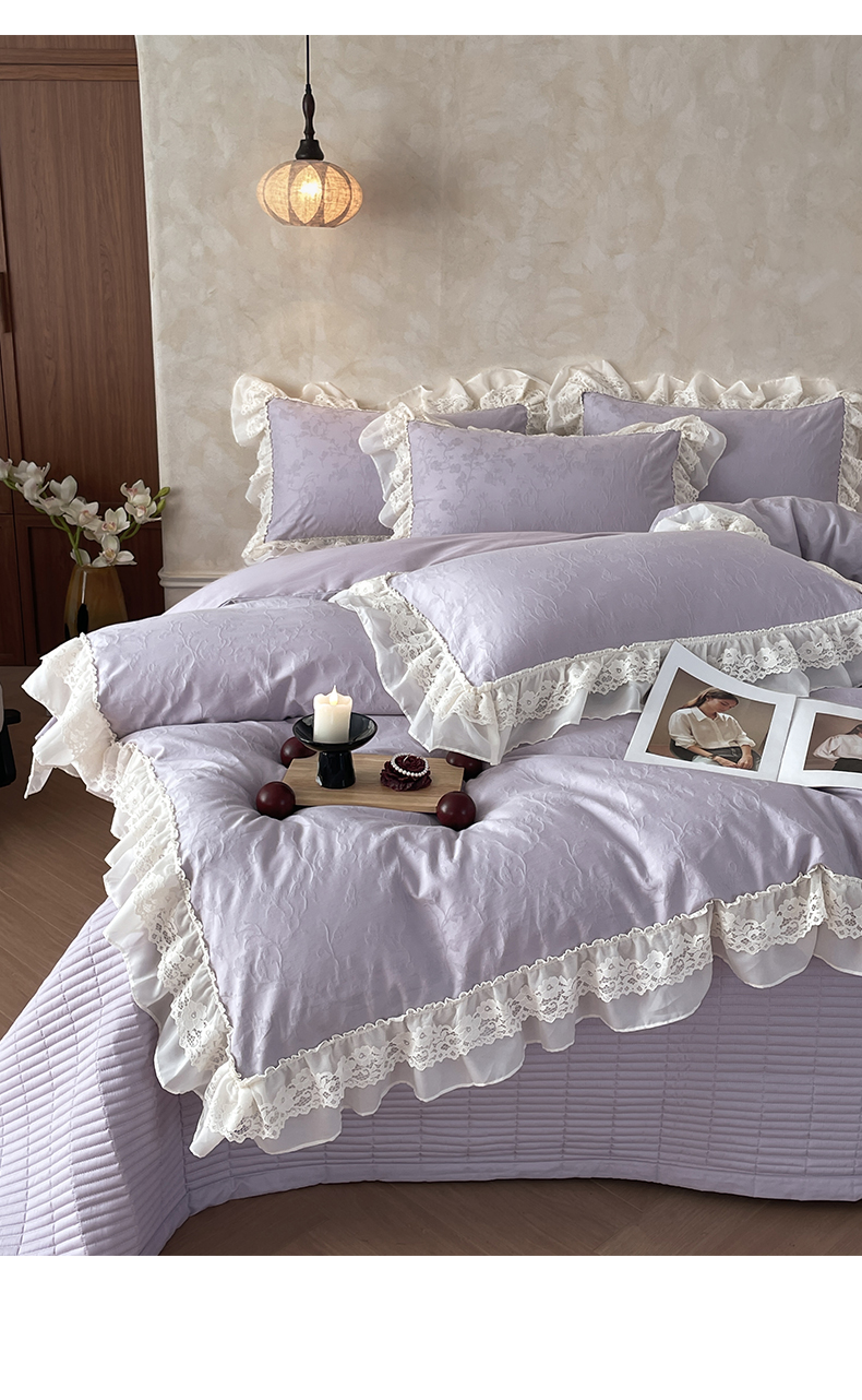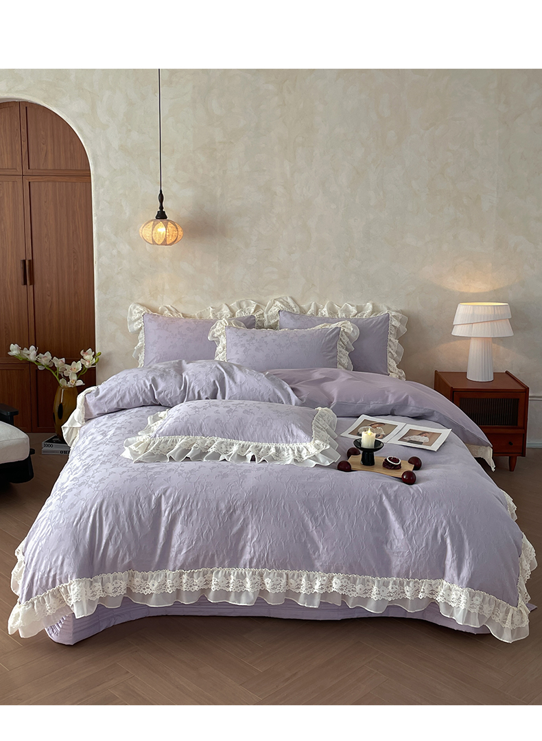 > 莱登卡奴 2026新款全棉纯棉A类60S水洗浮雕立体提花花边床盖款四件套-温馨系列 露柯紫