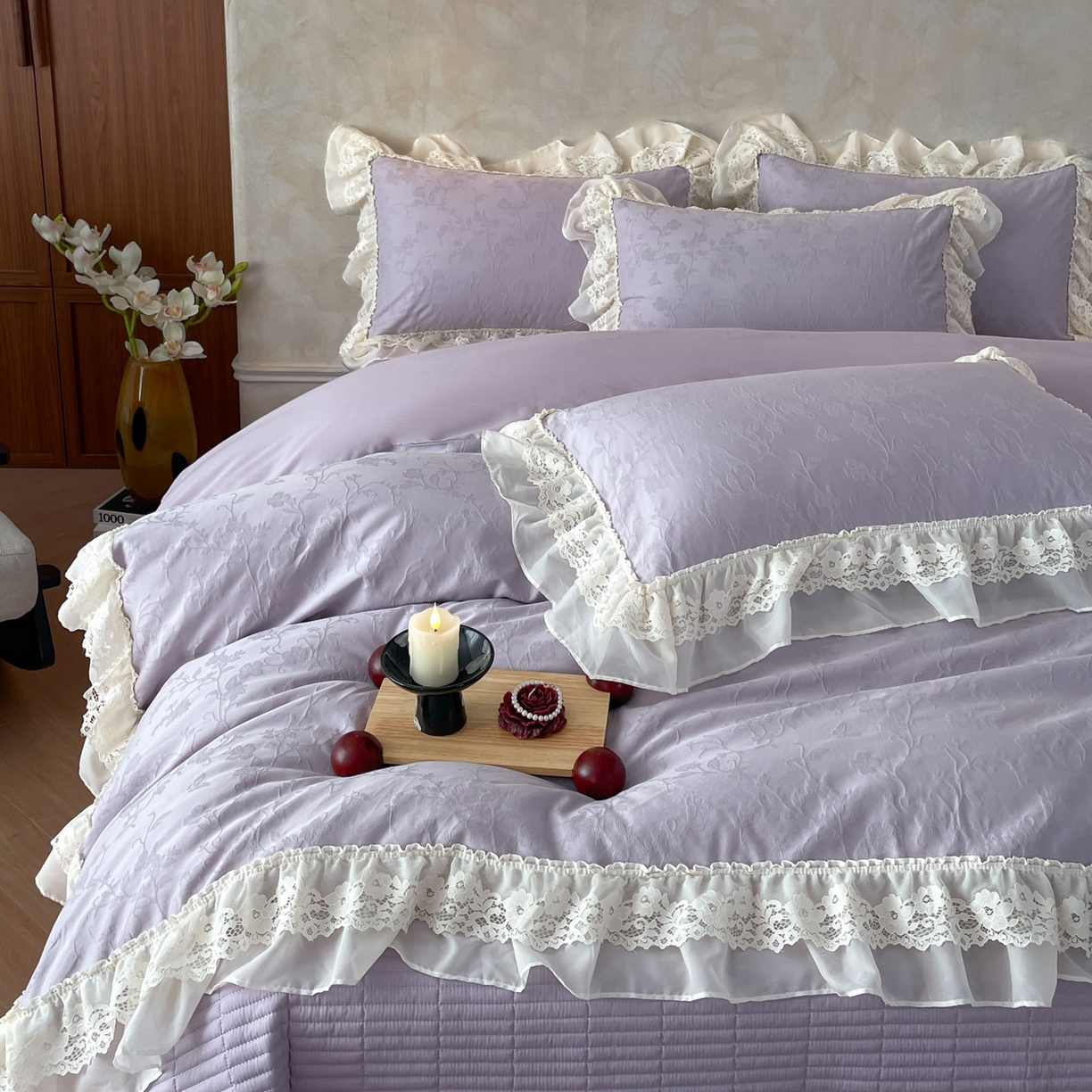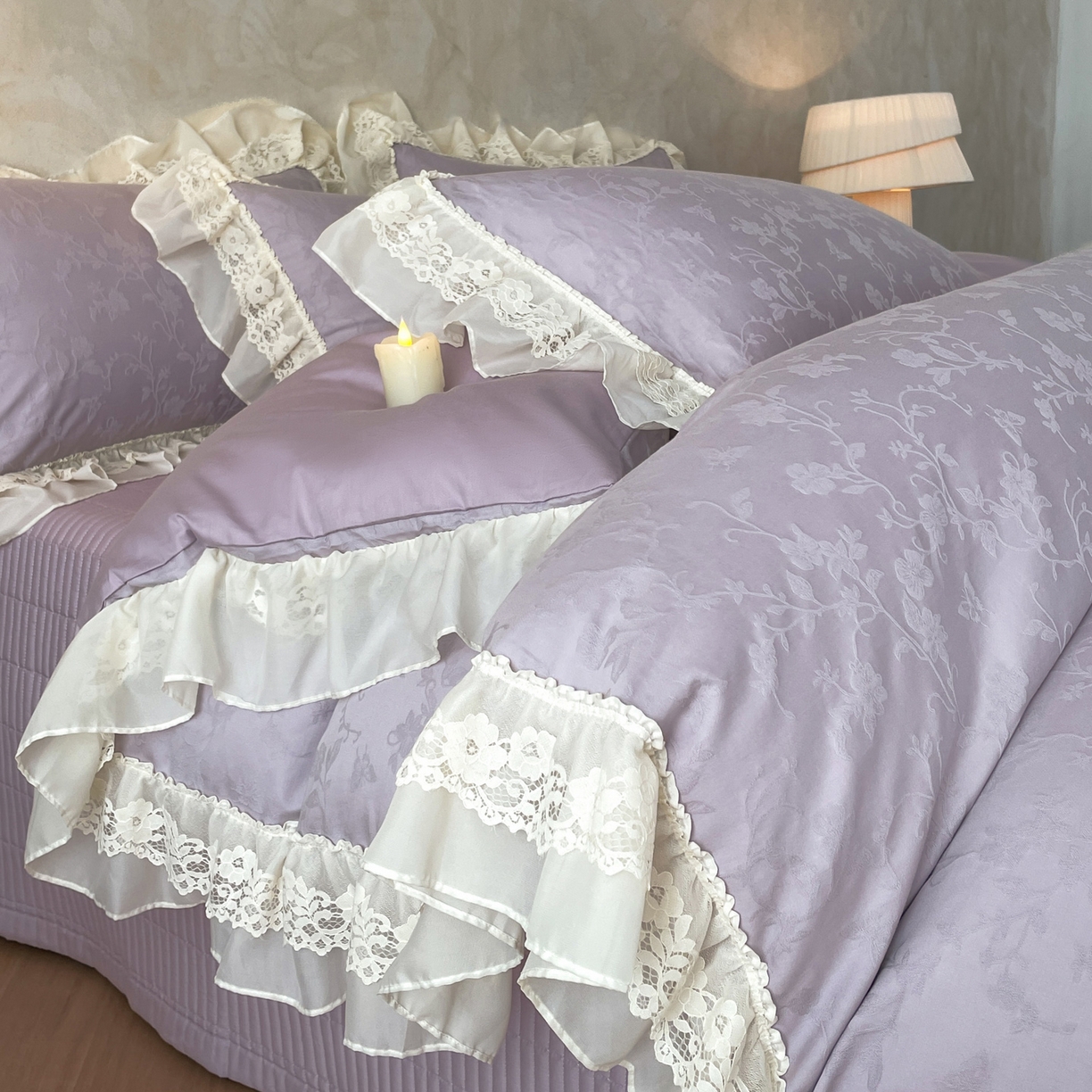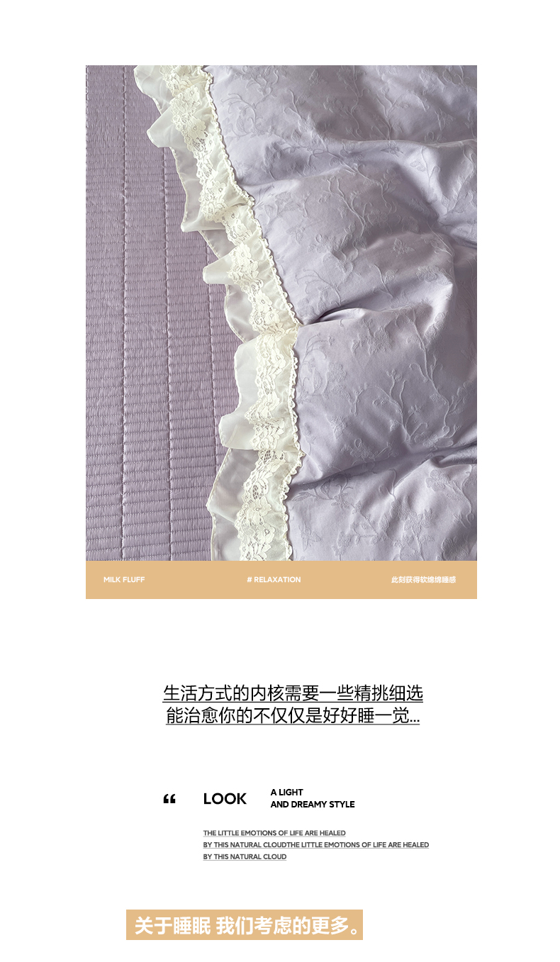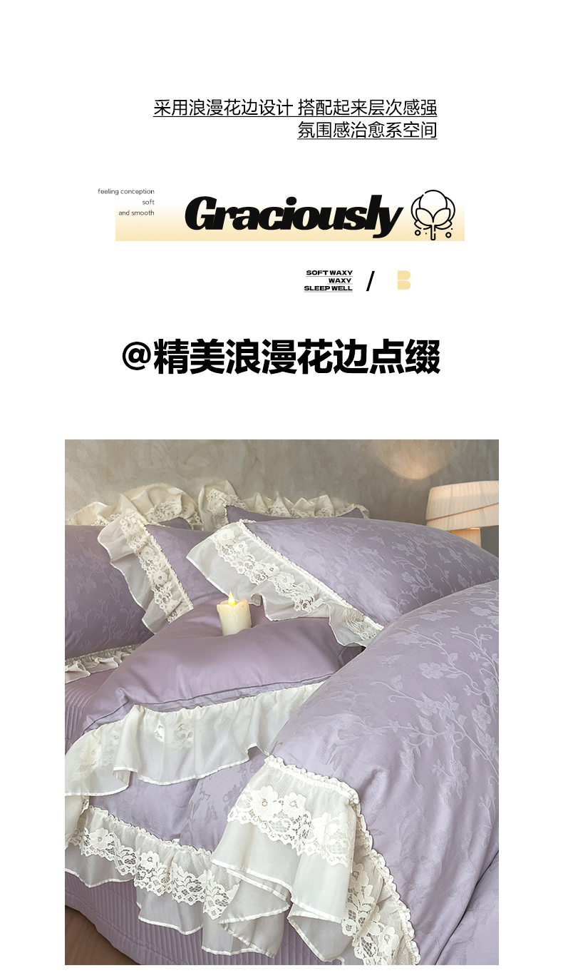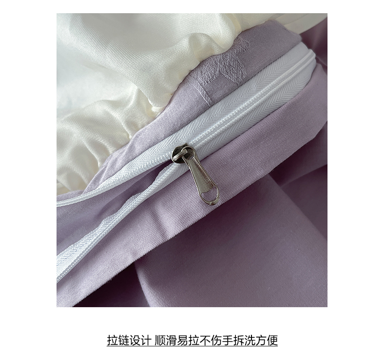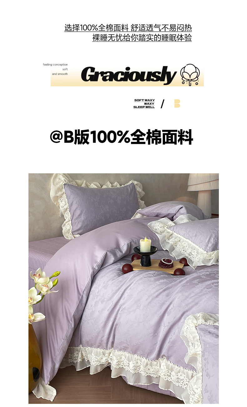 > 莱登卡奴 2026新款全棉纯棉A类60S水洗浮雕立体提花花边床盖款四件套-温馨系列 露柯紫