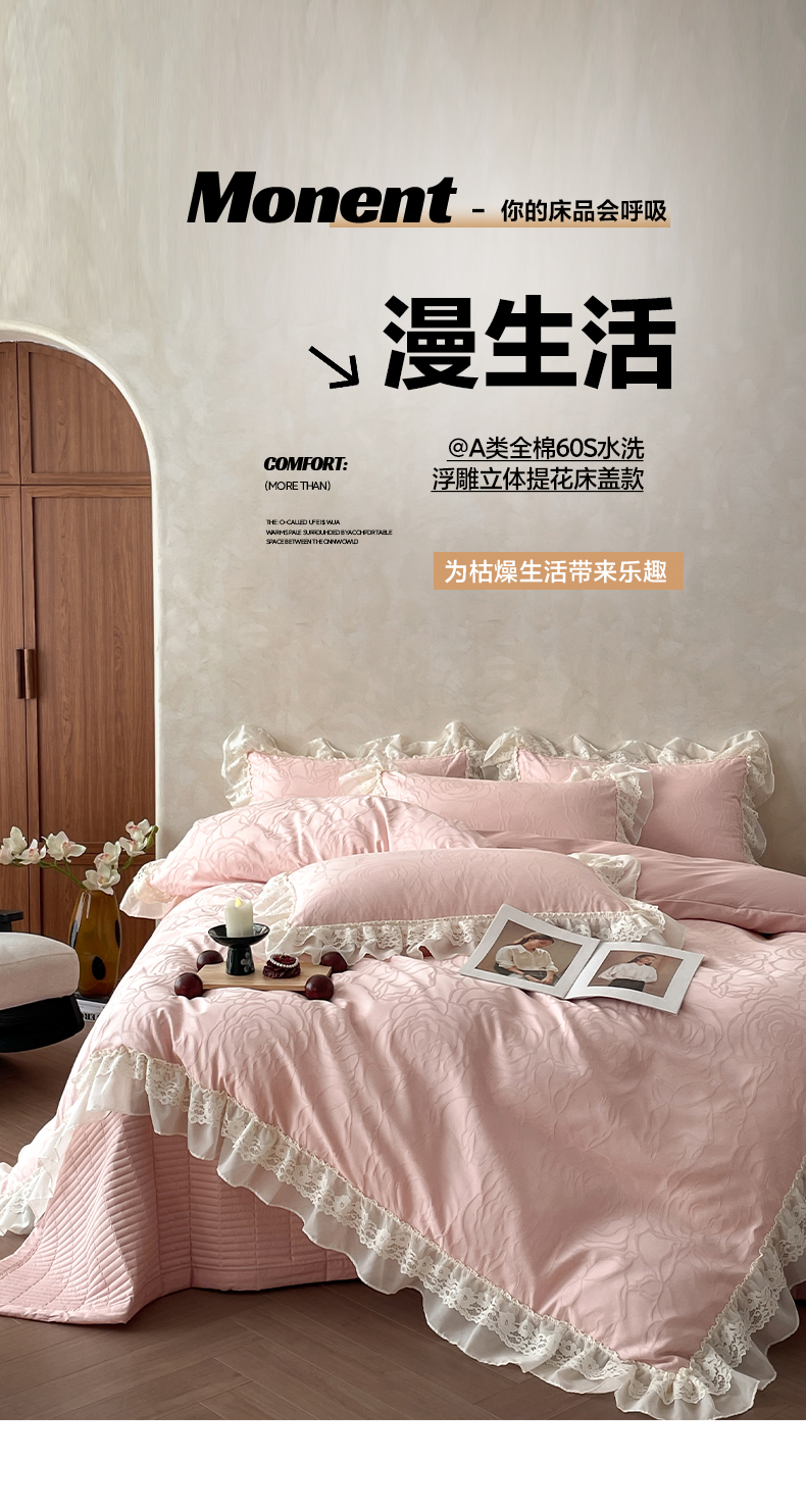 2026新款全棉纯棉A类60S水洗浮雕立体提花花边床盖款四件套-温馨系列