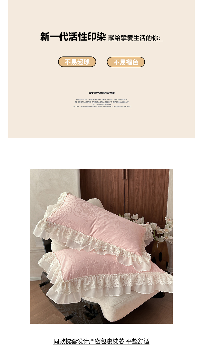 莱登卡奴 2026新款全棉纯棉A类60S水洗浮雕立体提花花边床盖款四件套-温馨系列 玫香浓粉
