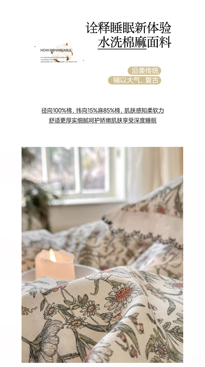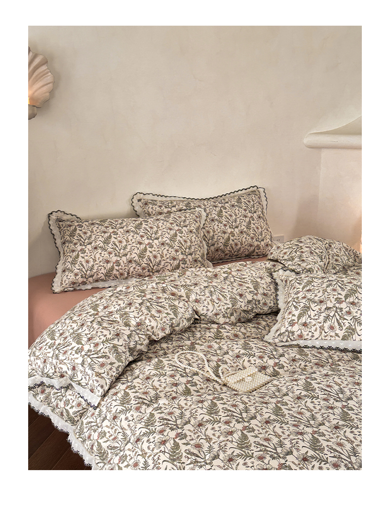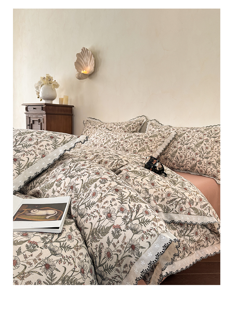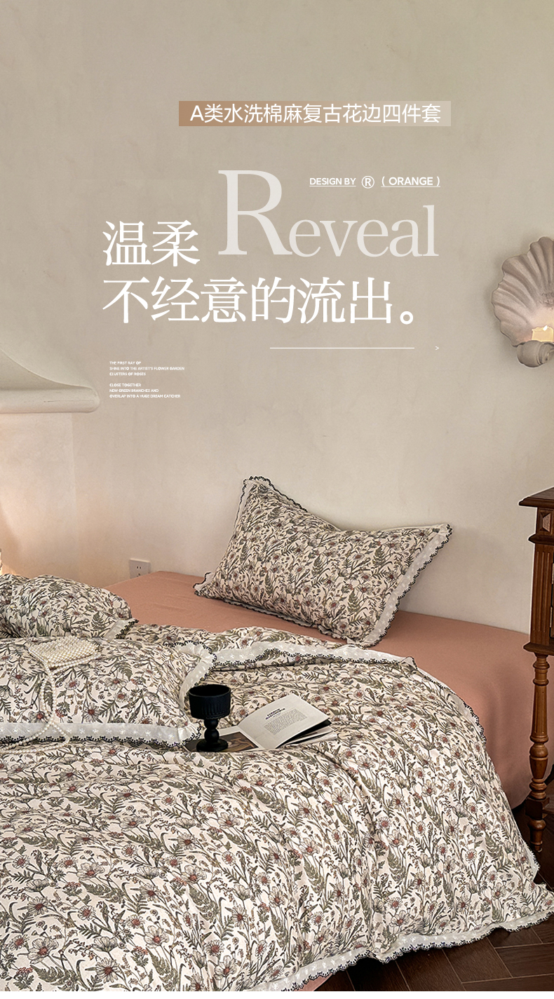 2026新款A类水洗棉麻复古花边麻棉四件套