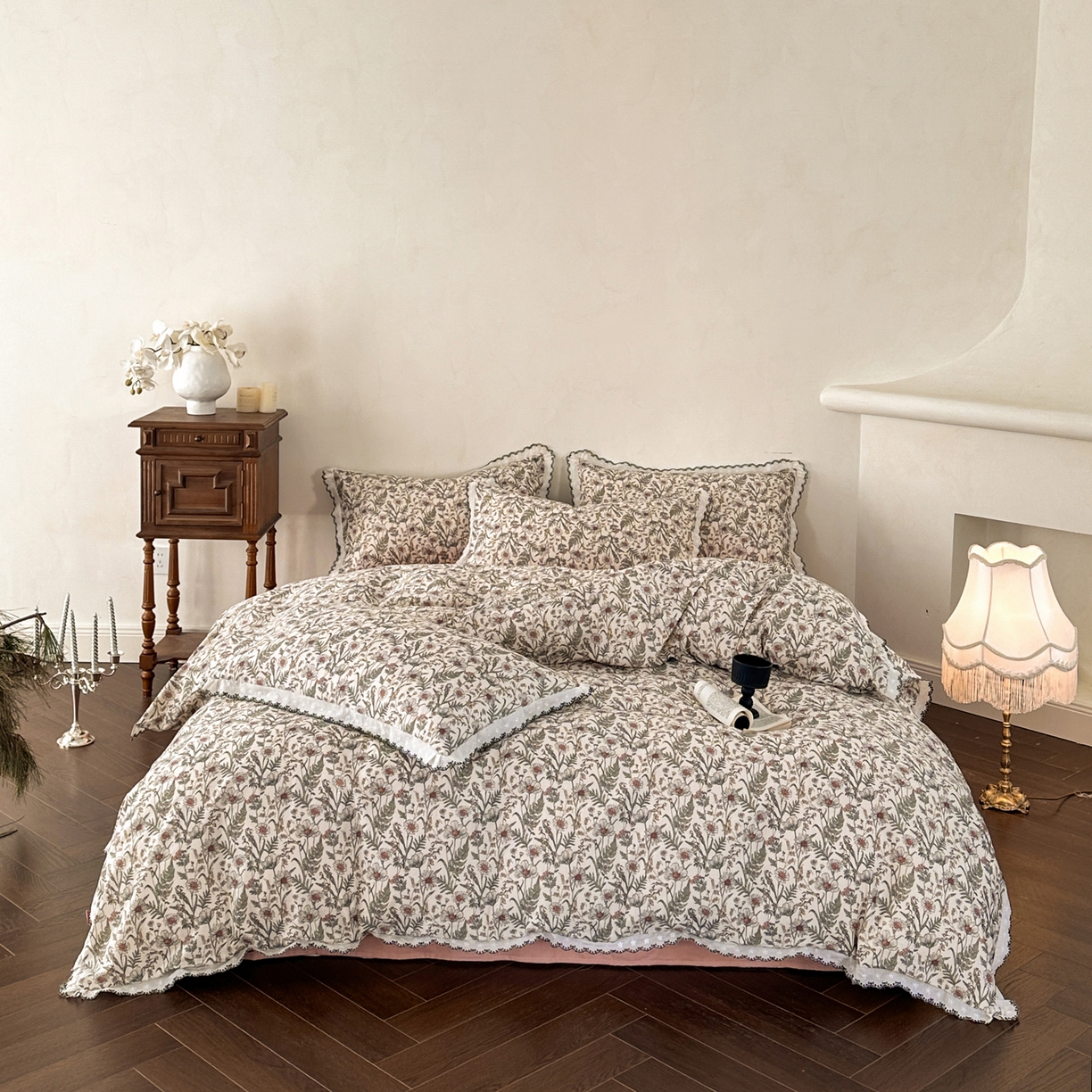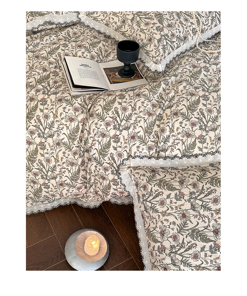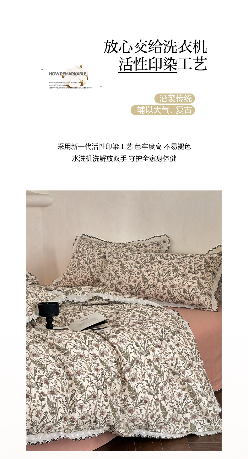 2026新款A类水洗棉麻复古花边麻棉四件套
