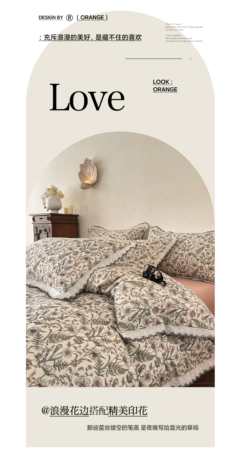 2026新款全棉A类小清新花边床盖款系列四件套