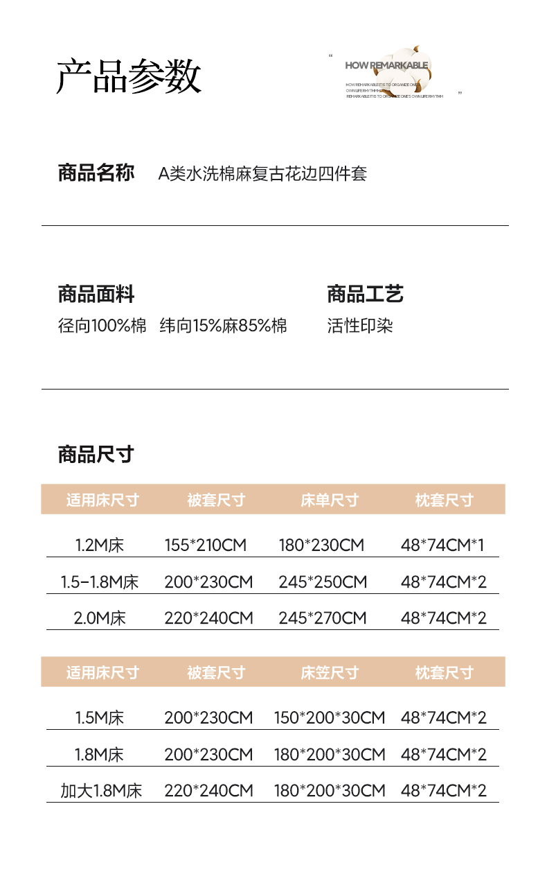 2026新款A类水洗棉麻复古花边麻棉四件套