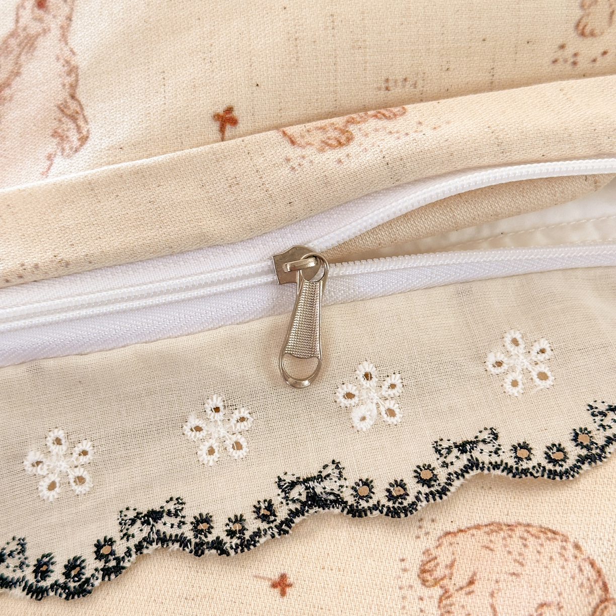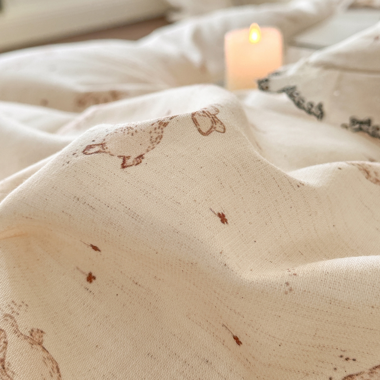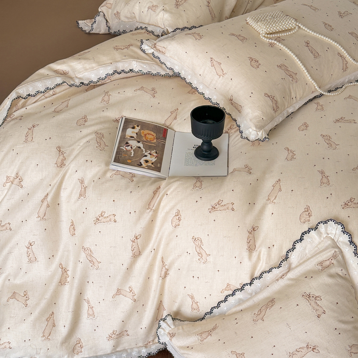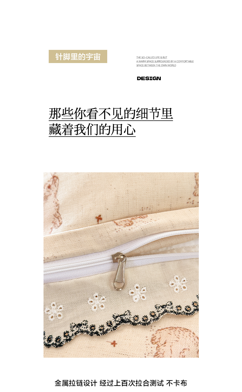 莱登卡奴 2026新款A类水洗棉麻复古花边麻棉四件套 欢乐兔