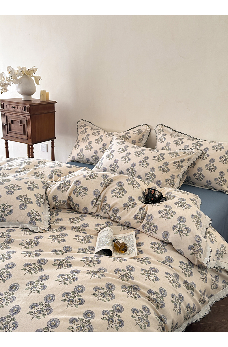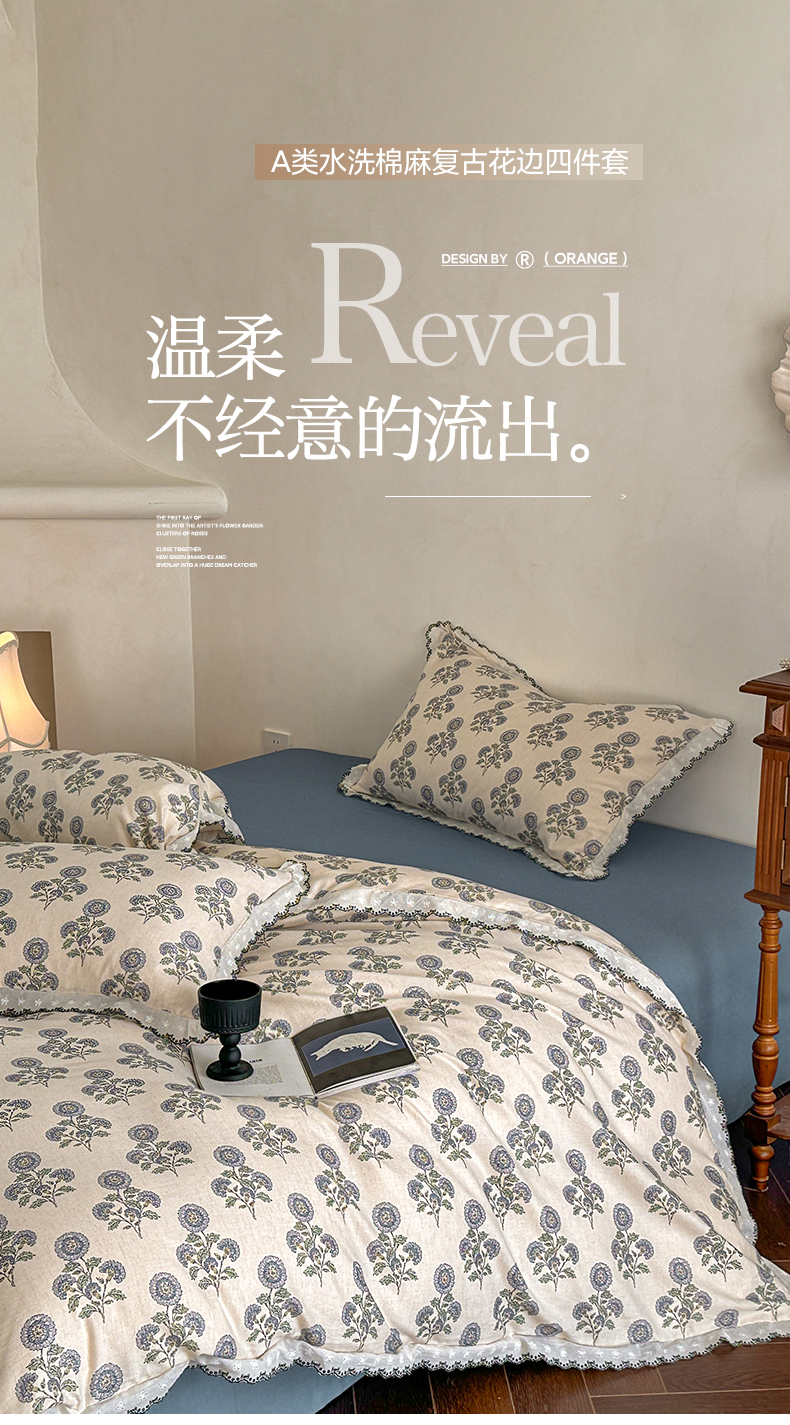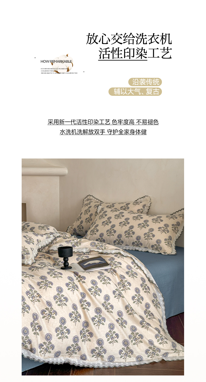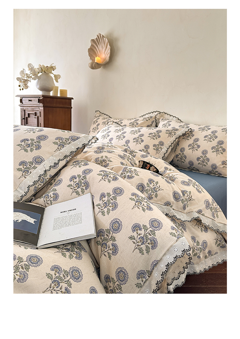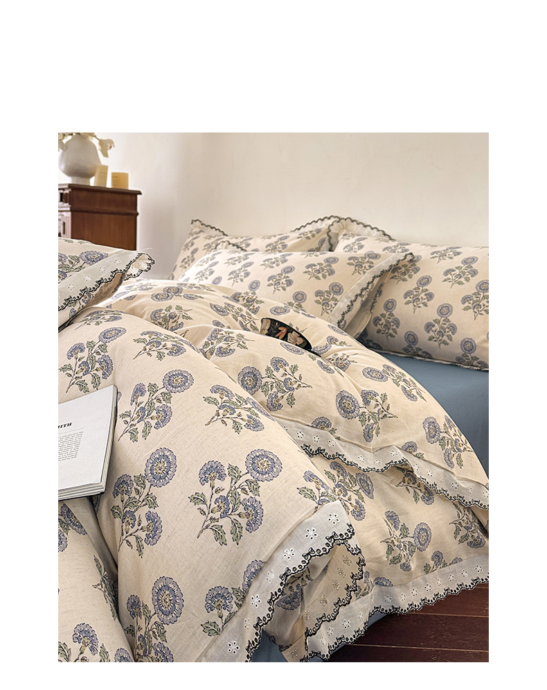 2026新款A类水洗棉麻复古花边麻棉四件套