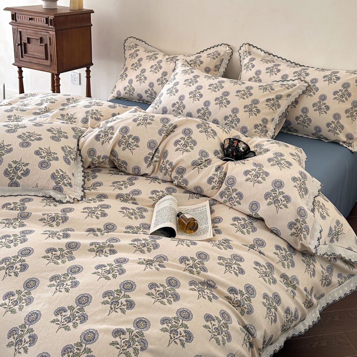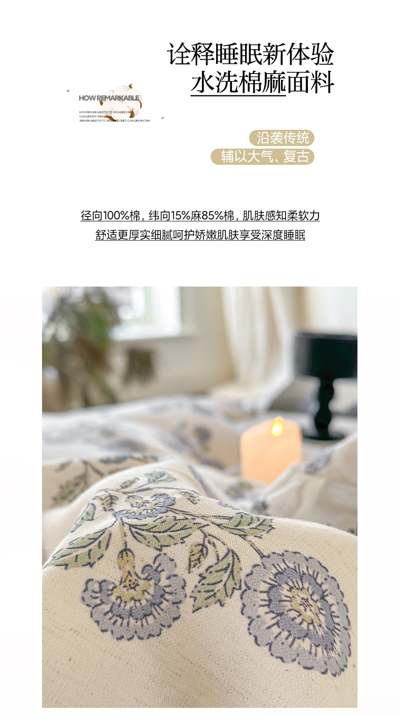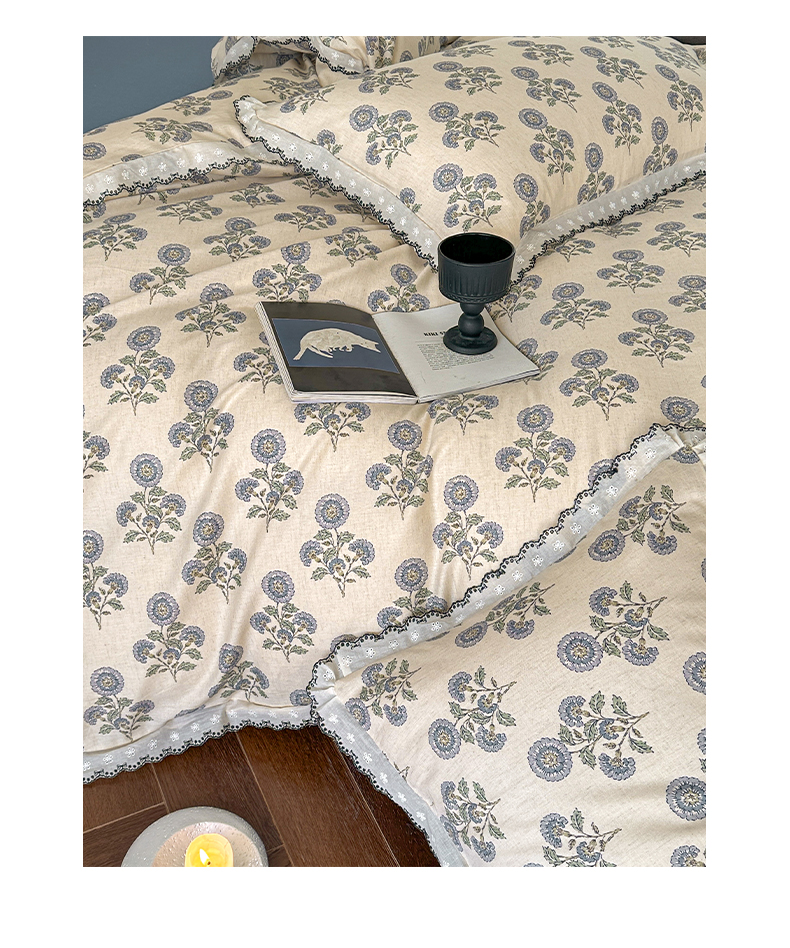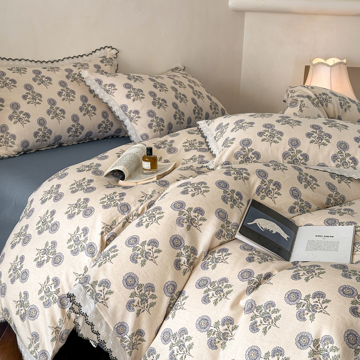 2026新款A类水洗棉麻复古花边麻棉四件套