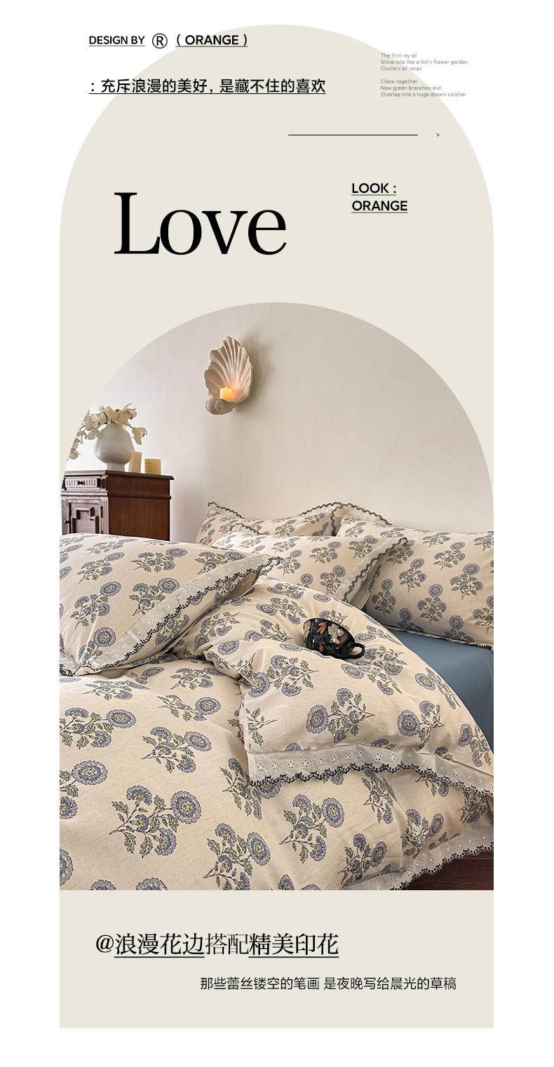 2026新款全棉A类小清新花边床盖款系列四件套