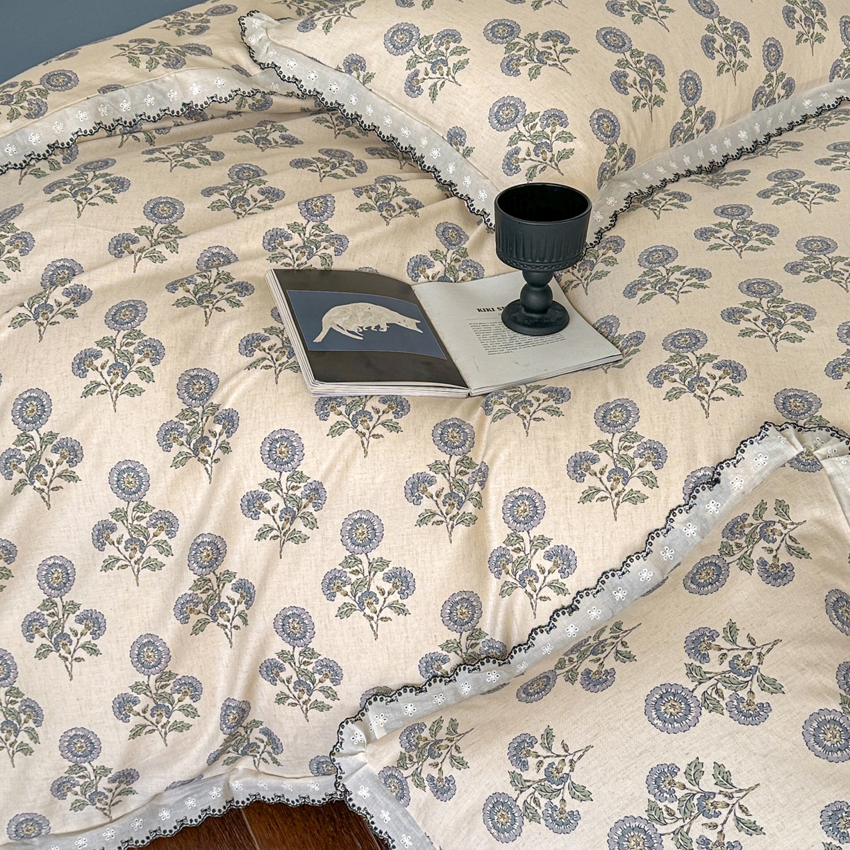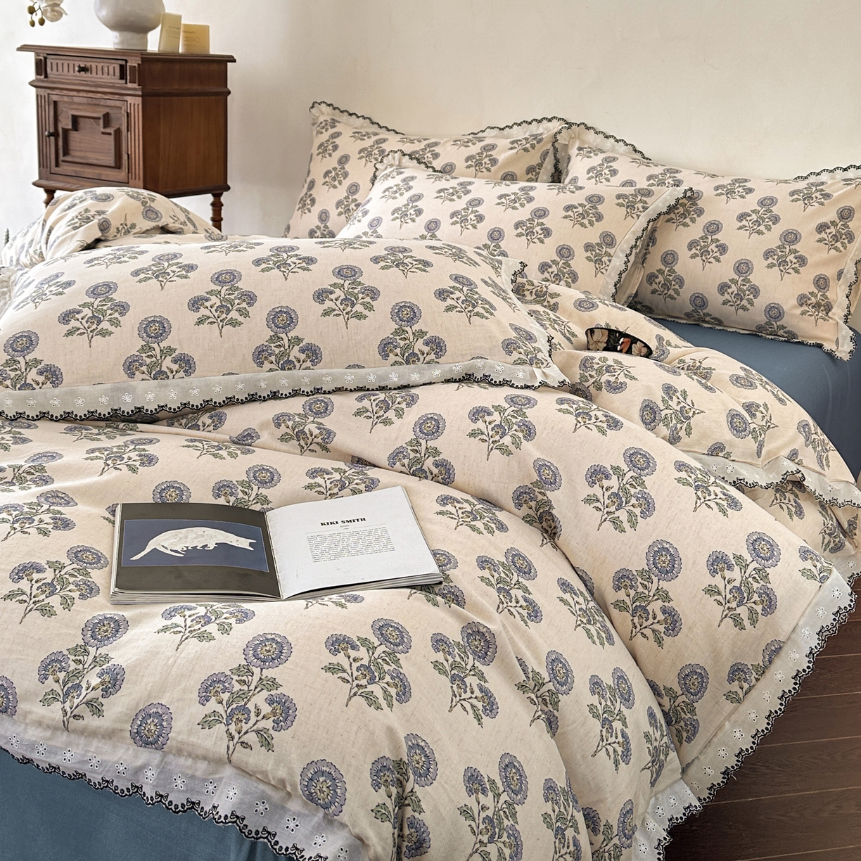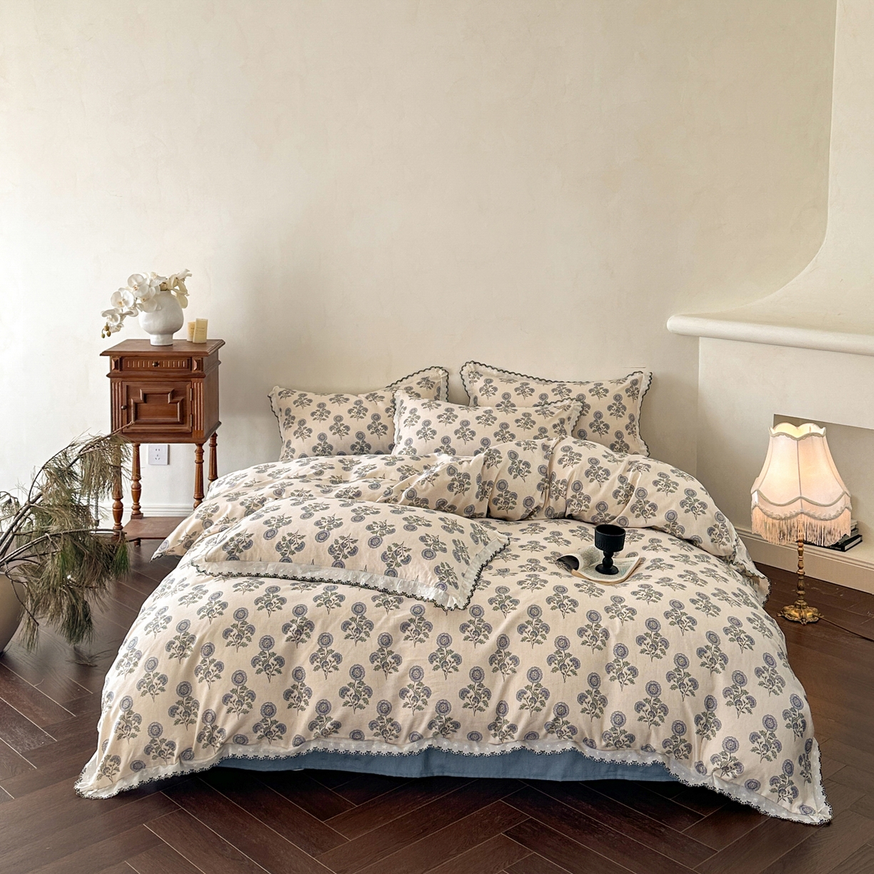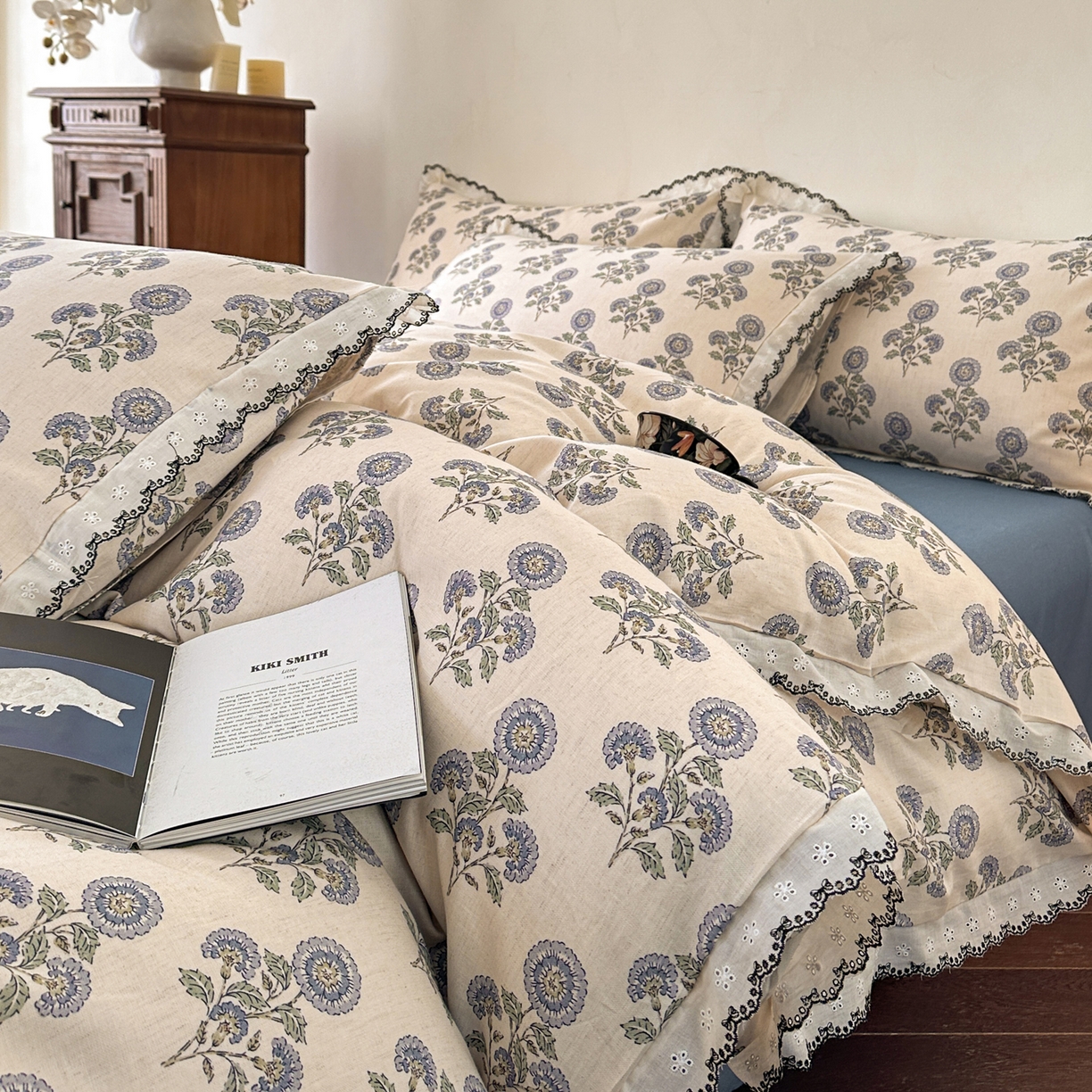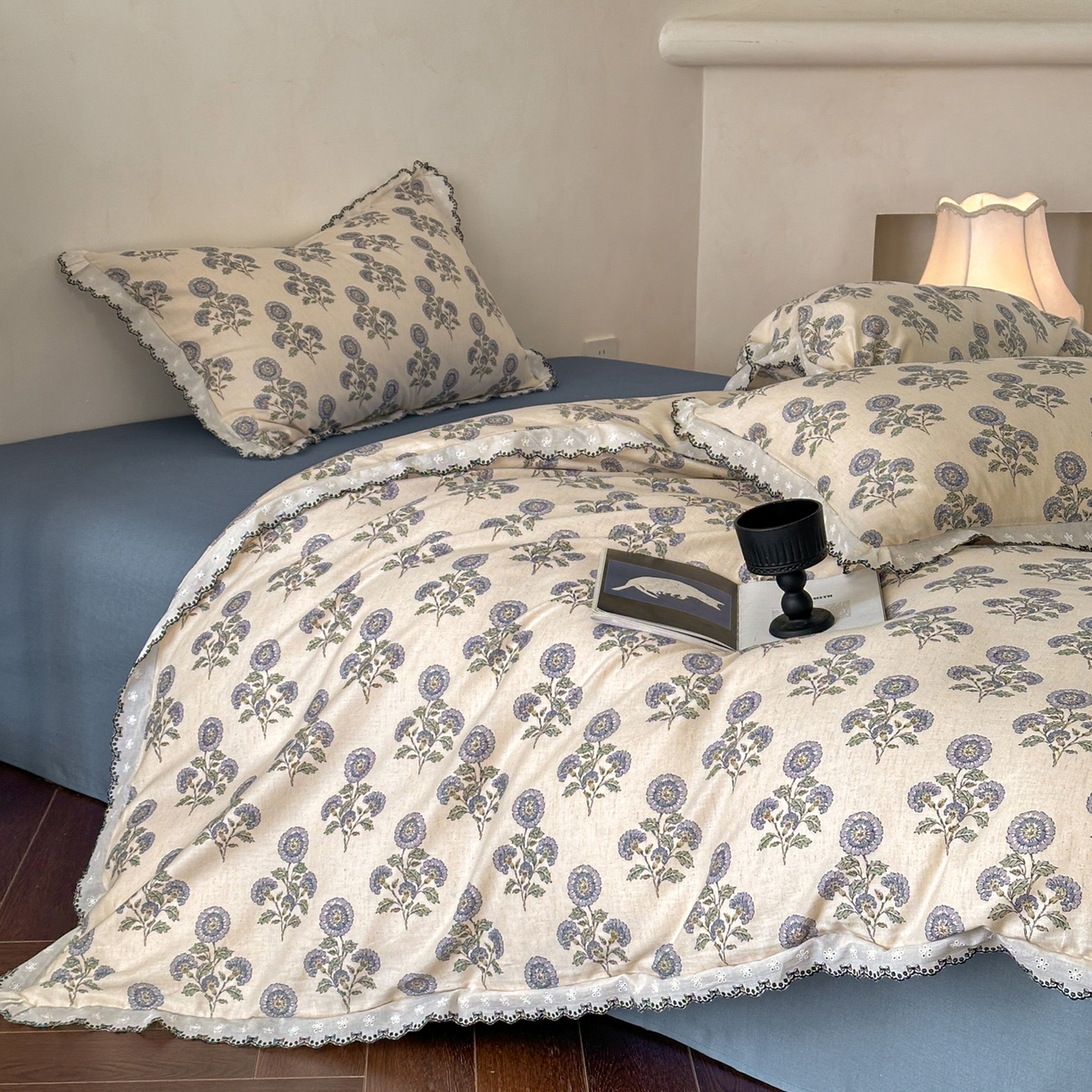 莱登卡奴 2026新款A类水洗棉麻复古花边麻棉四件套 清澜