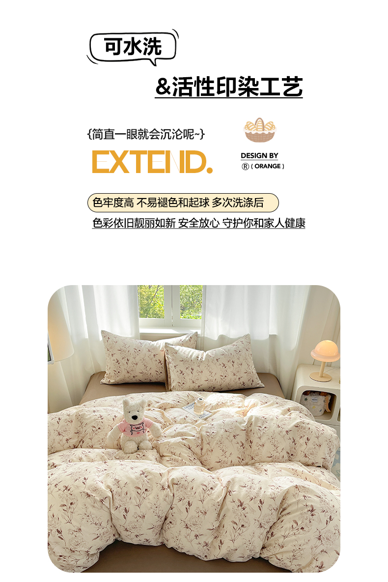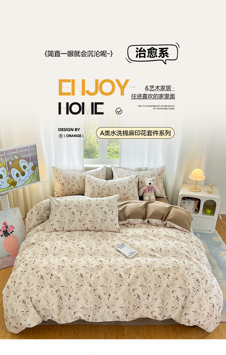2026新款A类水洗棉麻小清新印花四件套