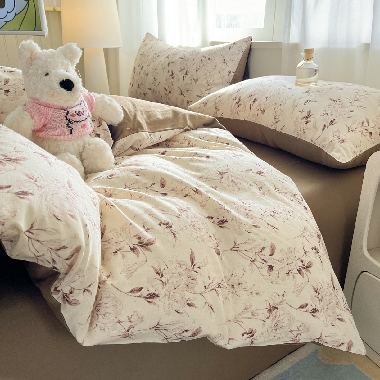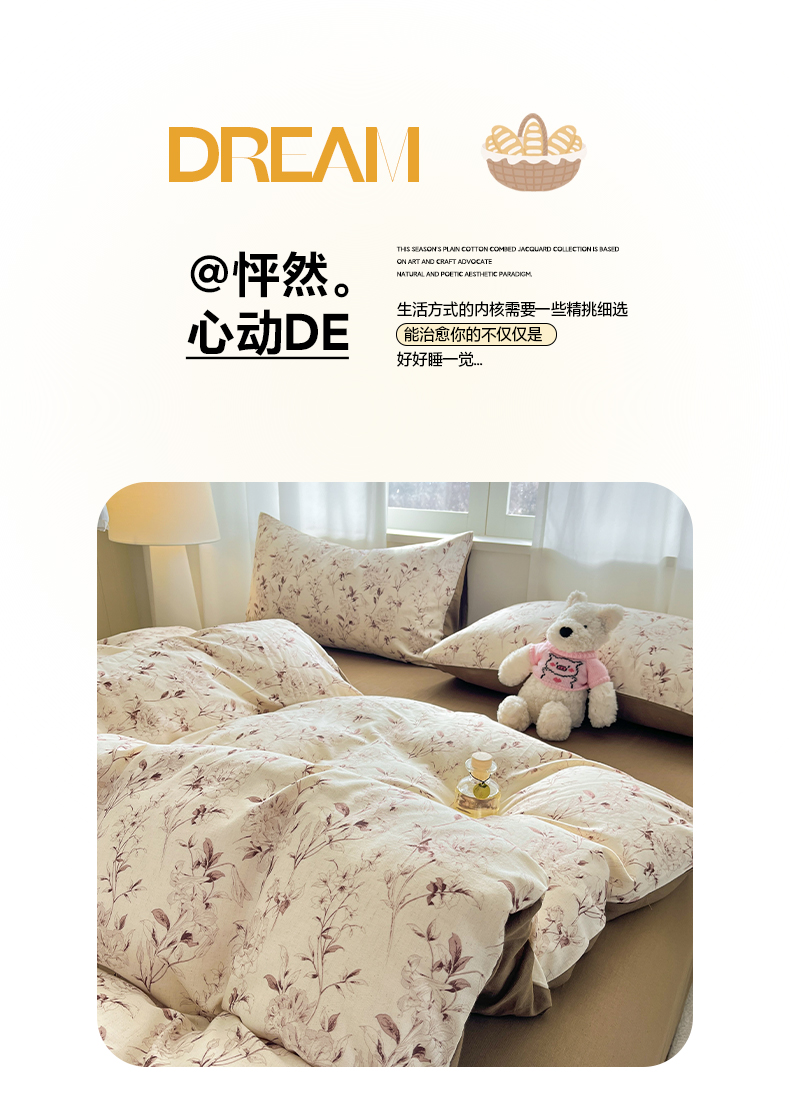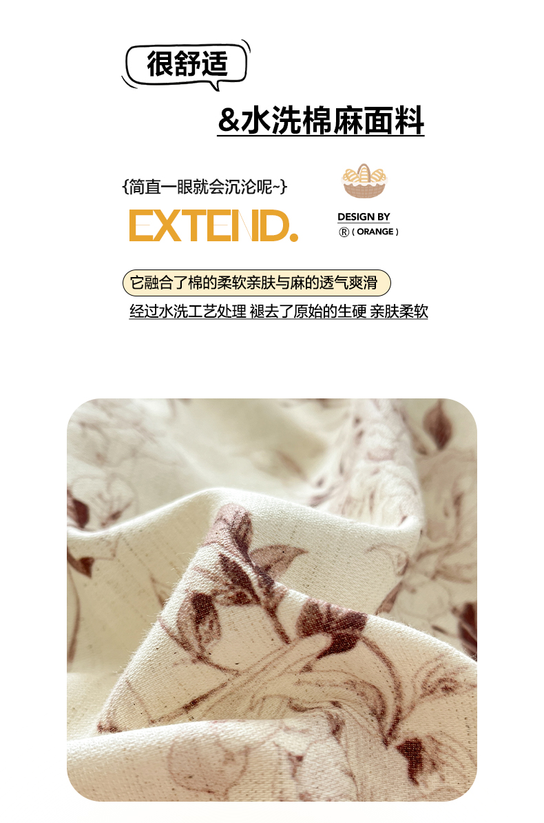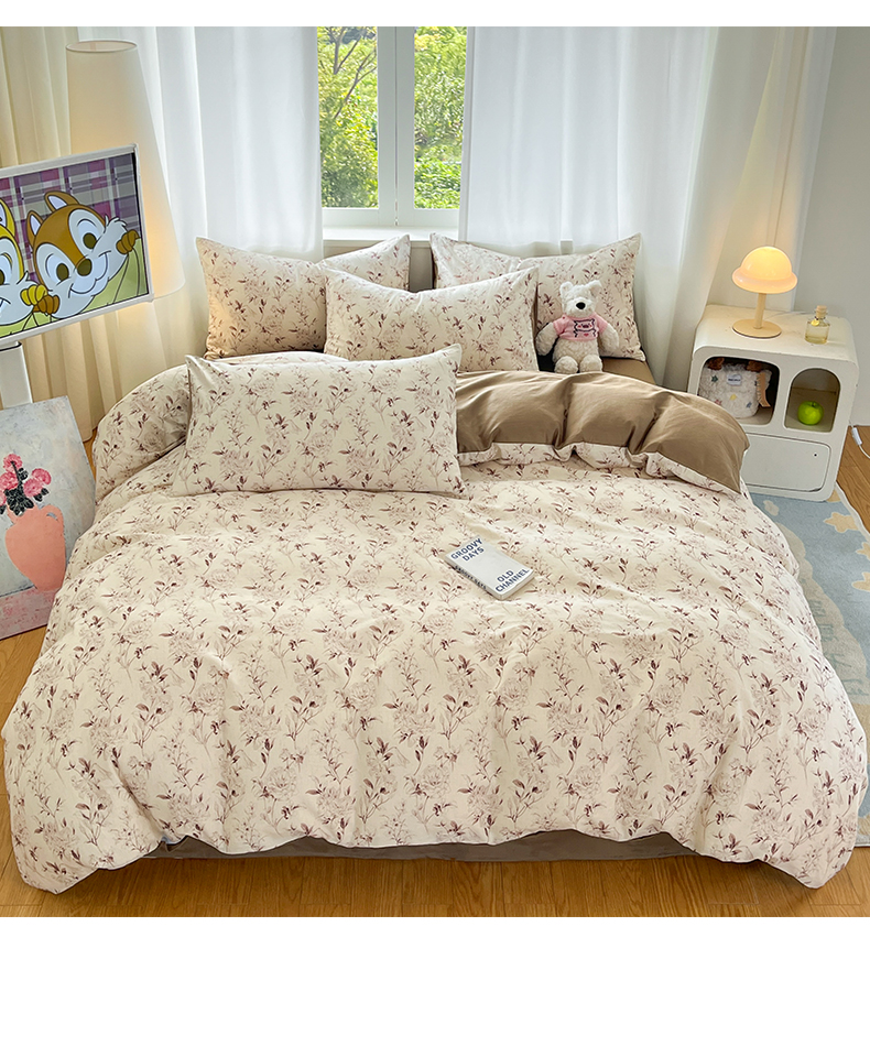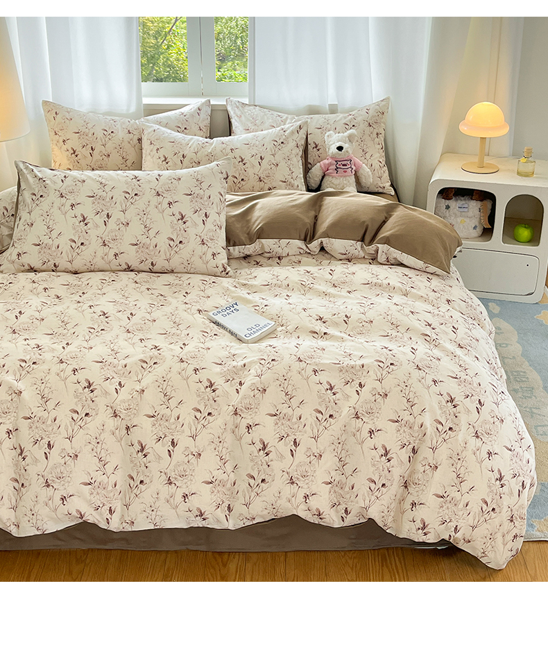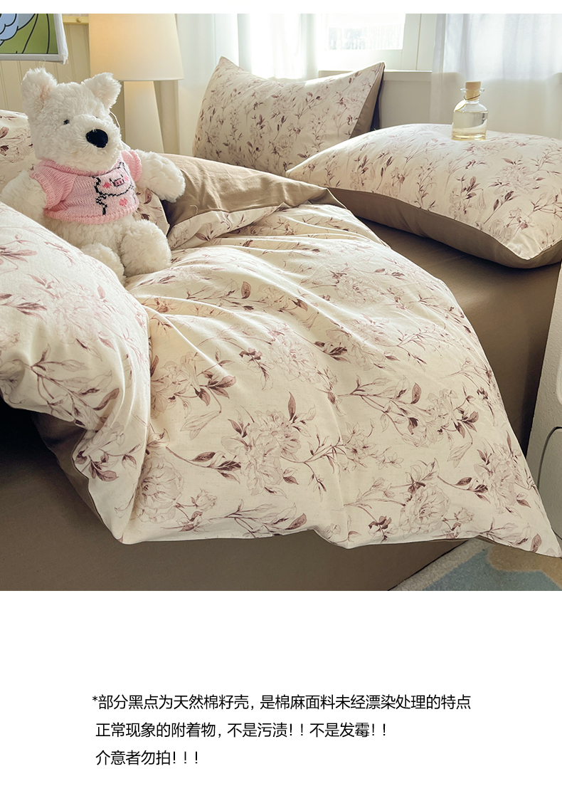 > 莱登卡奴 2026新款A类水洗棉麻小清新印花四件套 曼语咖