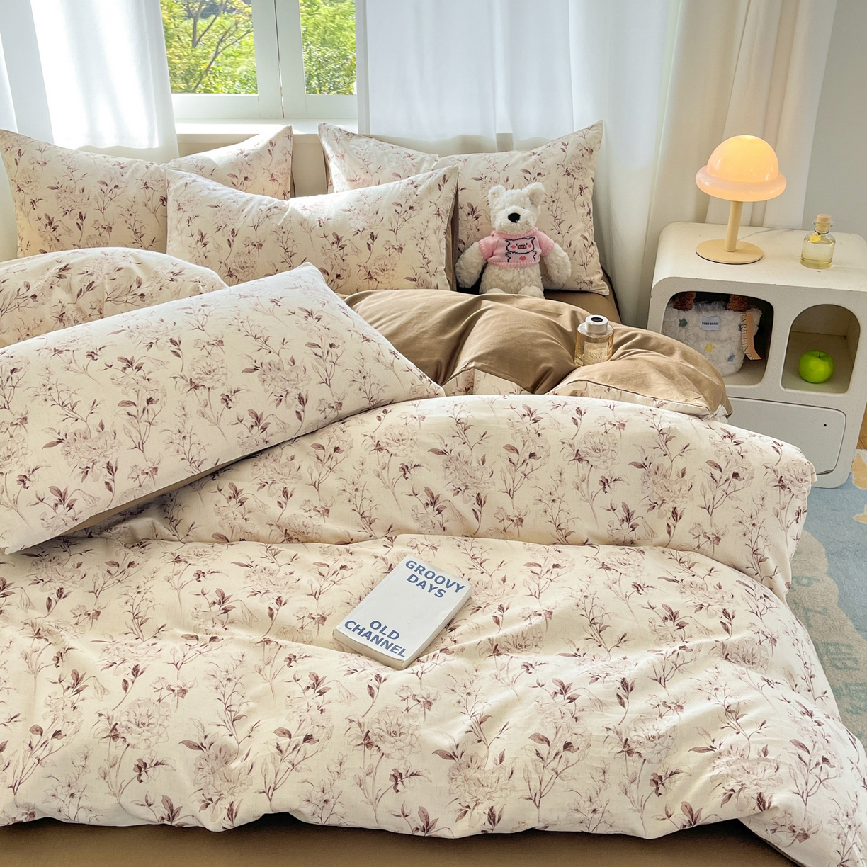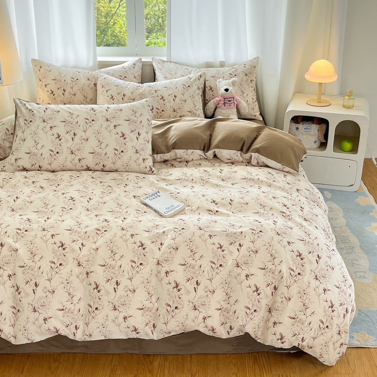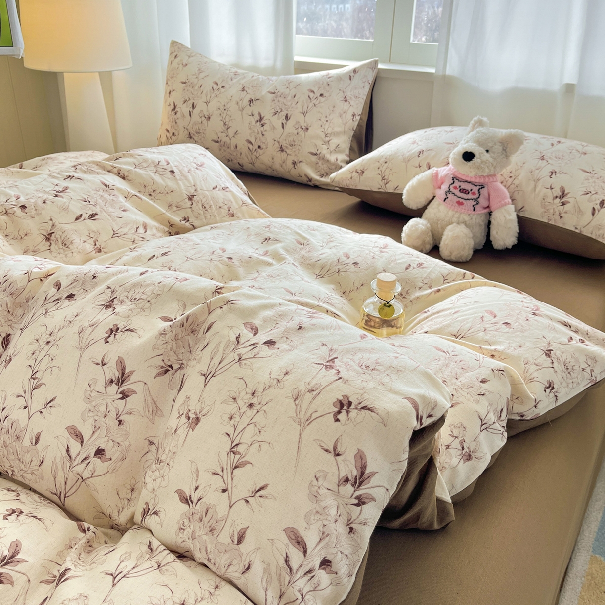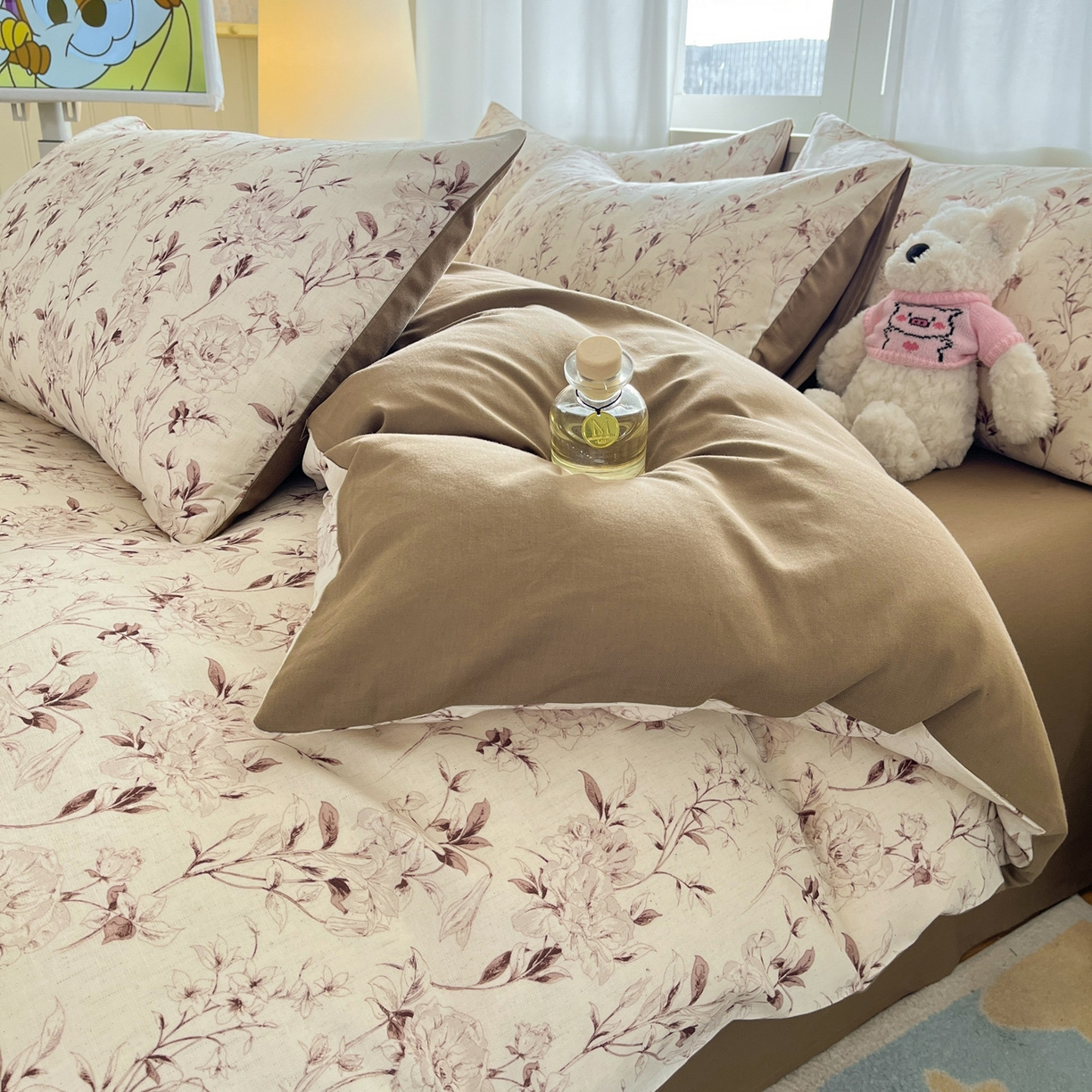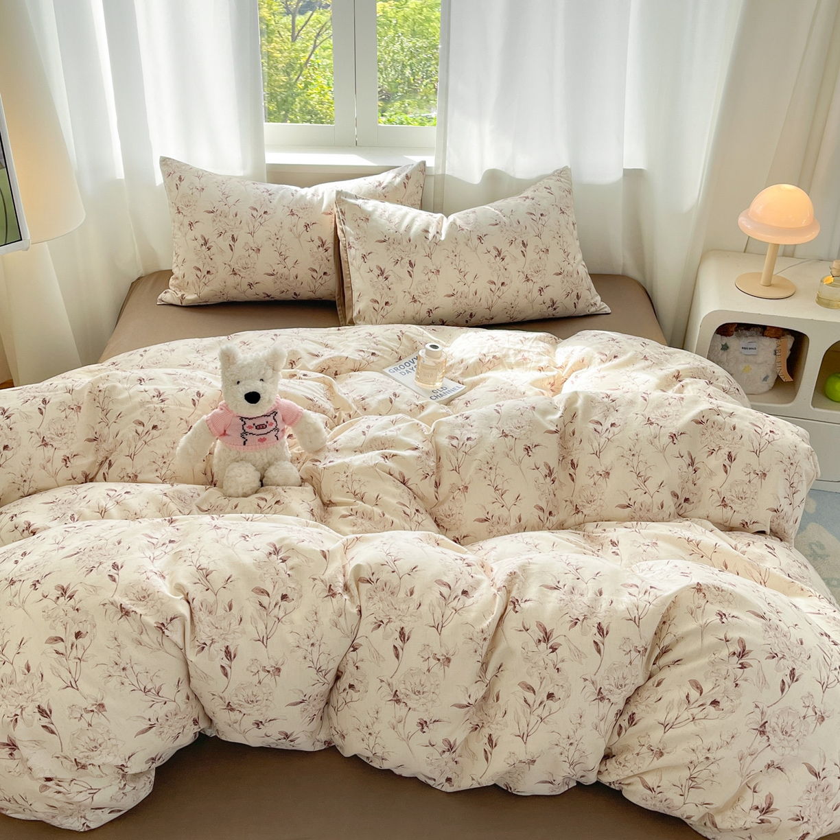 > 莱登卡奴 2026新款A类水洗棉麻小清新印花四件套 曼语咖