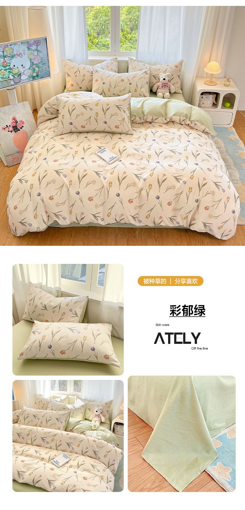 A类全棉良品风学生宿舍床三件套六件套