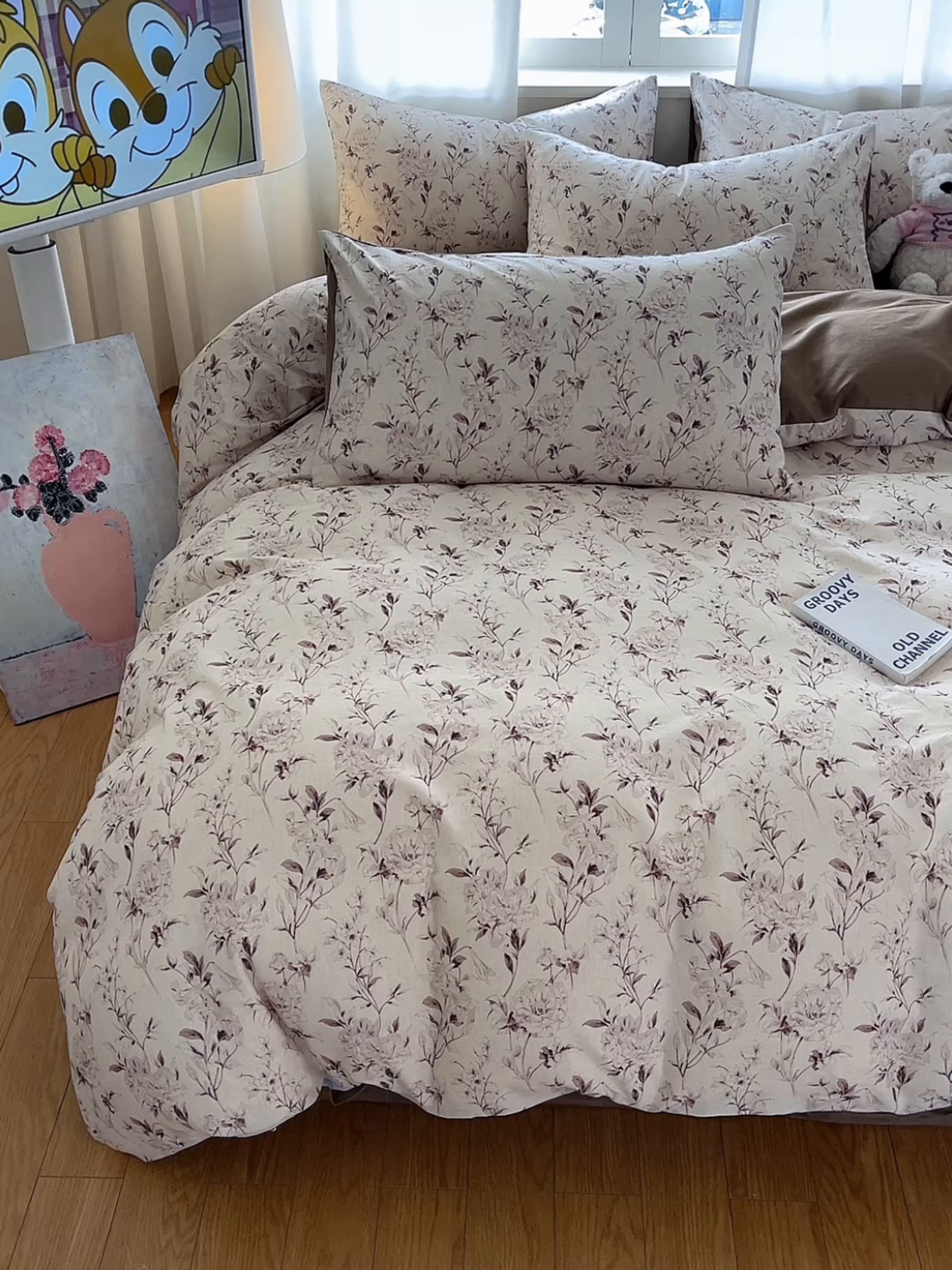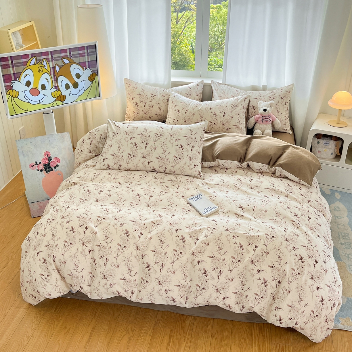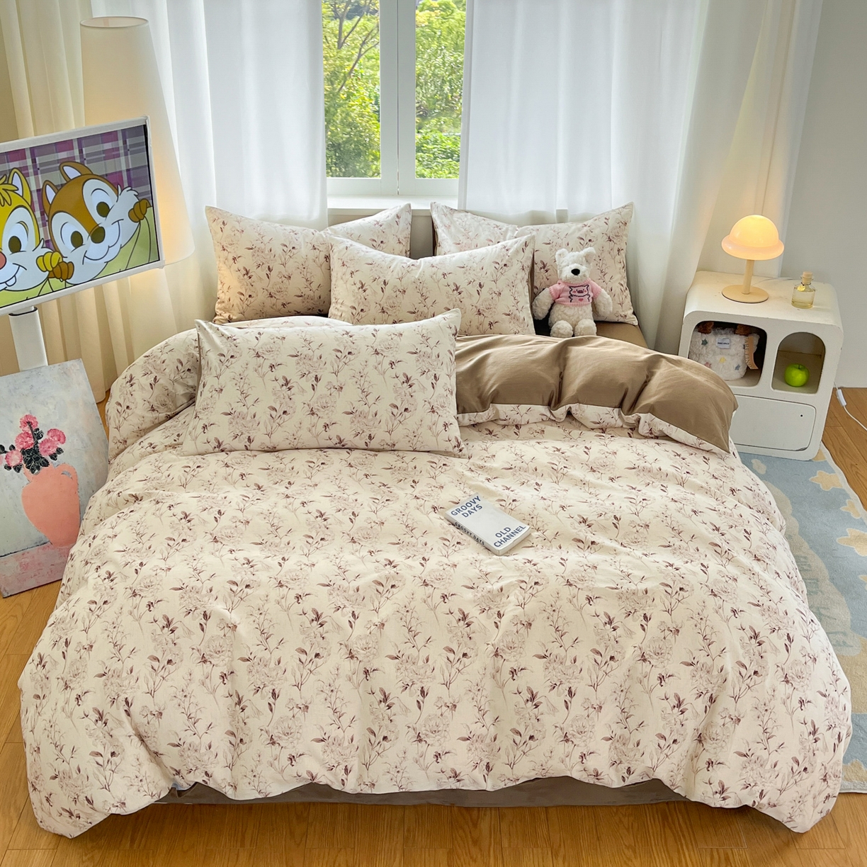 莱登卡奴 2026新款A类水洗棉麻小清新印花四件套 曼语咖