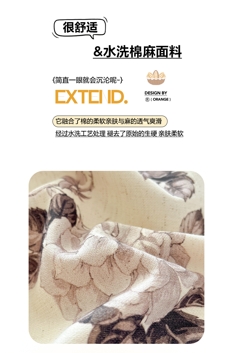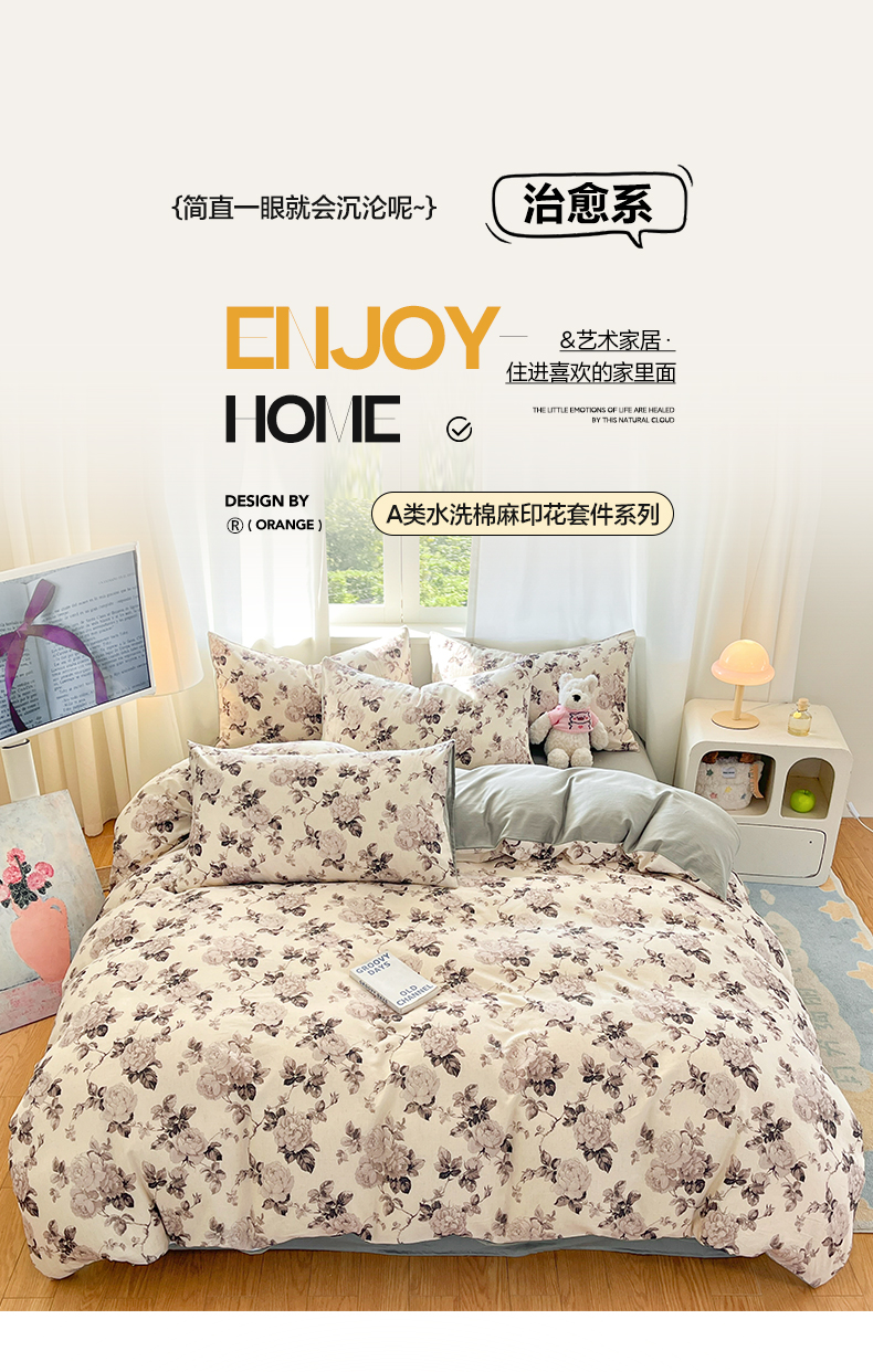 2026新款A类水洗棉麻小清新印花四件套