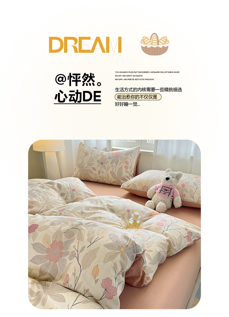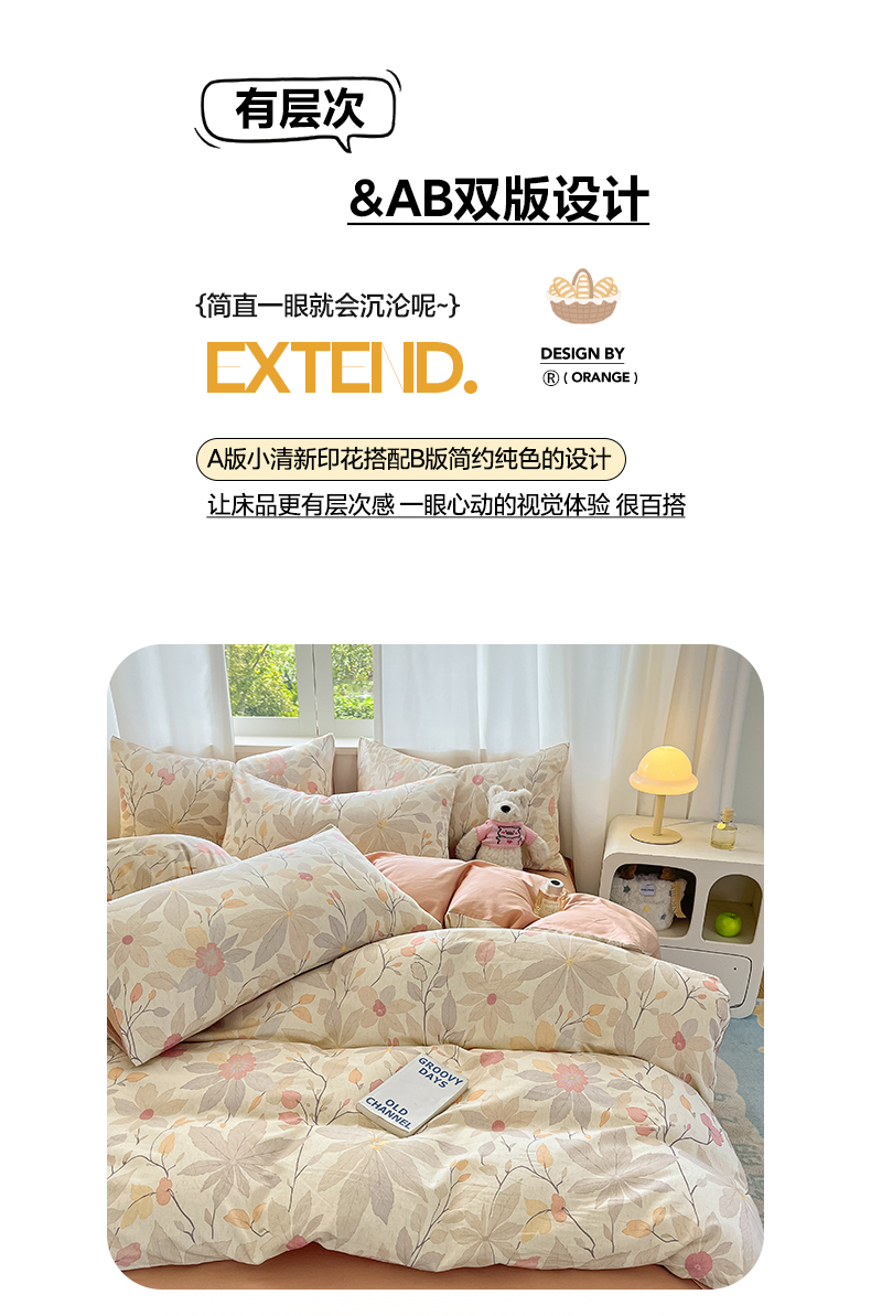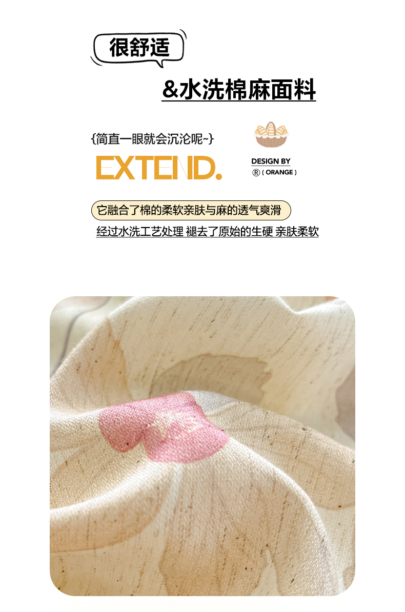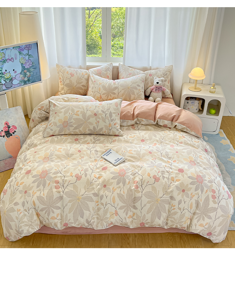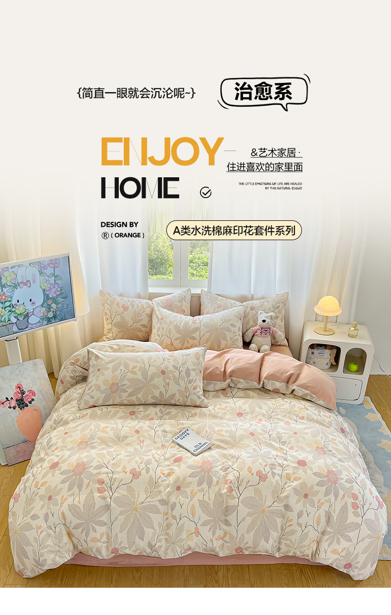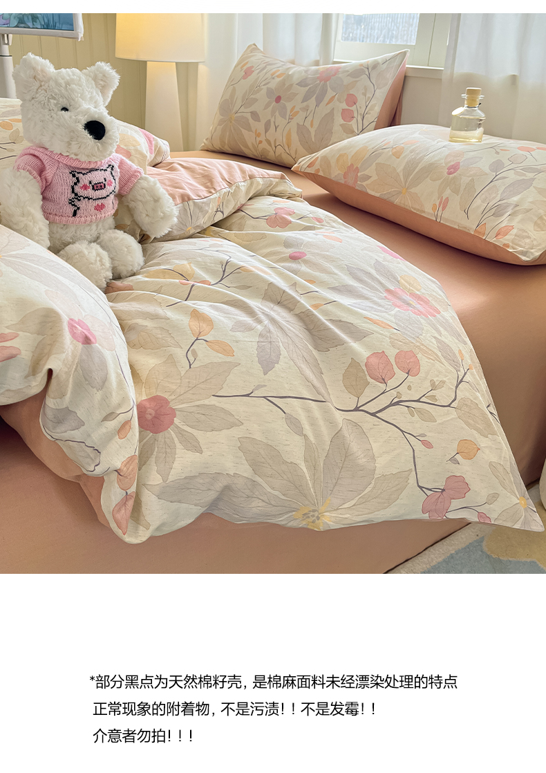 2026新款A类水洗棉麻小清新印花四件套