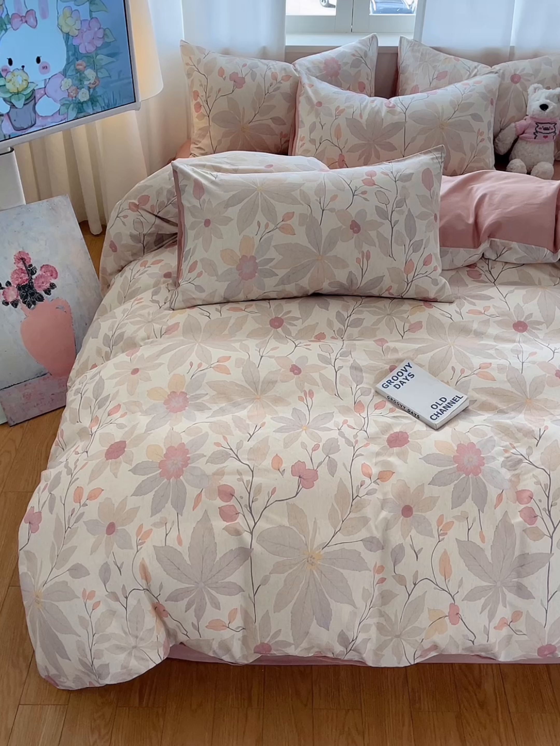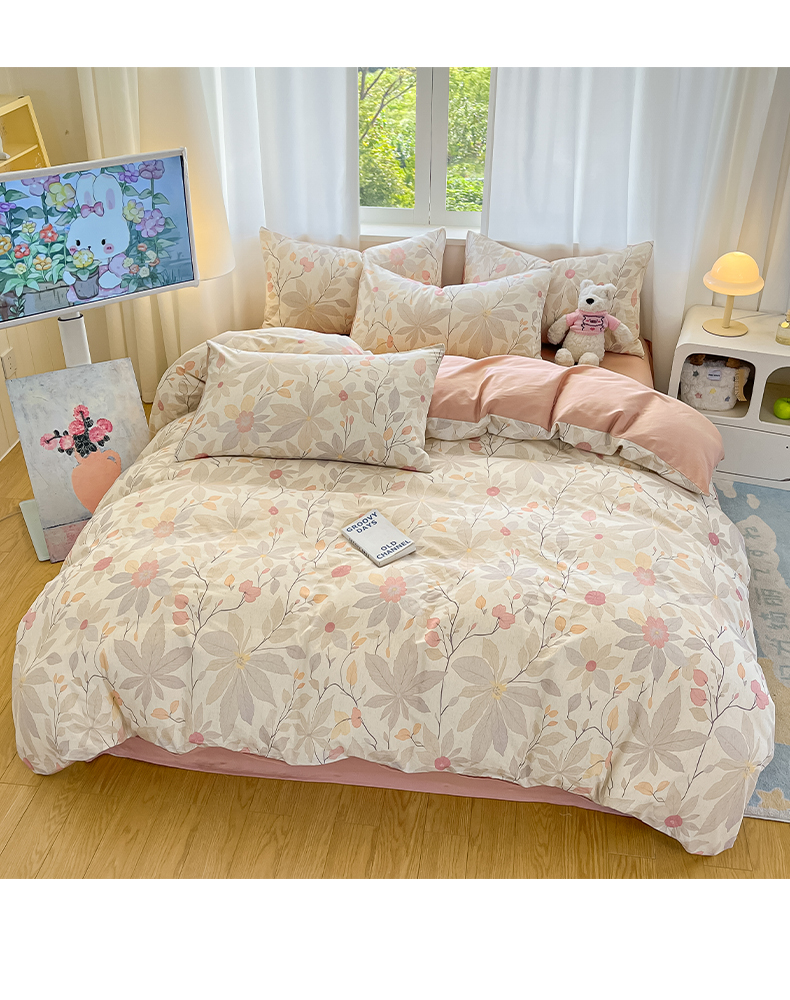 莱登卡奴 2026新款A类水洗棉麻小清新印花四件套 彤彩粉