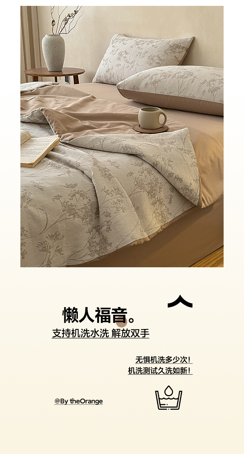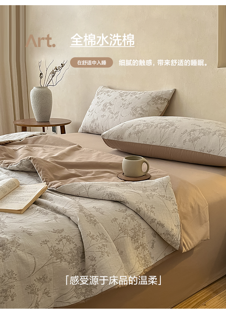 2026新款A类水洗棉麻小清新印花四件套
