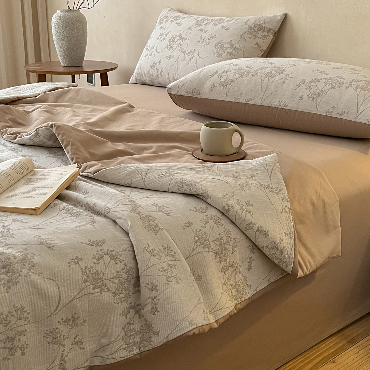 2025新款A类高克重牛奶绒泡泡绒印花美拉德风系列四件套