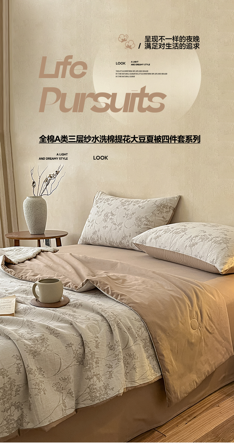 2025新款A类全棉色织水洗棉大豆夏被四件套系列