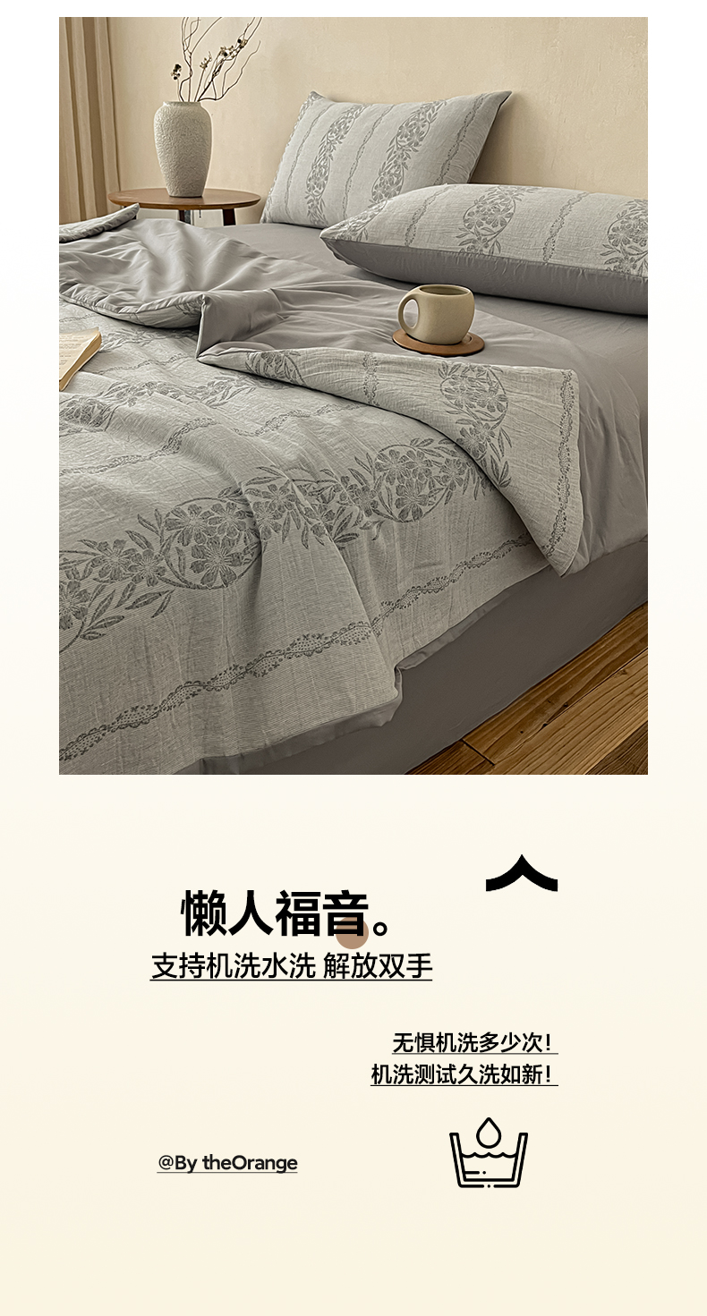 2026新款全棉A类三层纱水洗棉提花大豆春秋被四件套(免套被套)