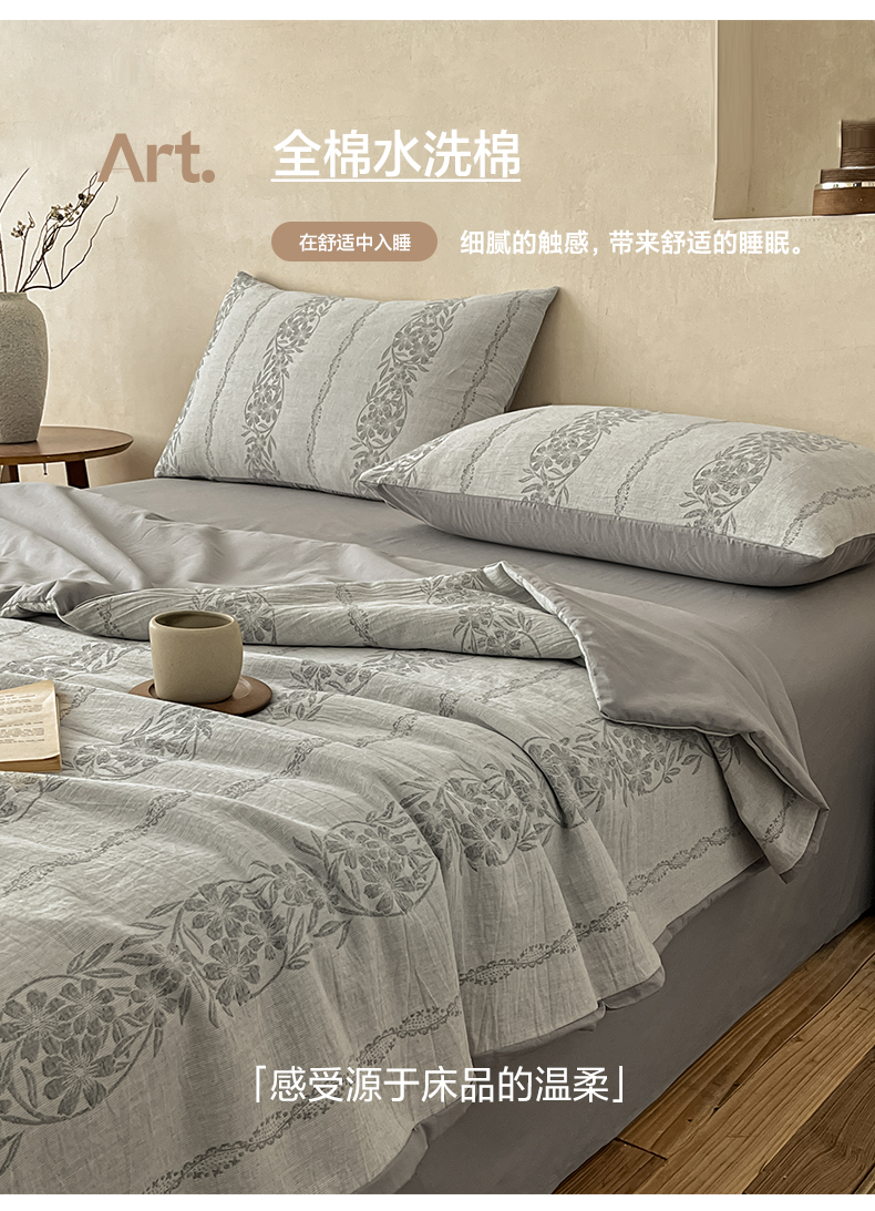 2026新款A类水洗棉麻小清新印花四件套