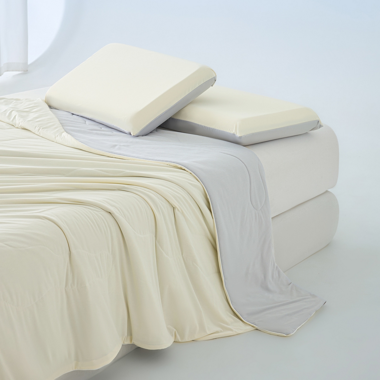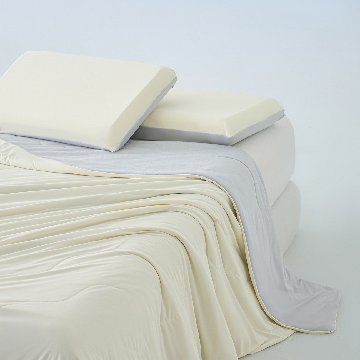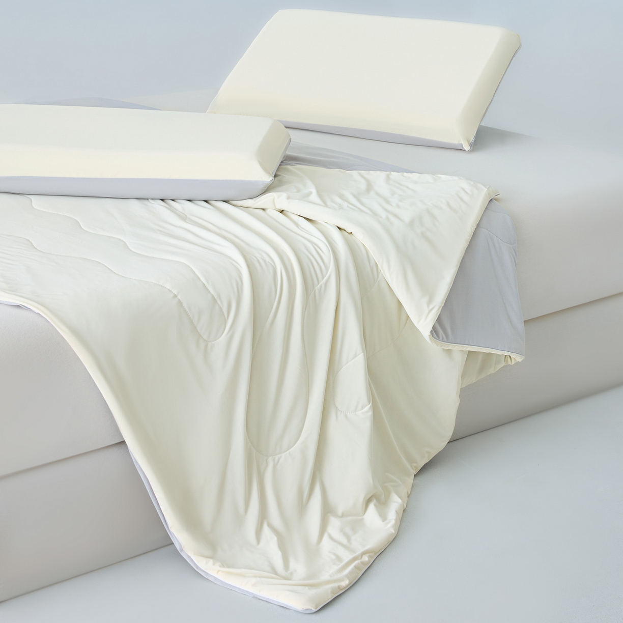> 莱登卡奴 2026新款A类凉感丝仿锦氨针织棉双面用夏被 杏酪奶灰