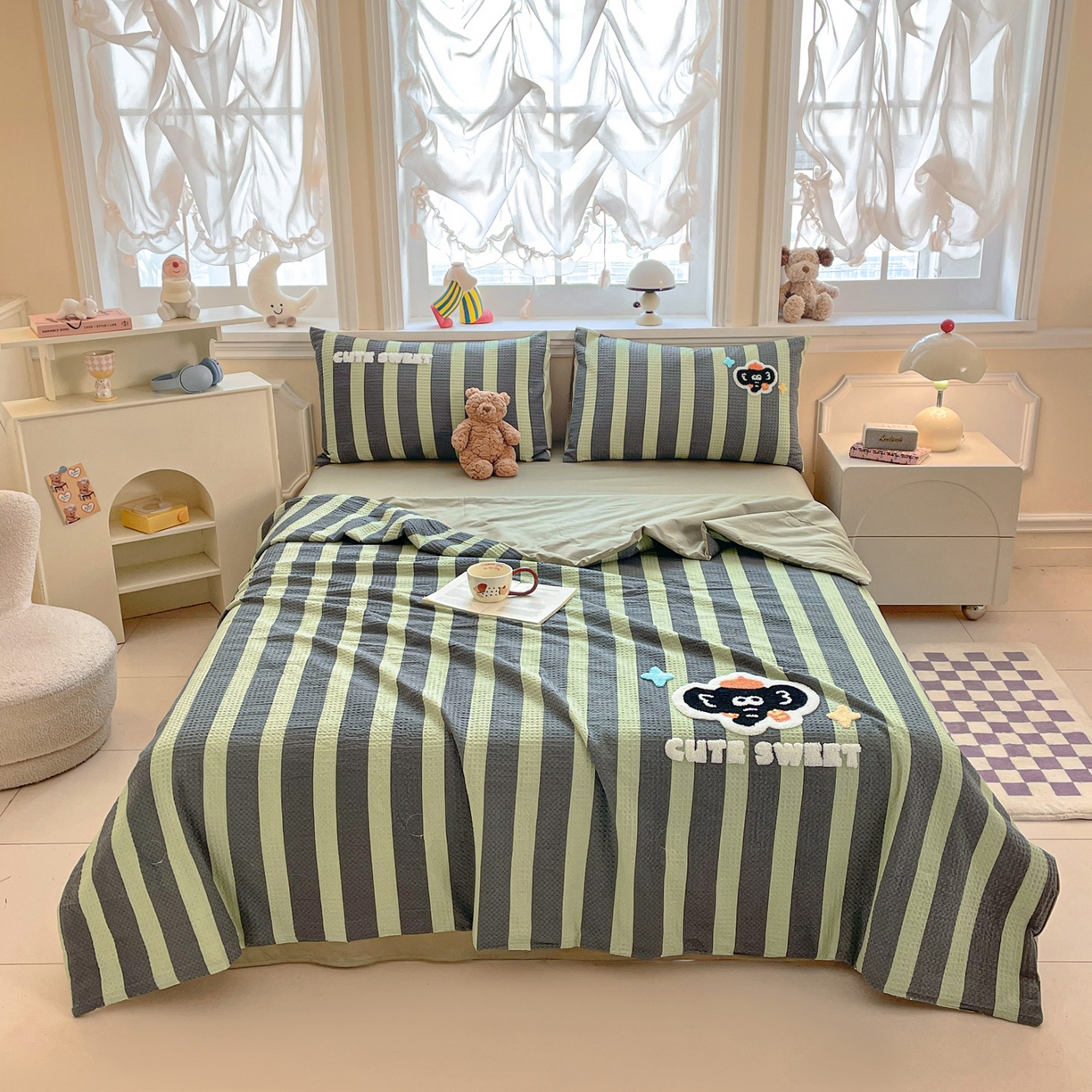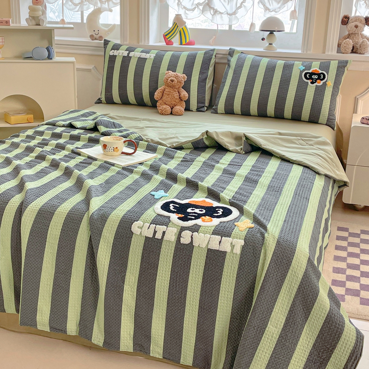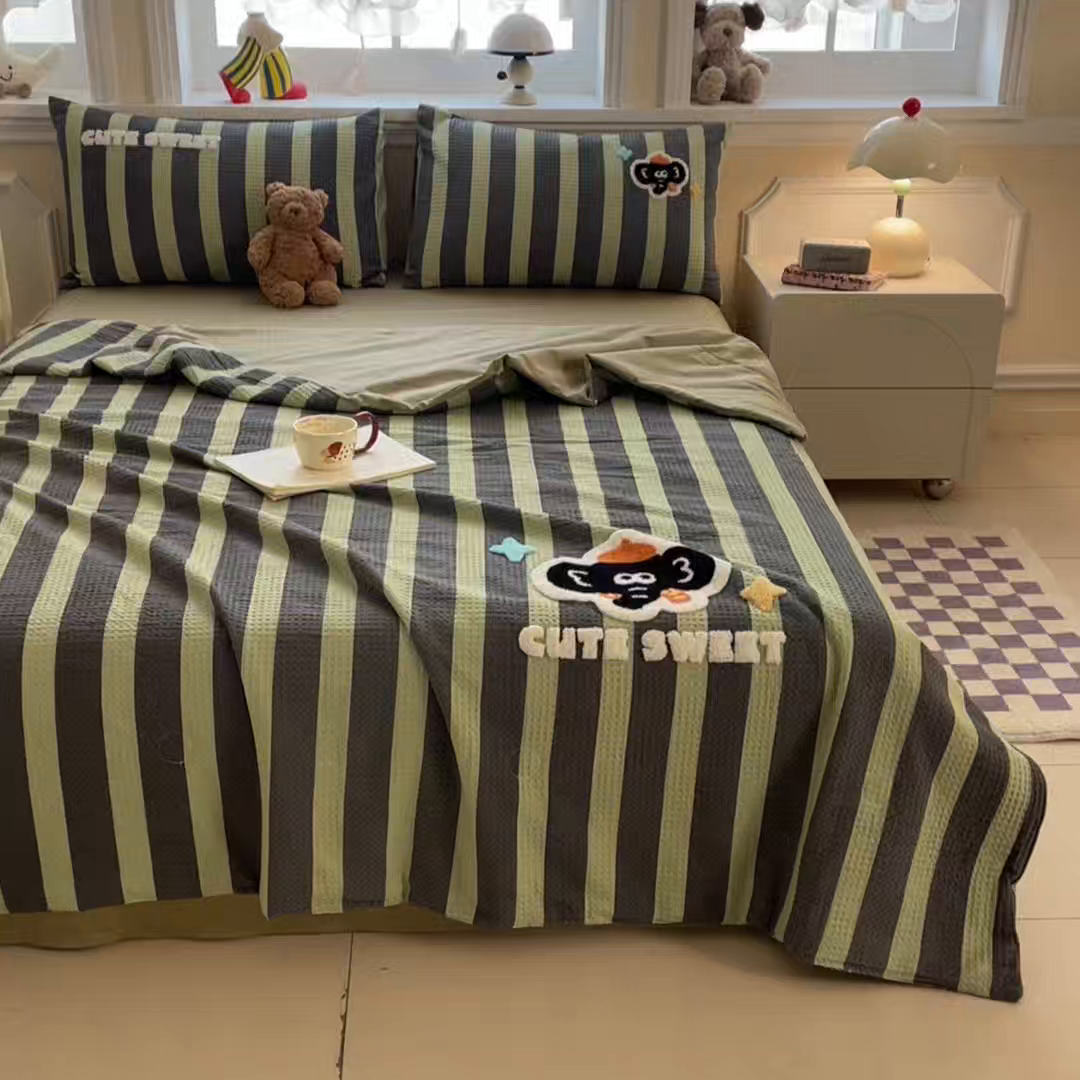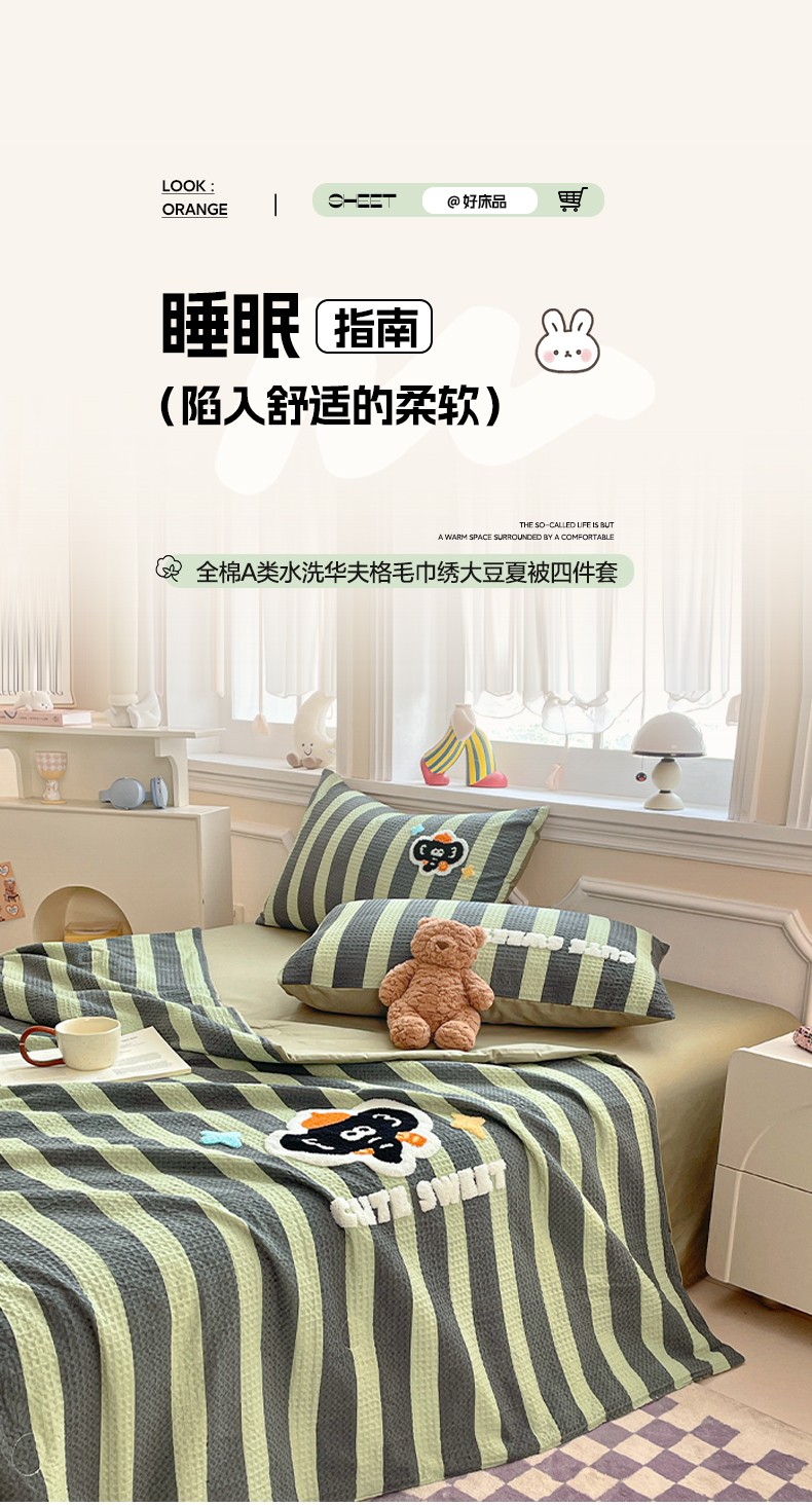 2026春夏新款全棉A类水洗华夫格毛巾绣大豆夏被夏凉被空调被四件套系列