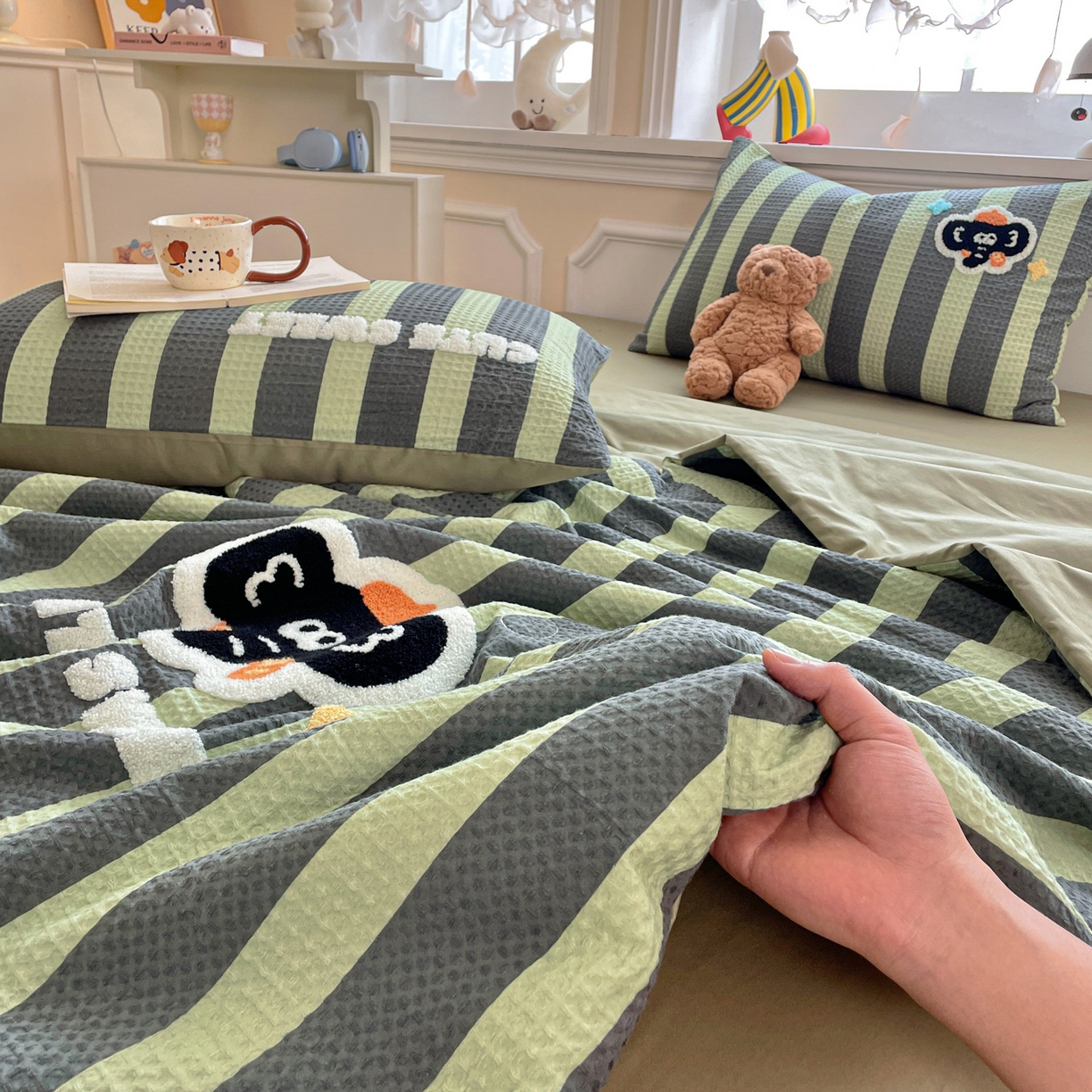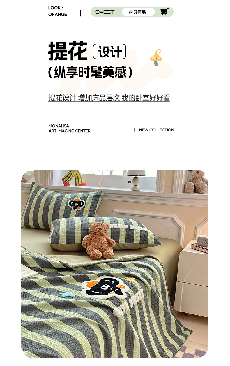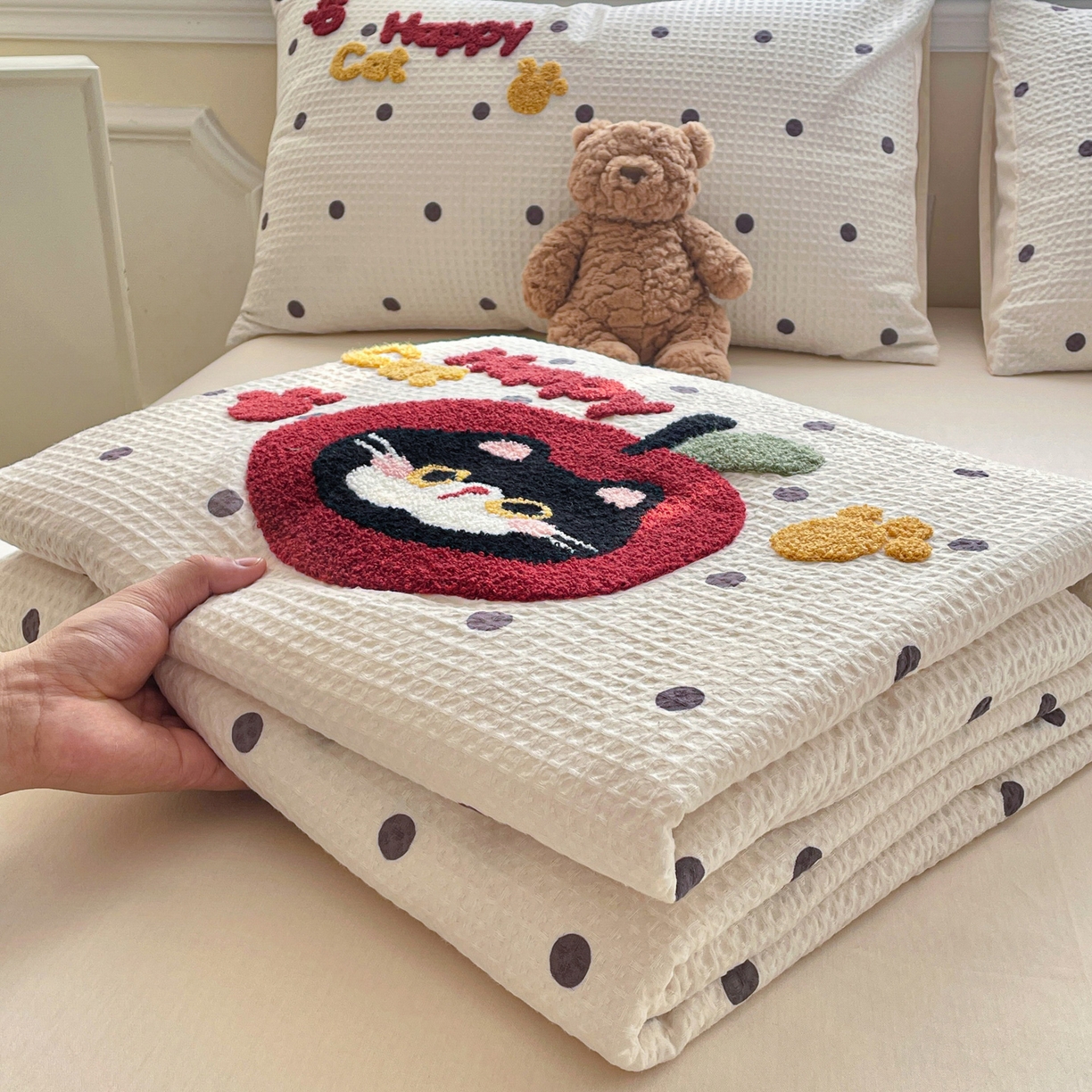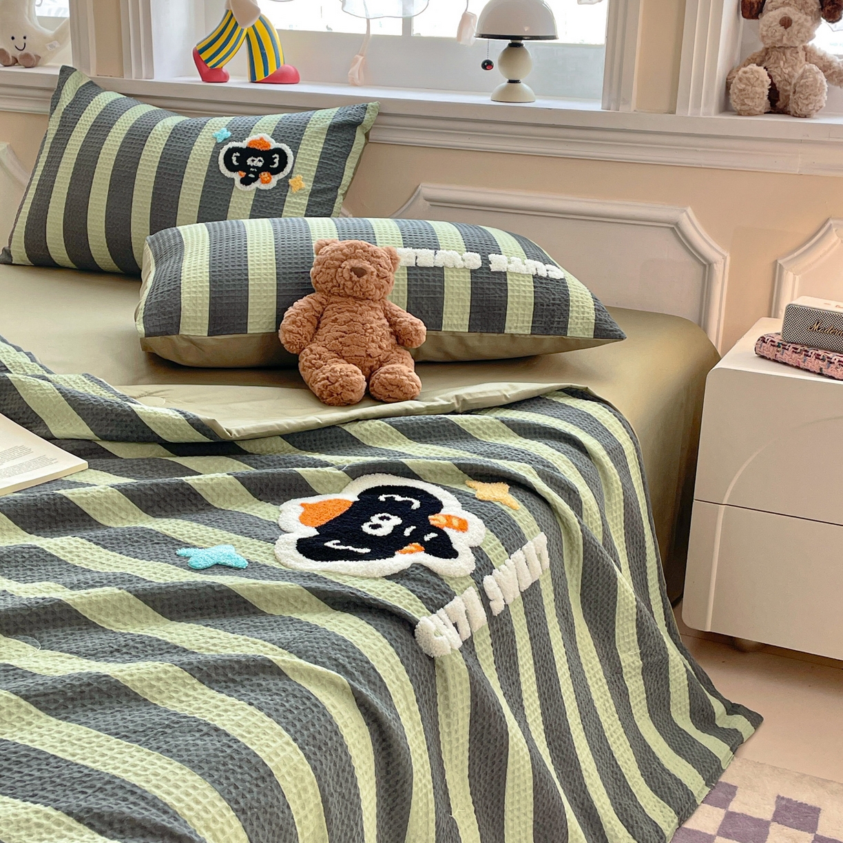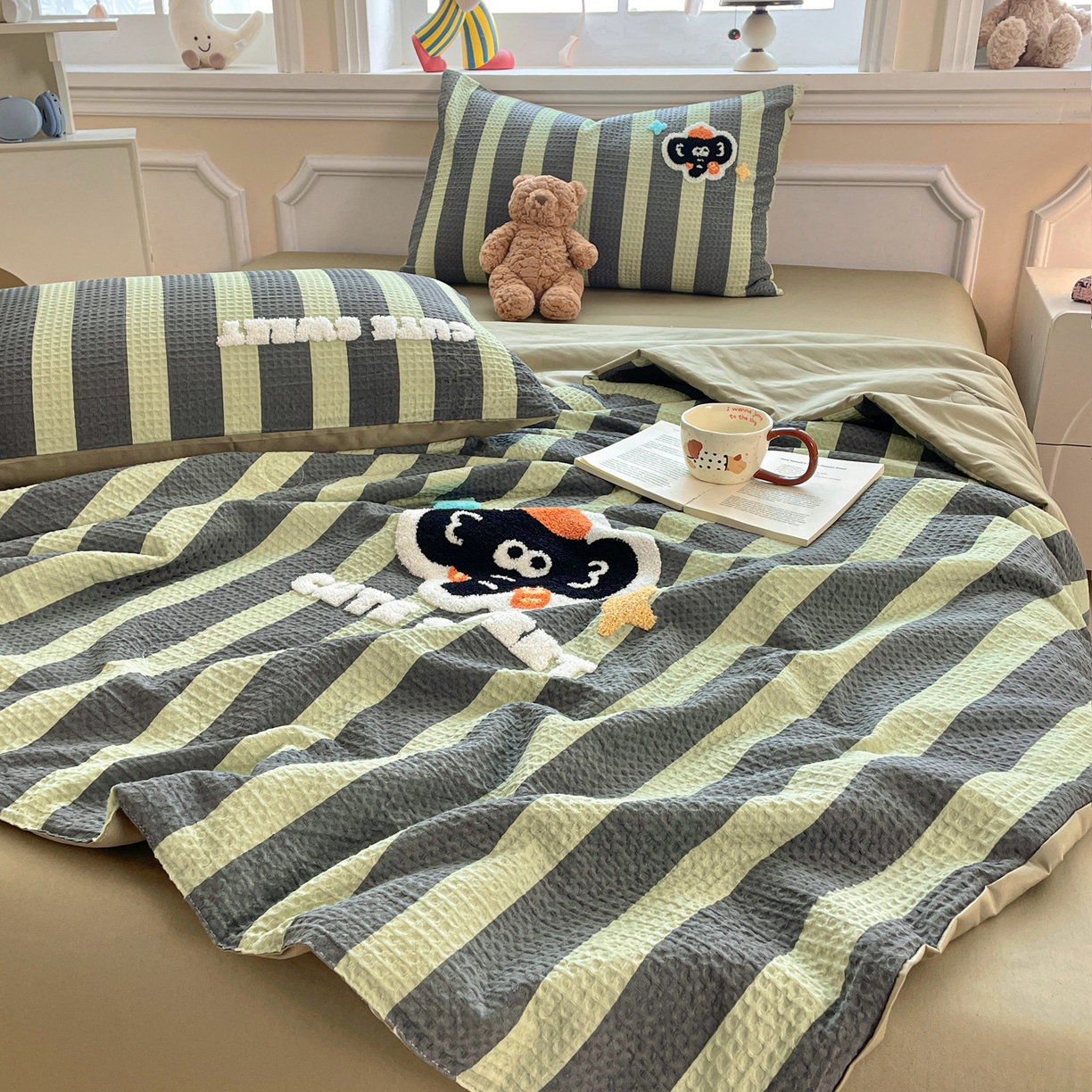 2026春夏新款全棉A类水洗华夫格毛巾绣大豆夏被夏凉被空调被四件套系列