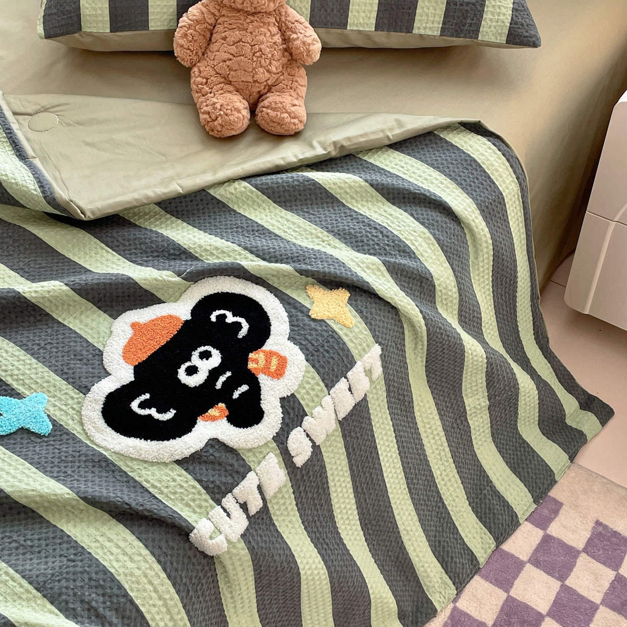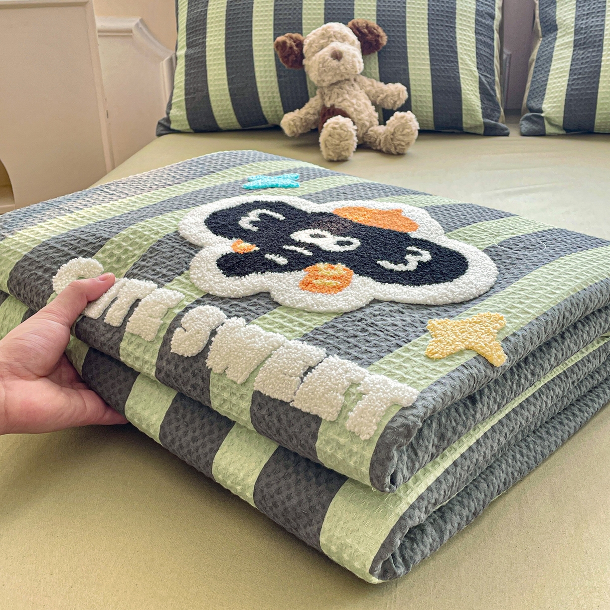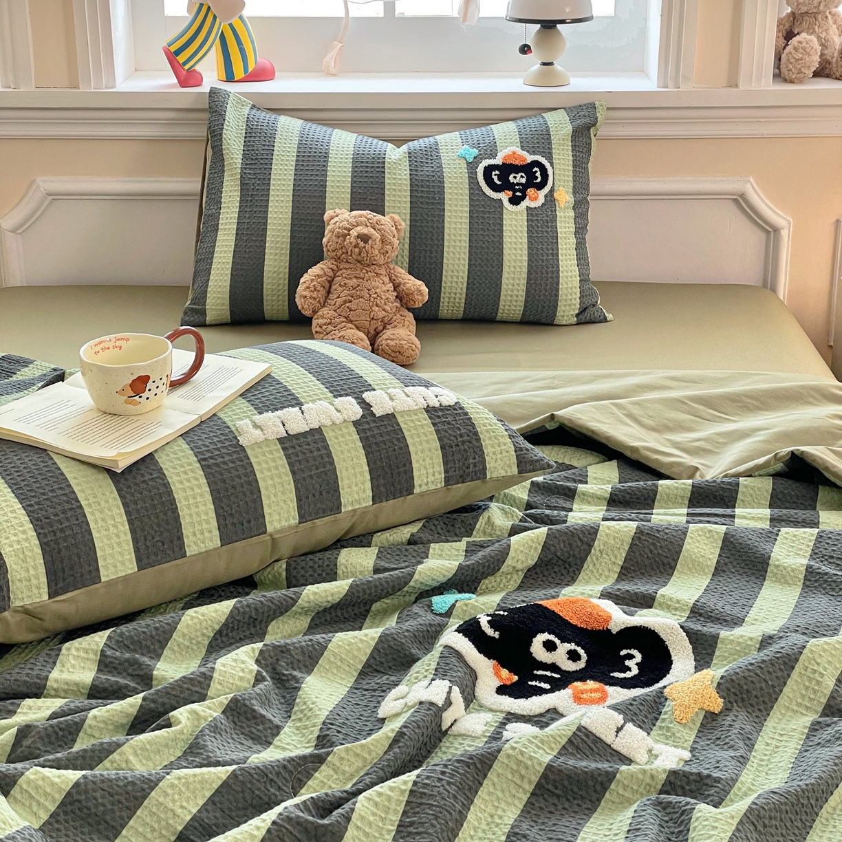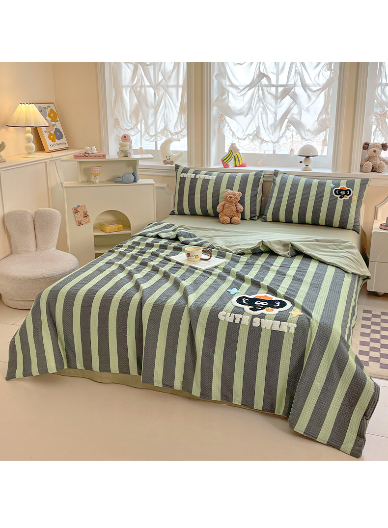 2026春夏新款全棉A类水洗华夫格毛巾绣大豆夏被夏凉被空调被四件套系列