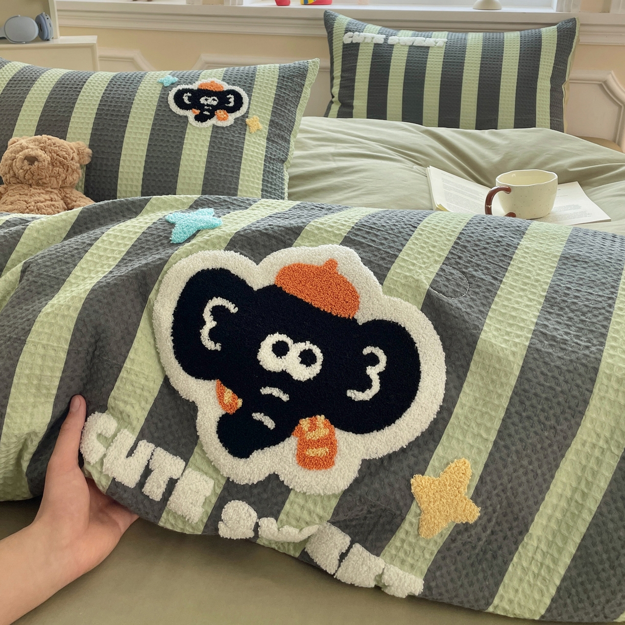 2025新款A类100%全棉磨毛条格卡通系列四件套