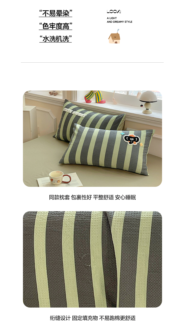 全棉A类色织水洗棉贝壳绣学生宿舍床系列