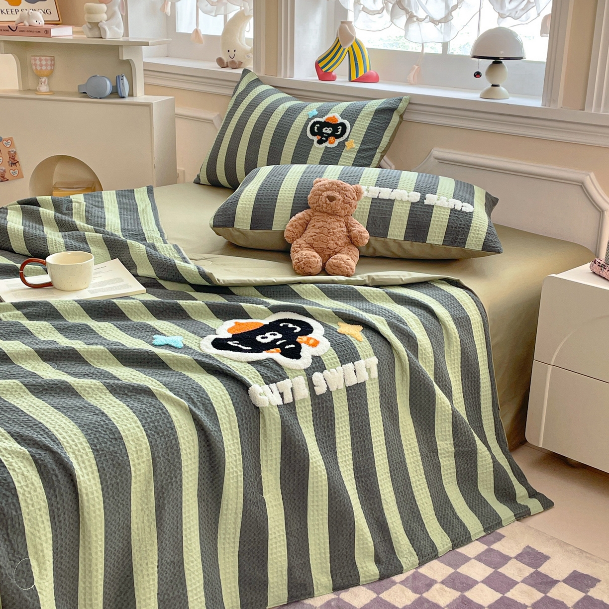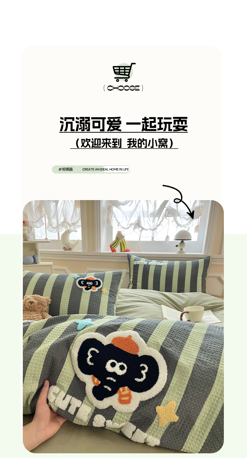 2025新款A类100%全棉磨毛条格卡通系列四件套