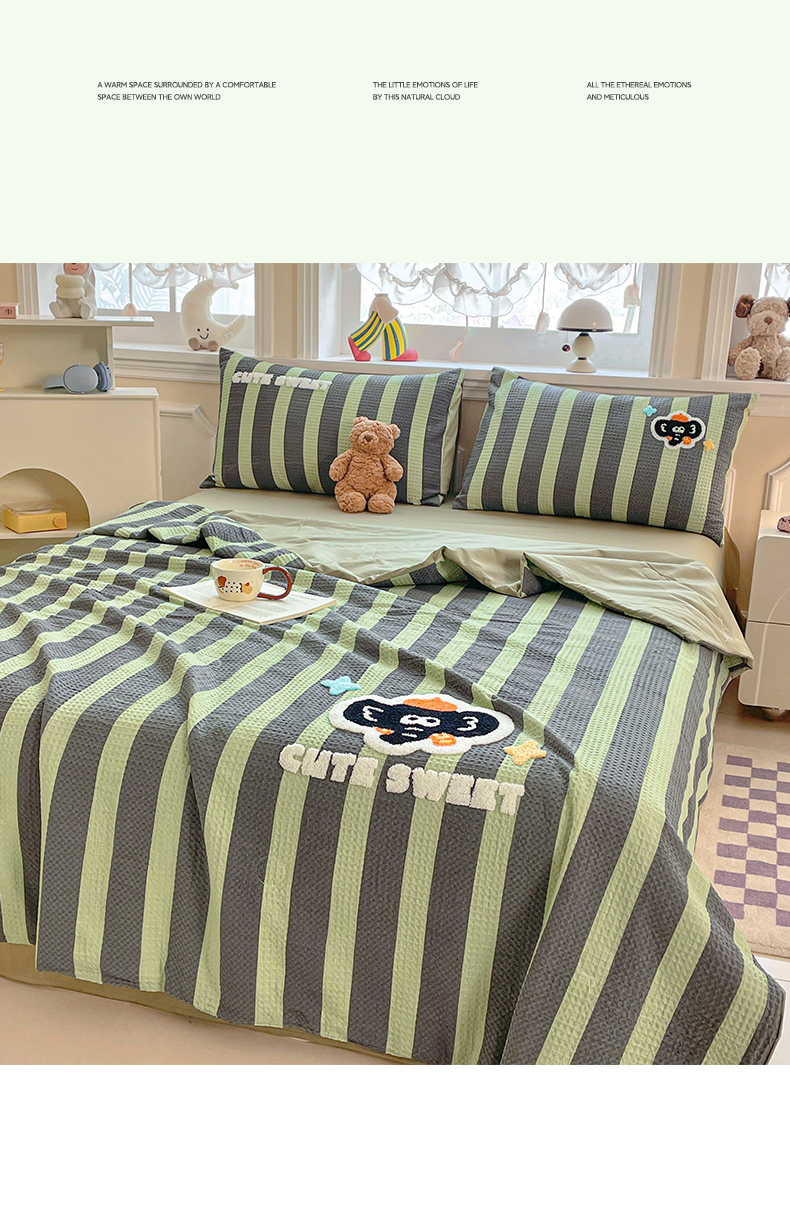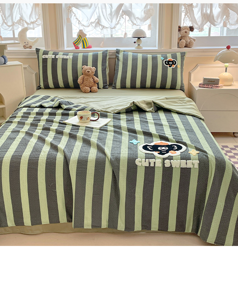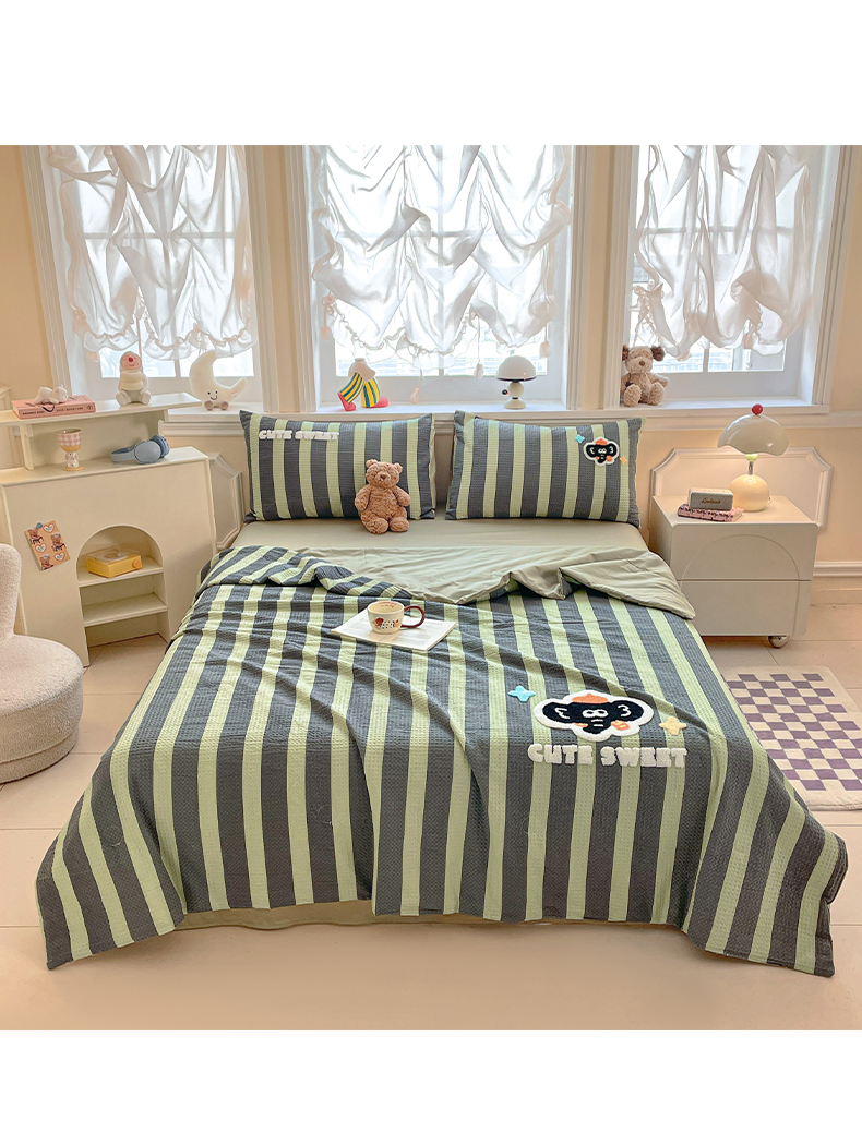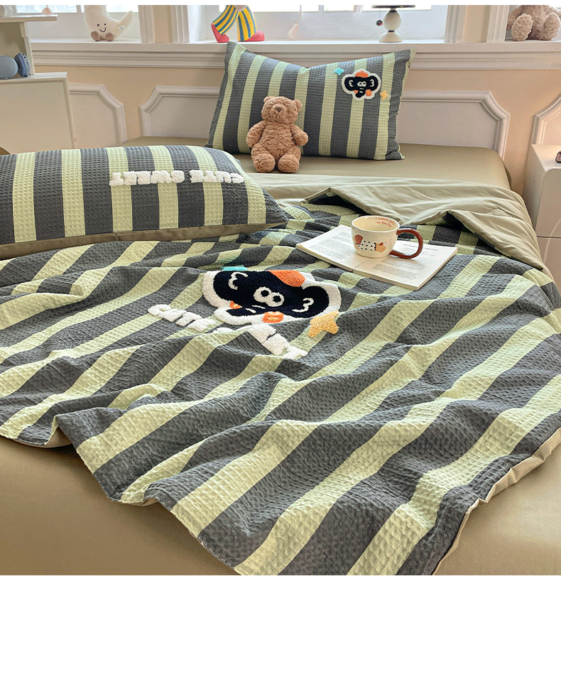 2026春夏新款全棉A类水洗华夫格毛巾绣大豆夏被夏凉被空调被四件套系列