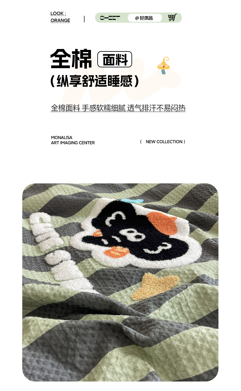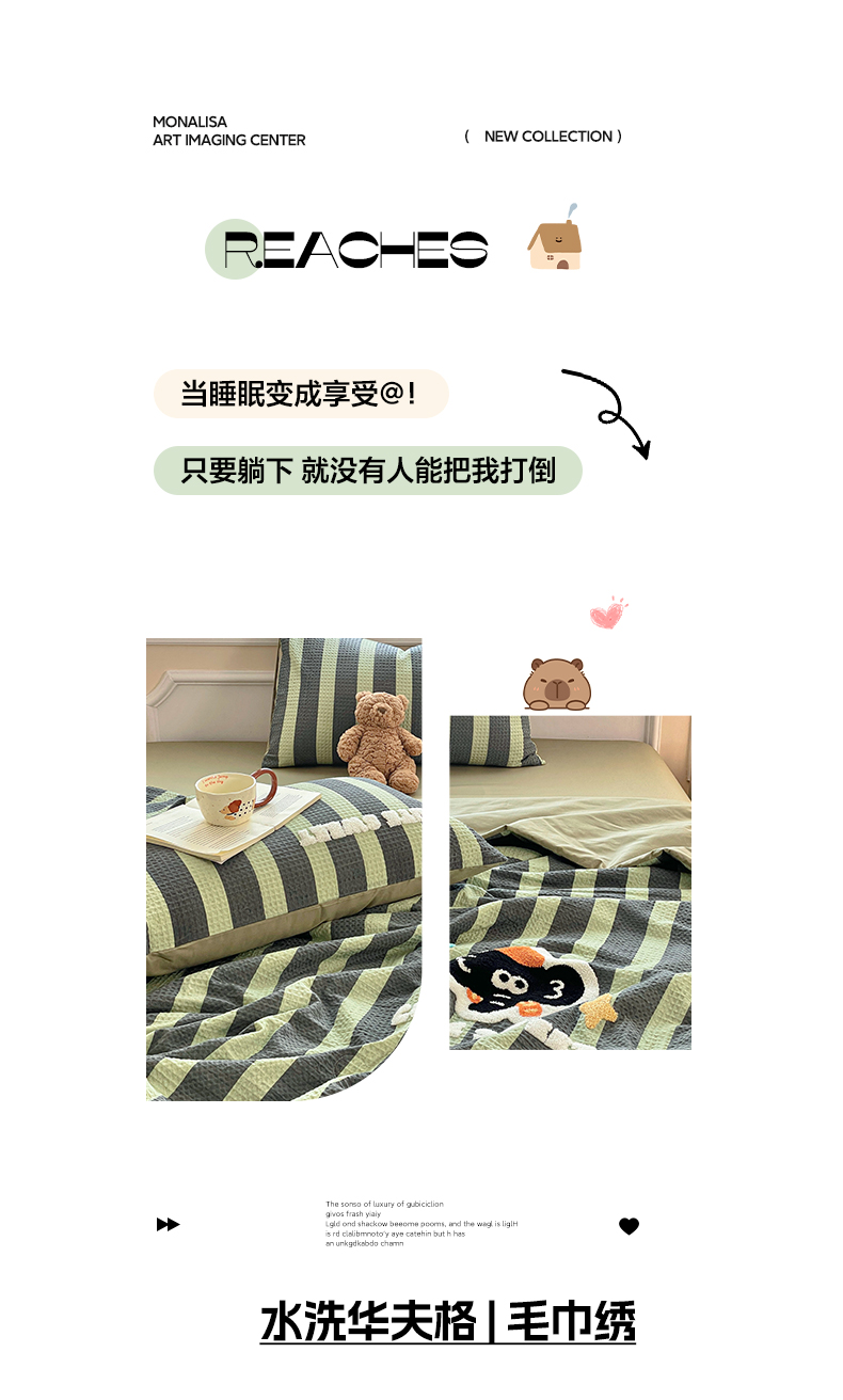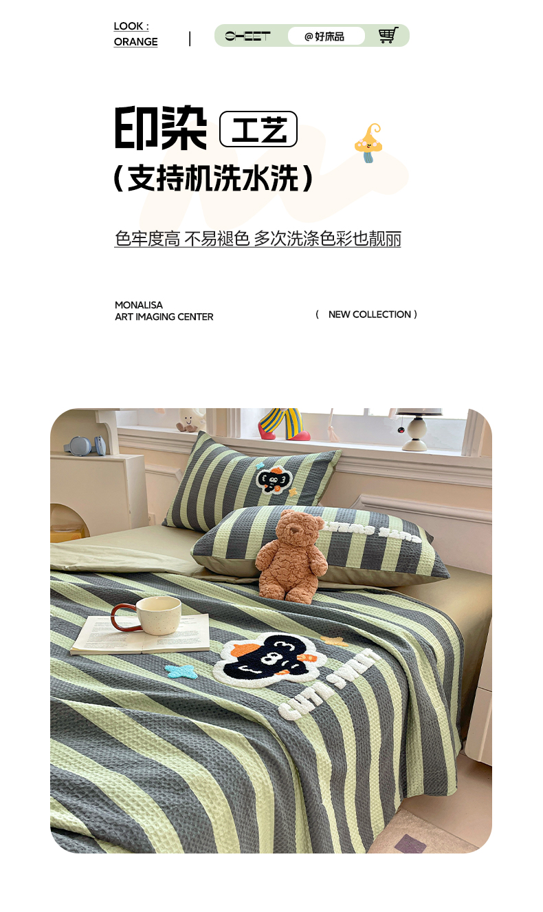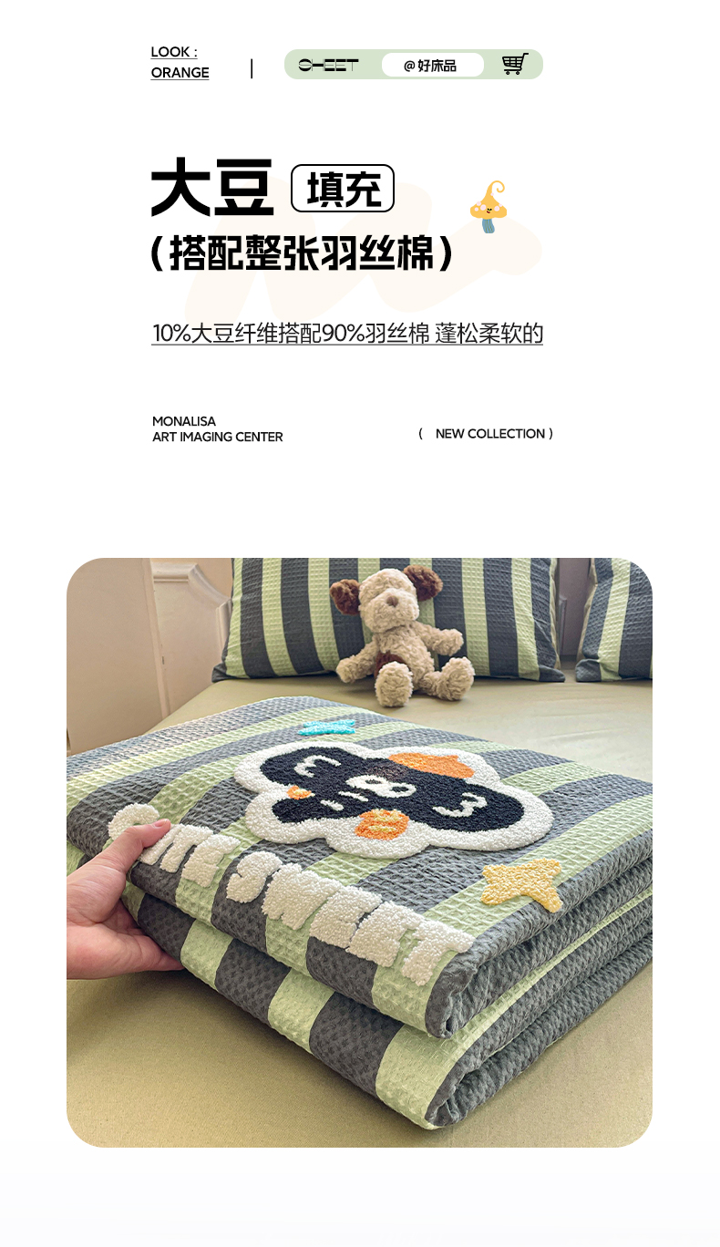 2026春夏新款全棉A类水洗华夫格毛巾绣大豆夏被夏凉被空调被四件套系列