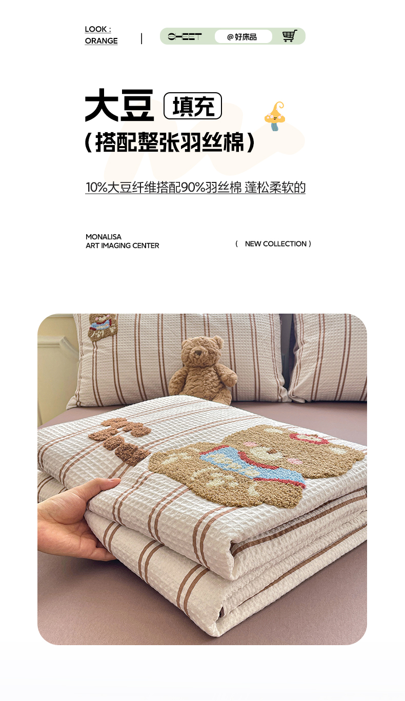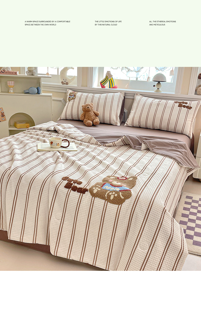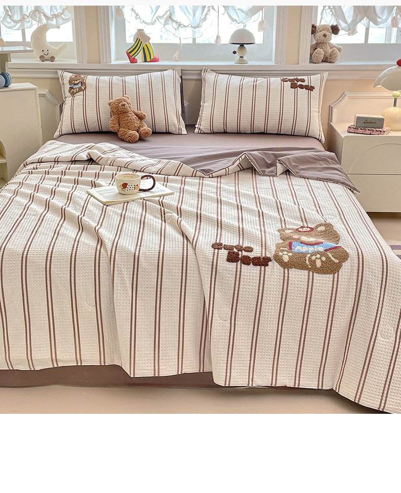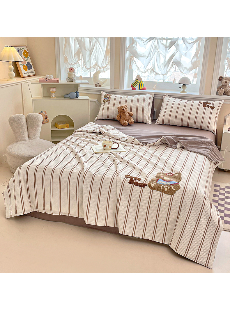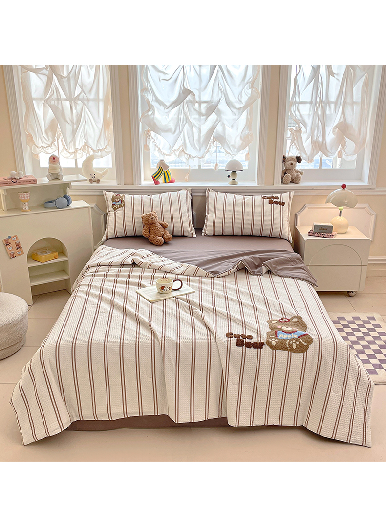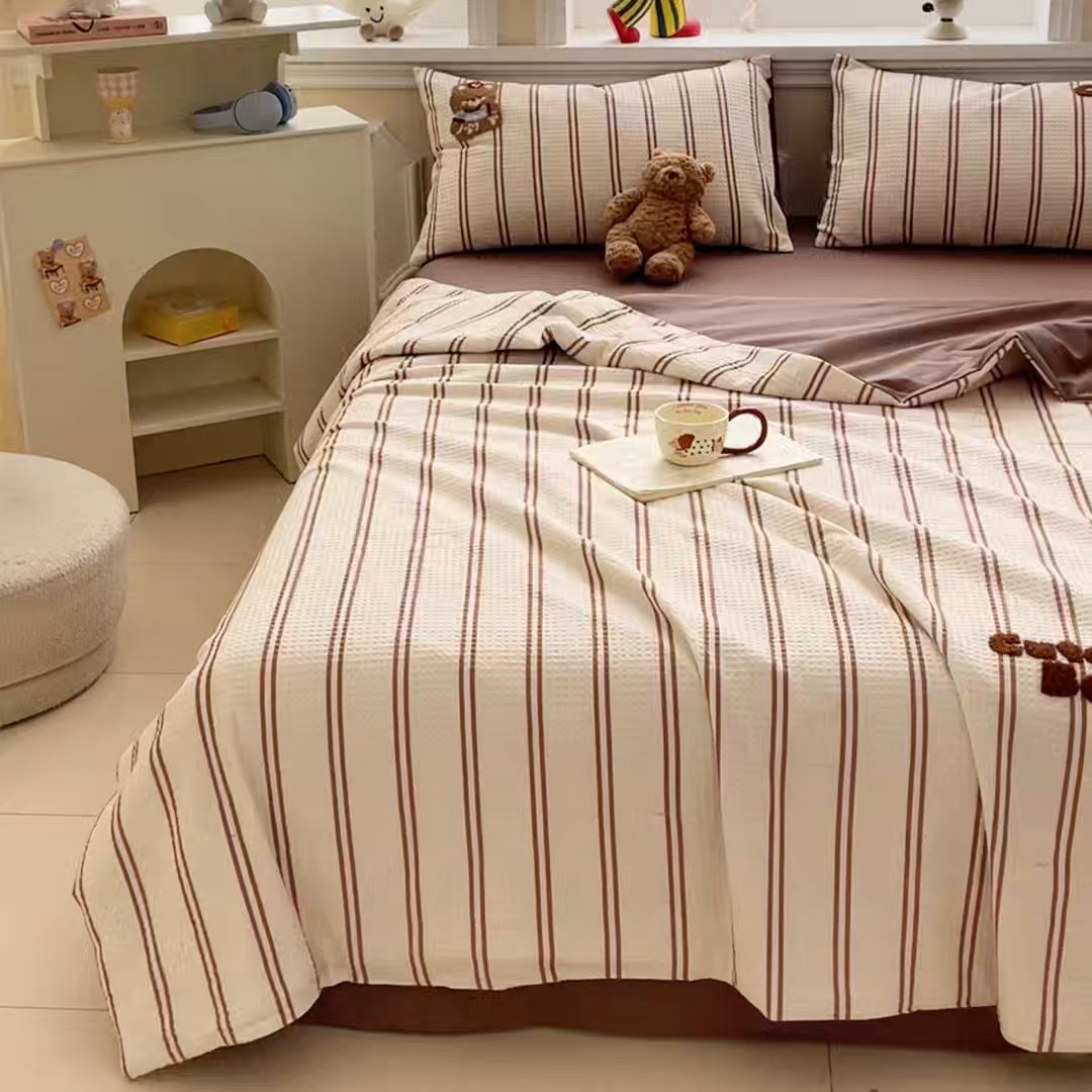 2026春夏新款全棉A类水洗华夫格毛巾绣大豆夏被夏凉被空调被四件套系列