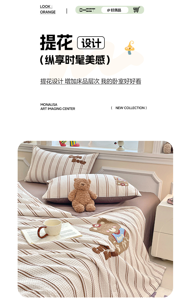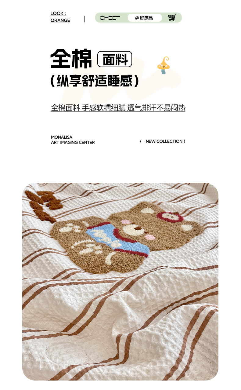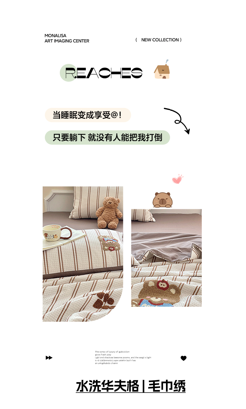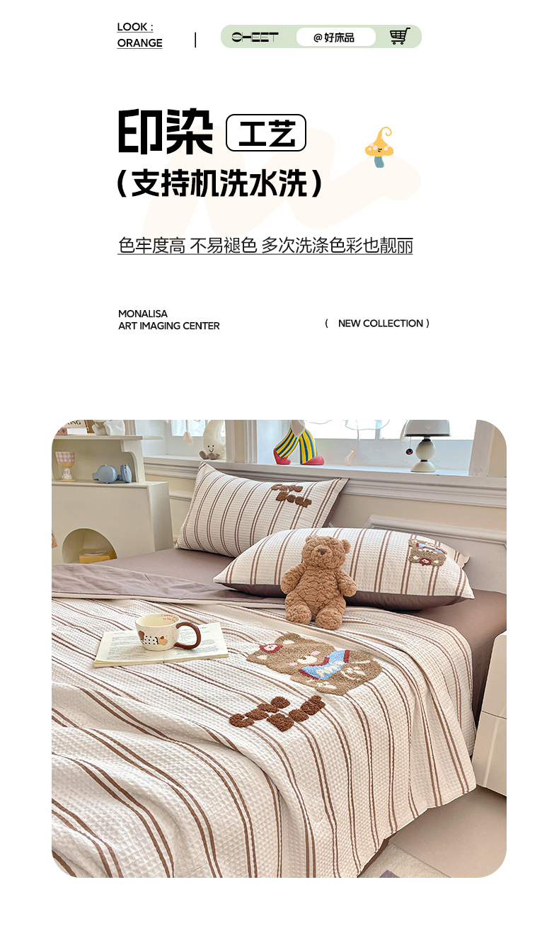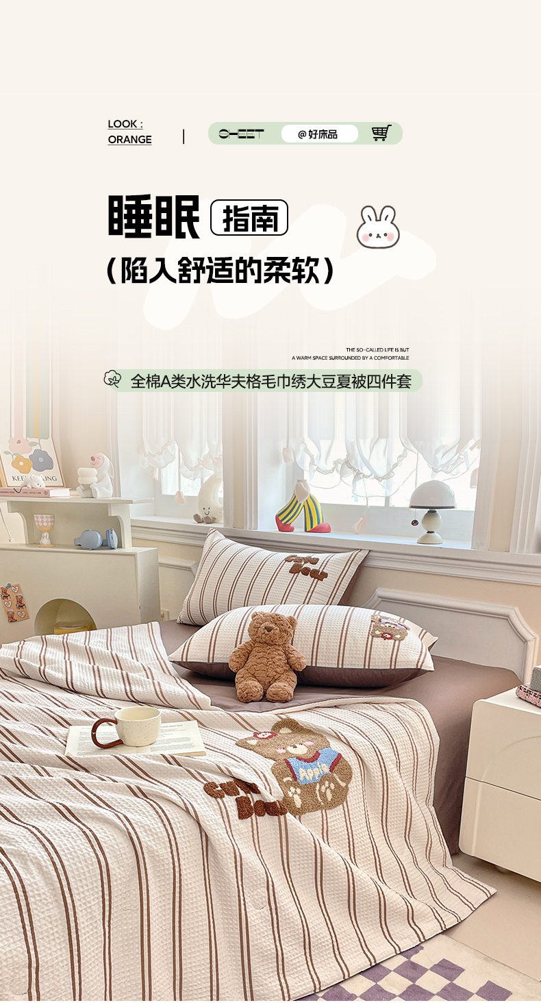 2026春夏新款全棉A类水洗华夫格毛巾绣大豆夏被夏凉被空调被四件套系列